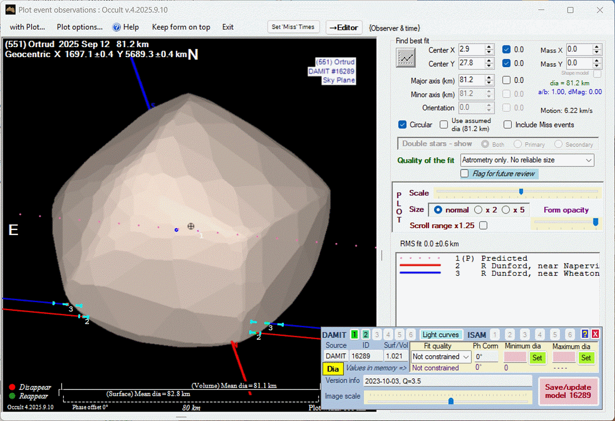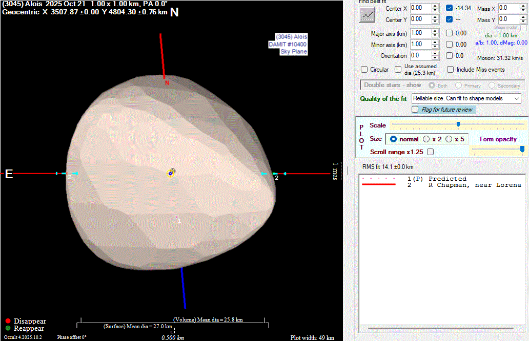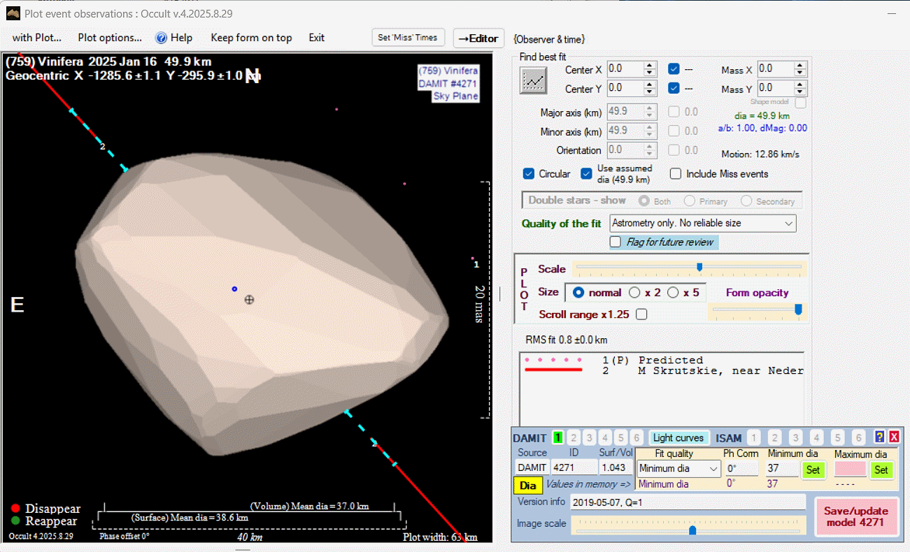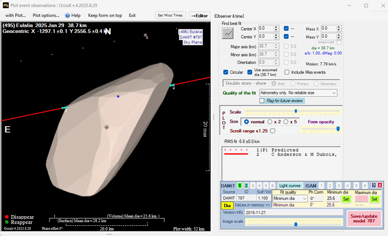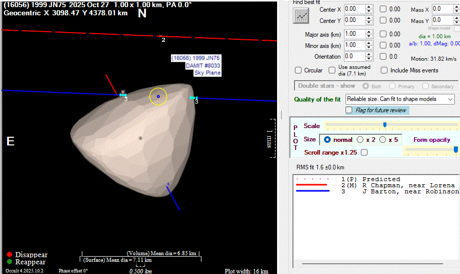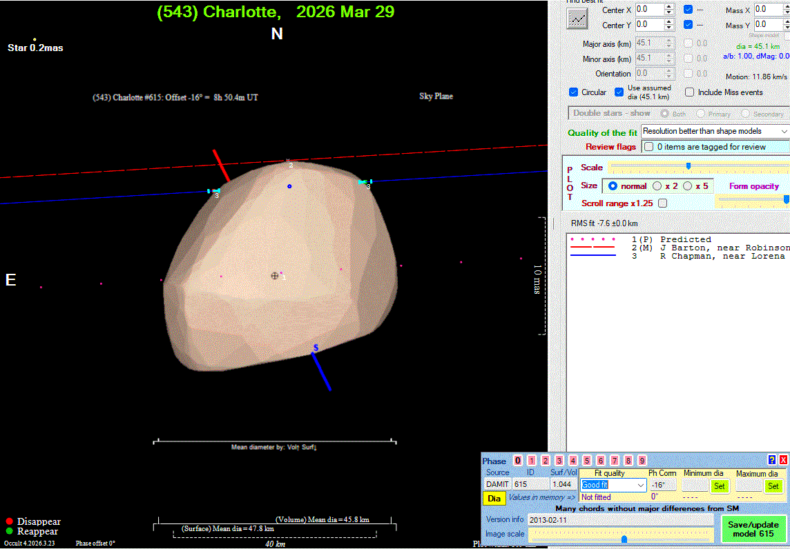 Asteroid profiles only show the line of sight view at the time of the occultation.