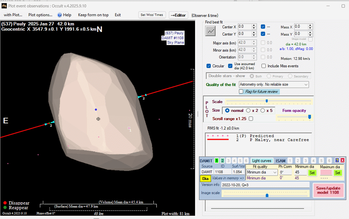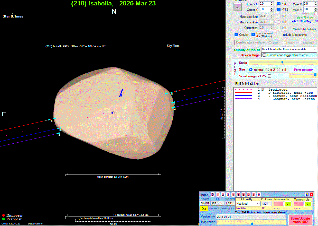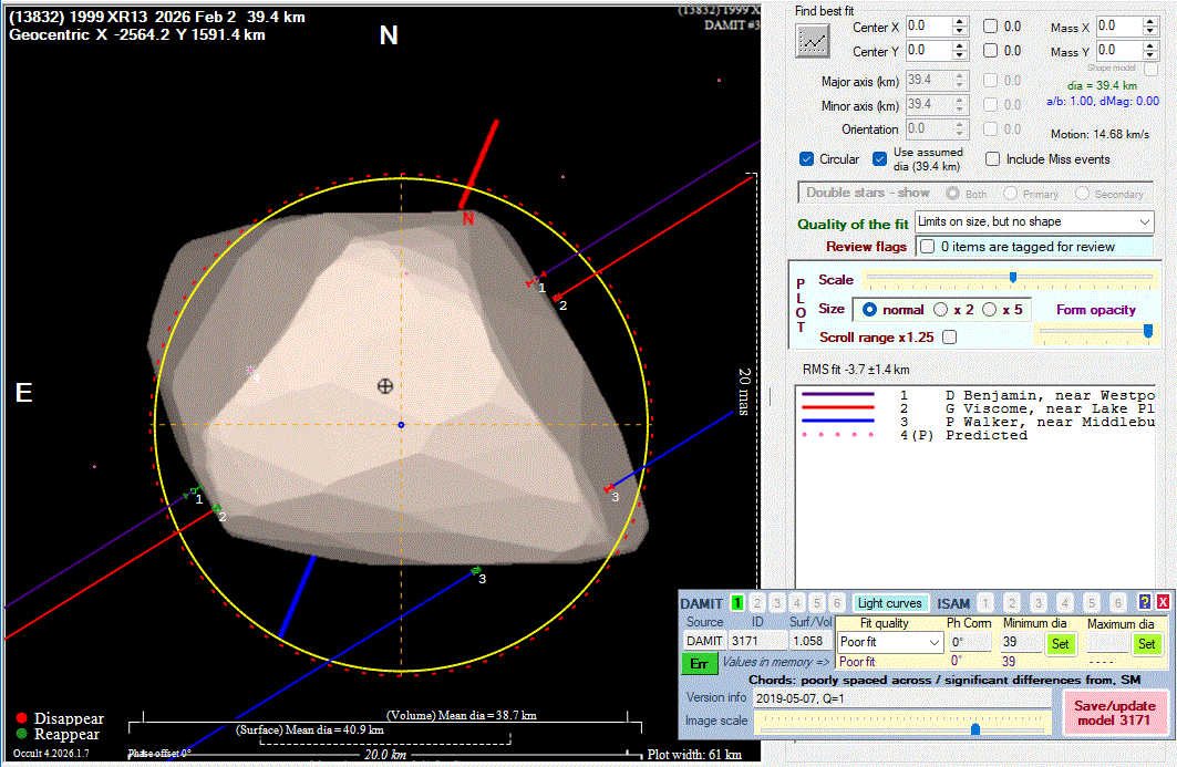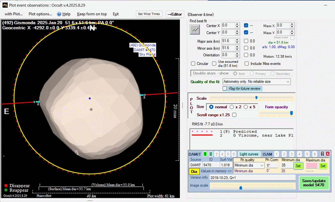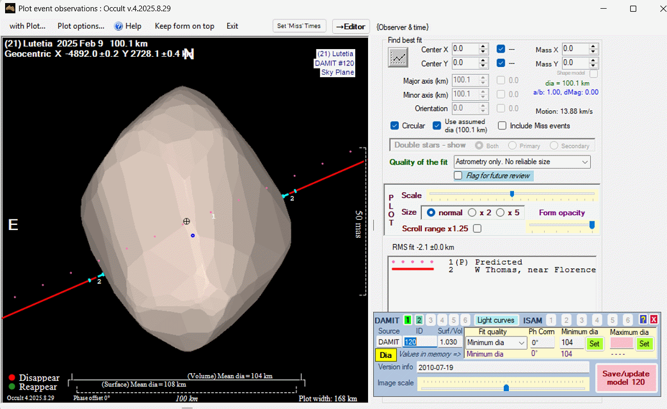 Asteroid profiles only show the line of sight view at the time of the occultation.