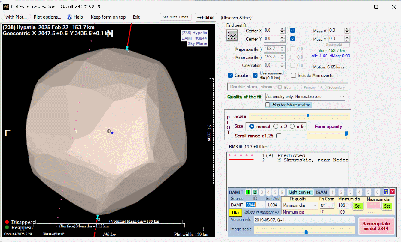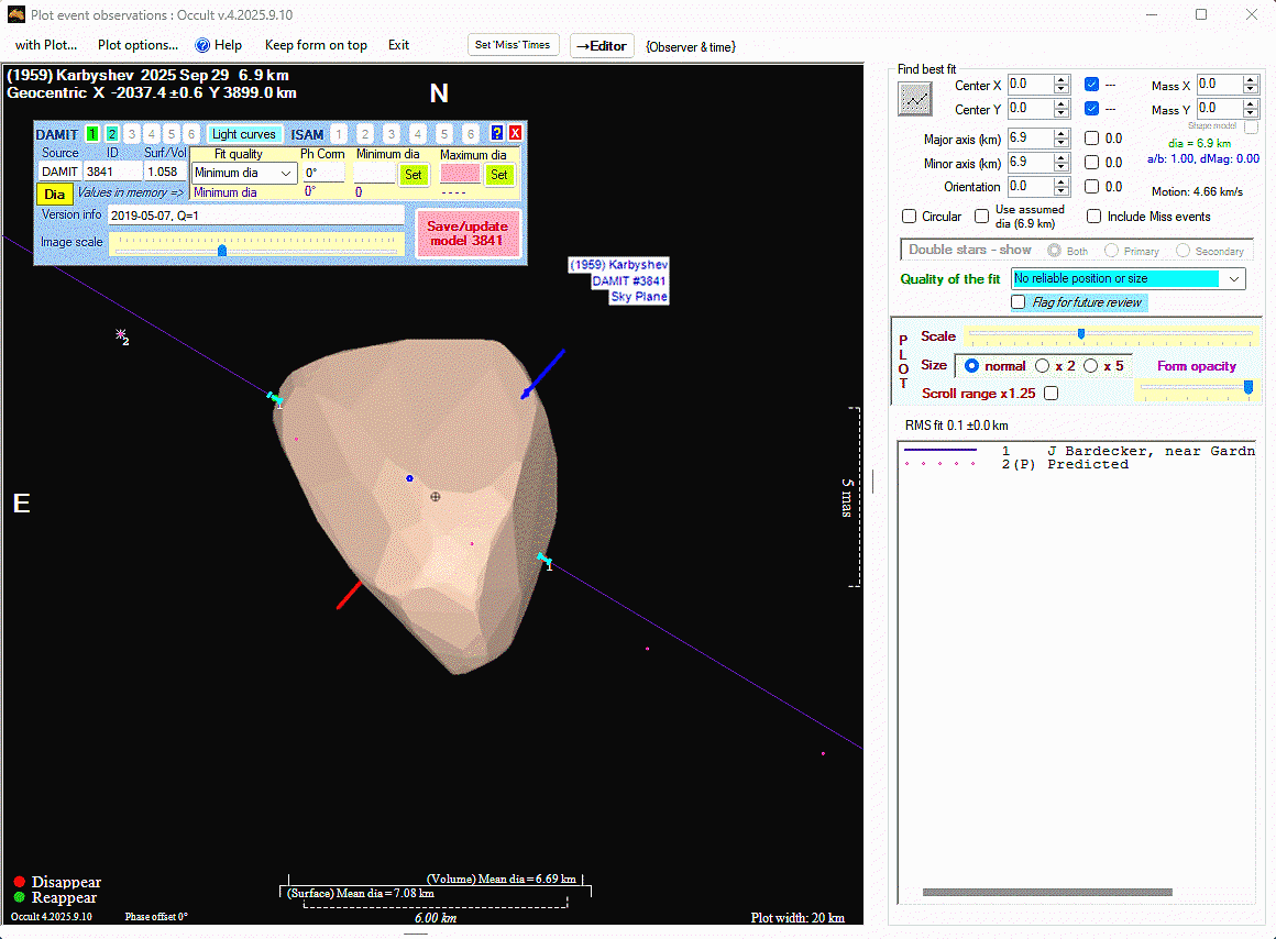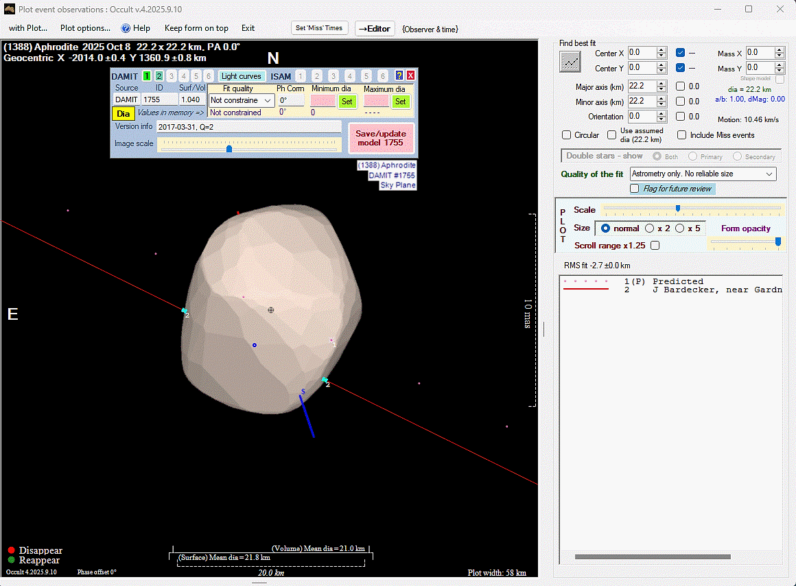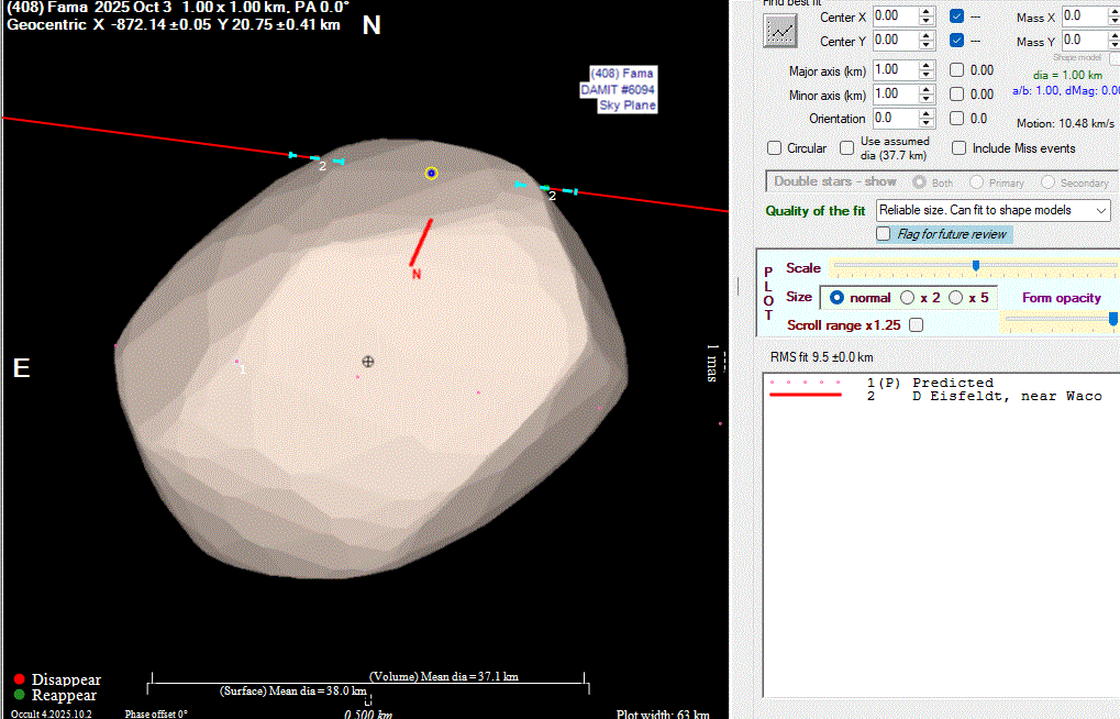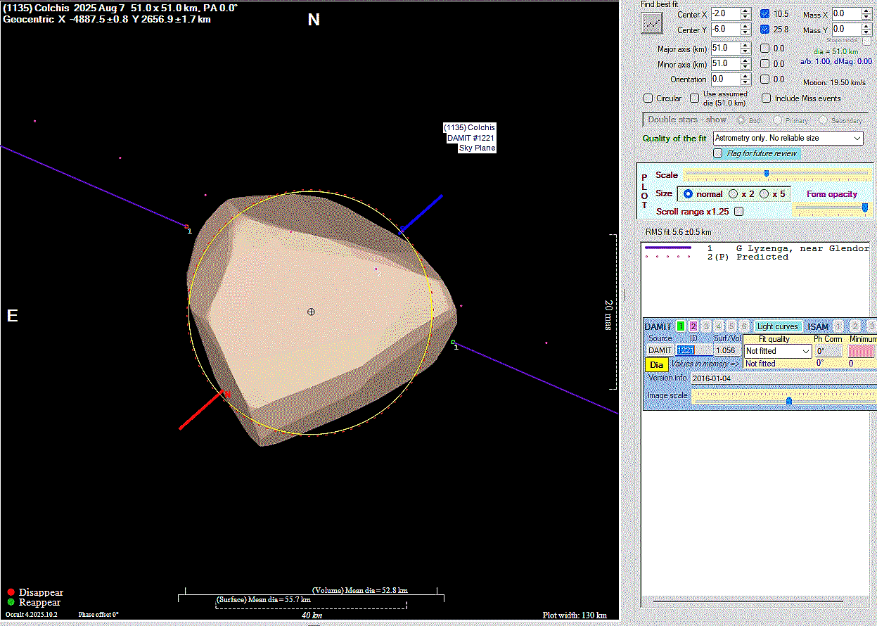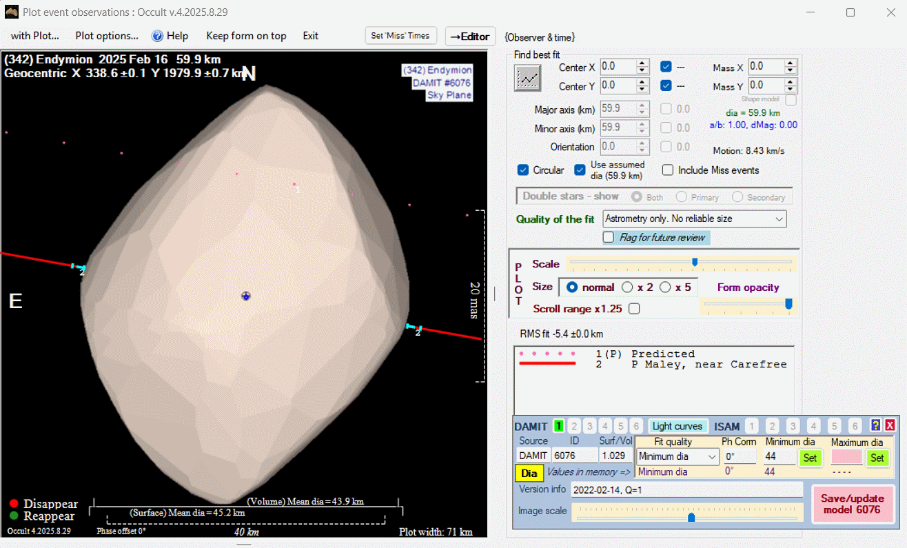 Asteroid profiles only show the line of sight view at the time of the occultation.