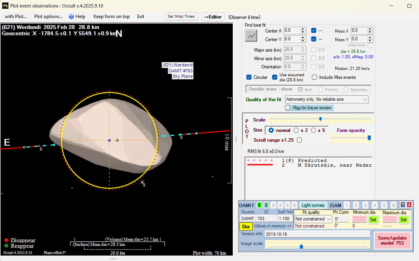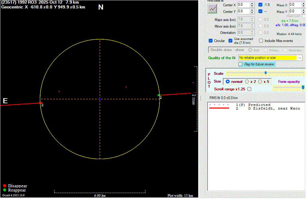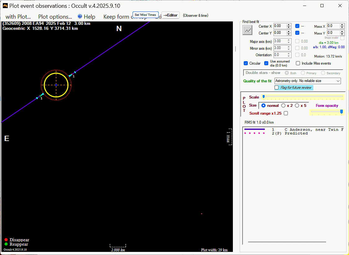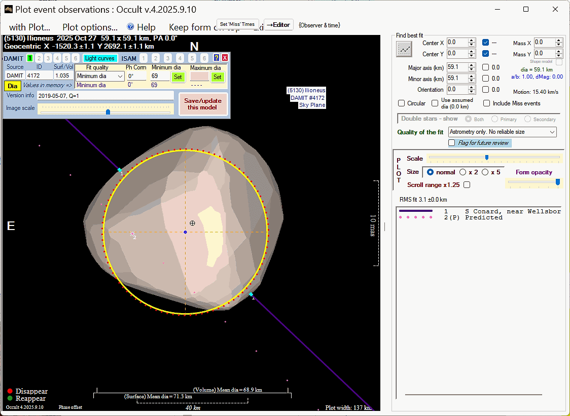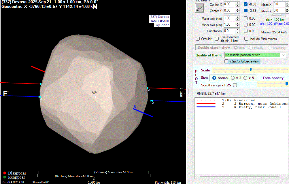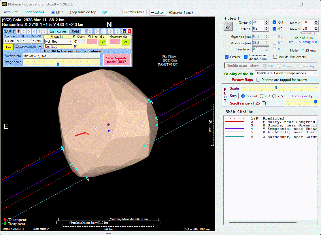 Asteroid profiles only show the line of sight view at the time of the occultation.