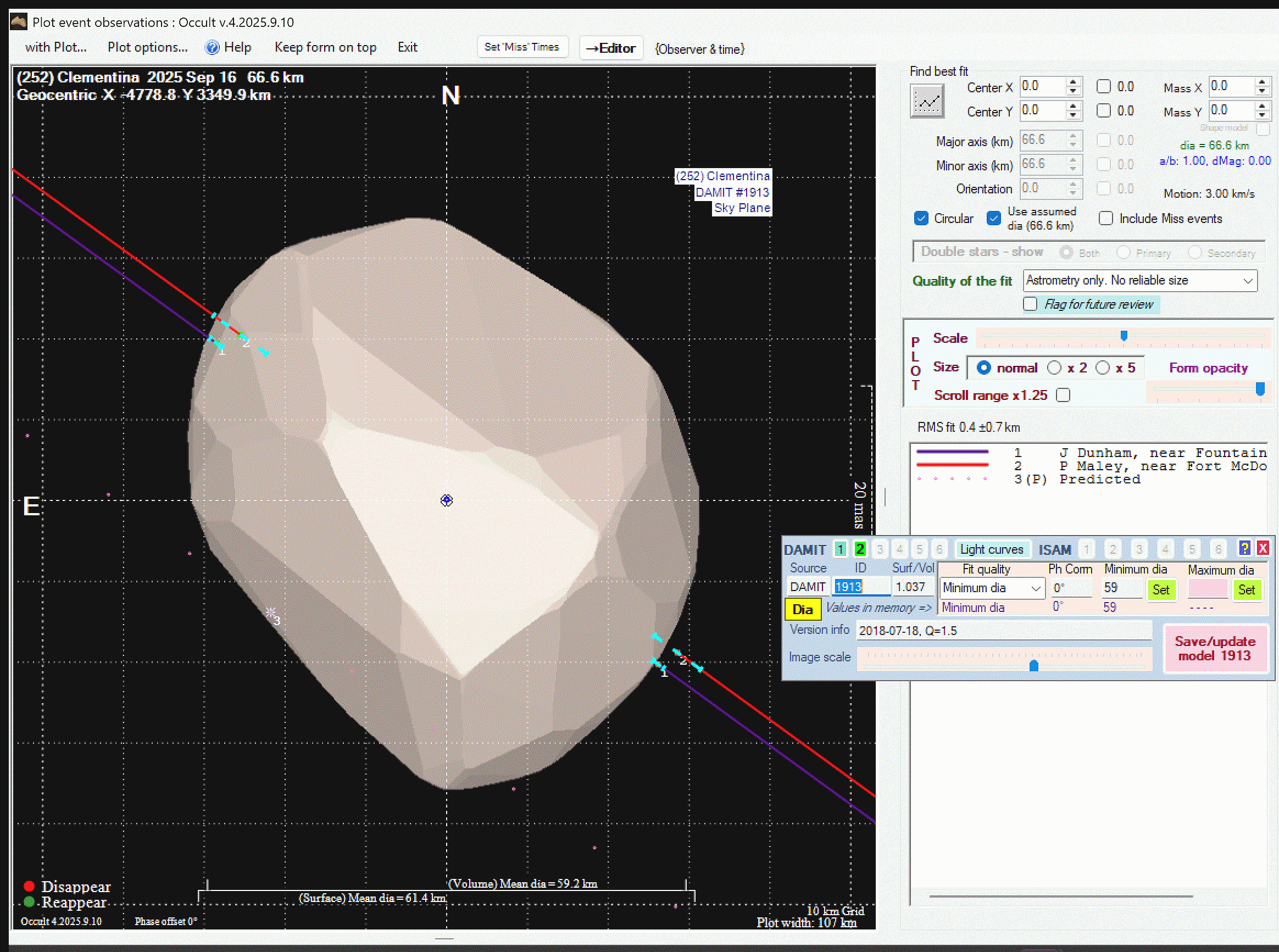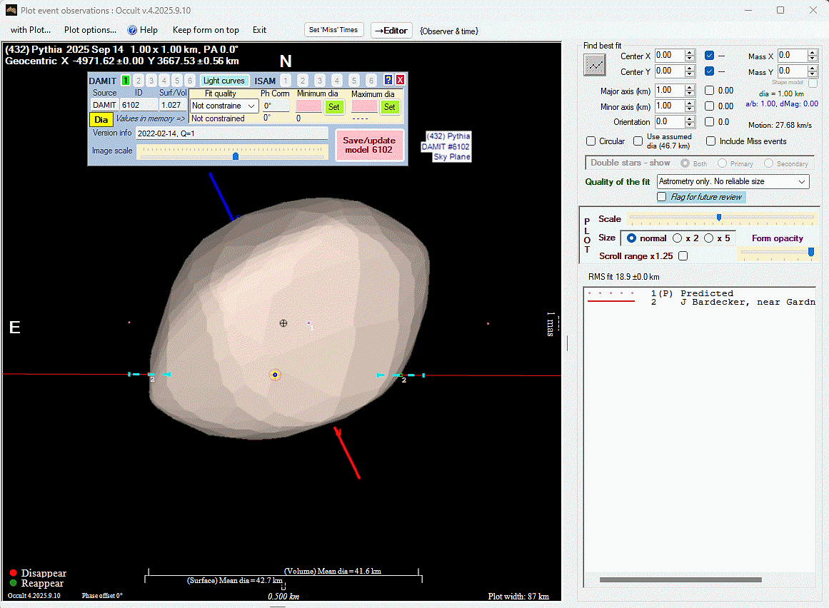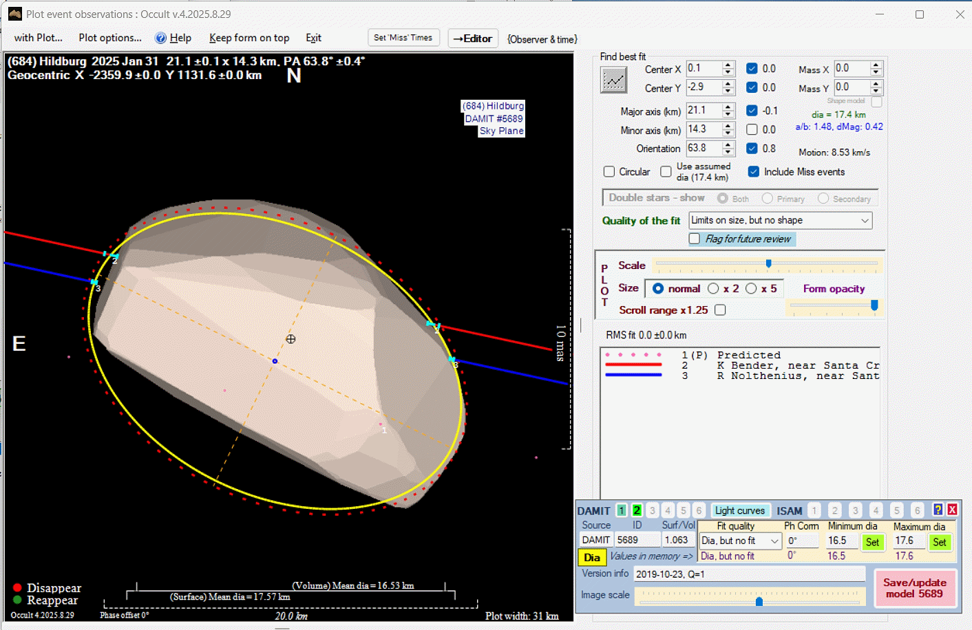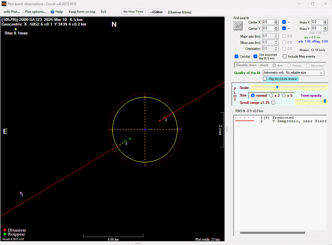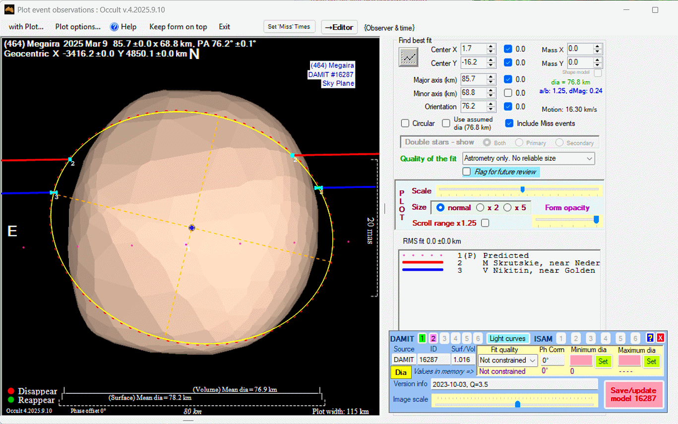 Asteroid profiles only show the line of sight view at the time of the occultation.