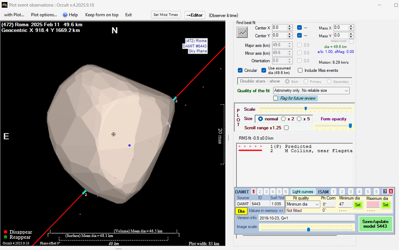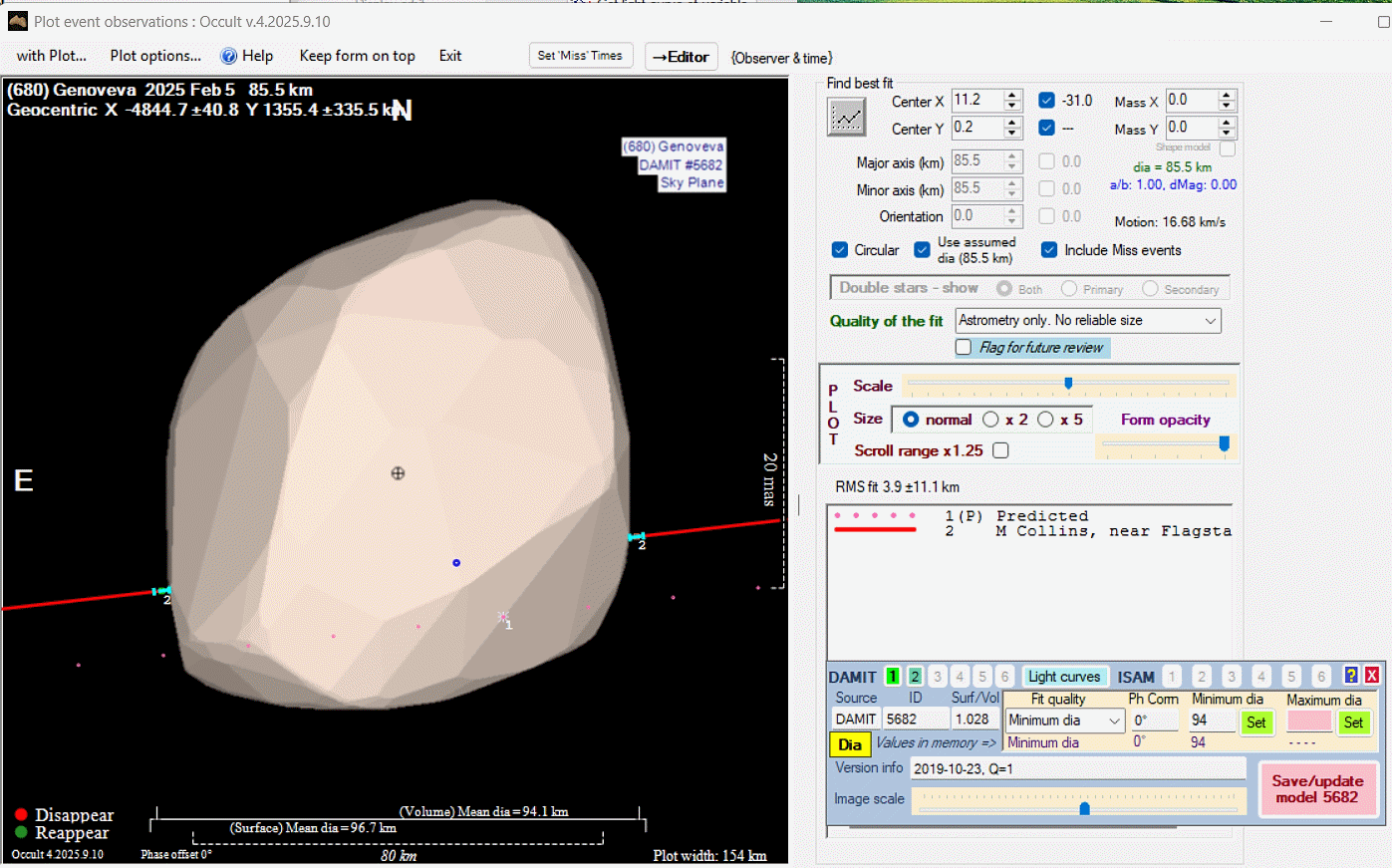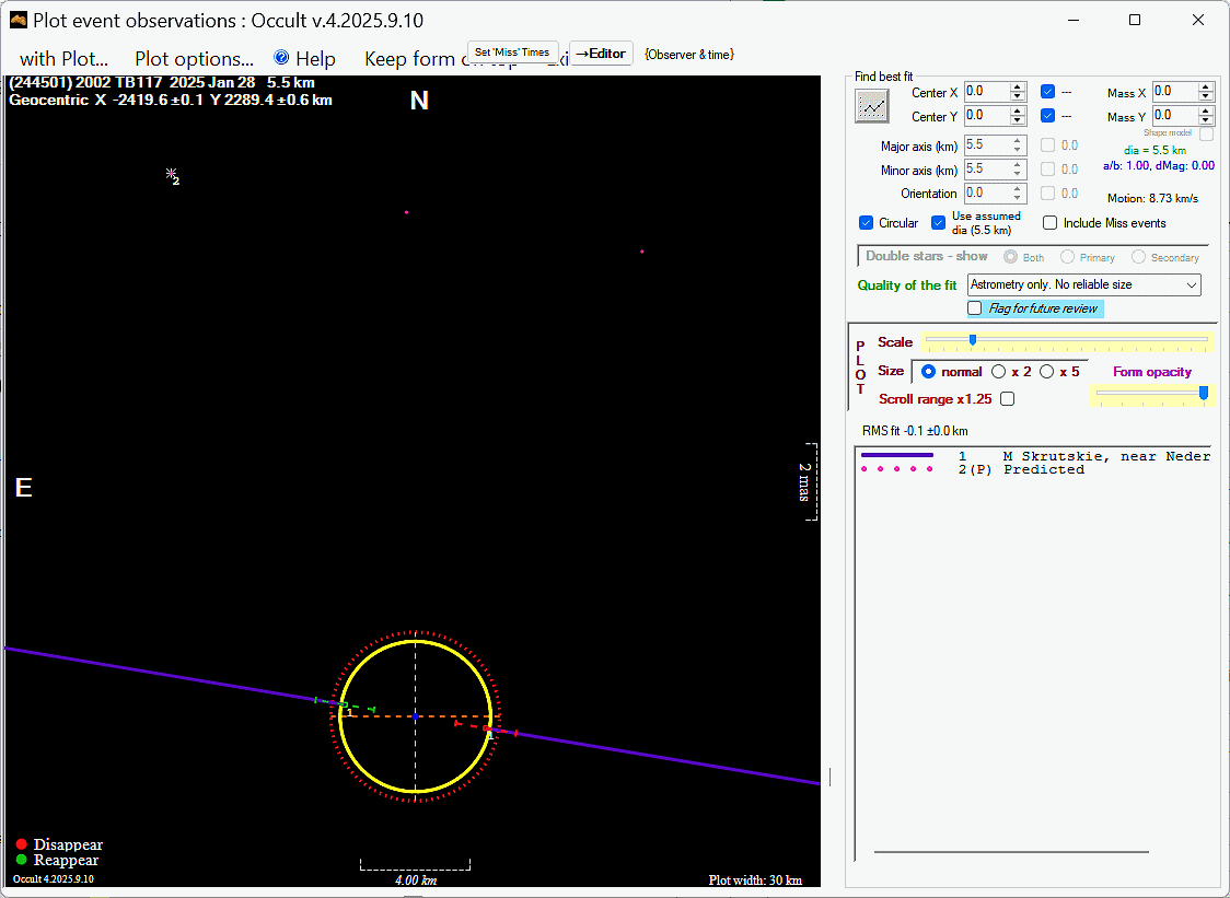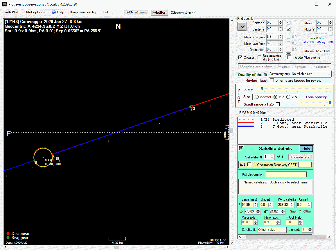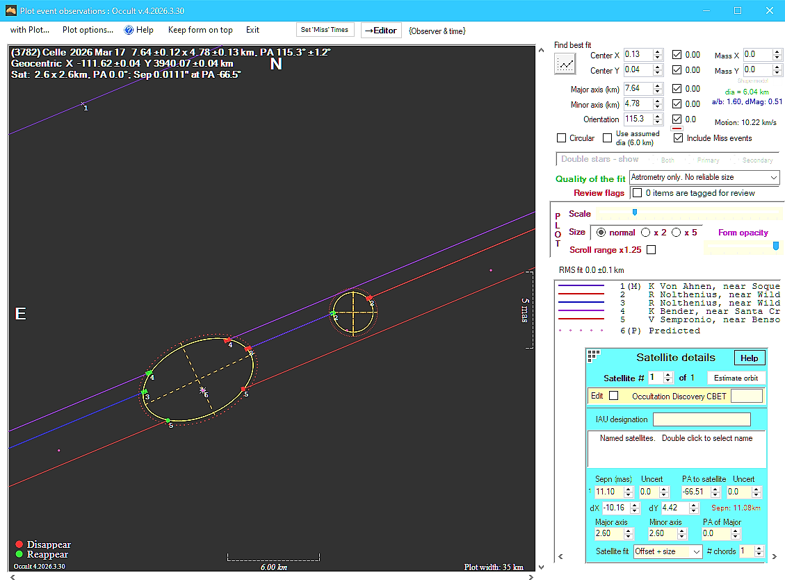 Asteroid profiles only show the line of sight view at the time of the occultation.