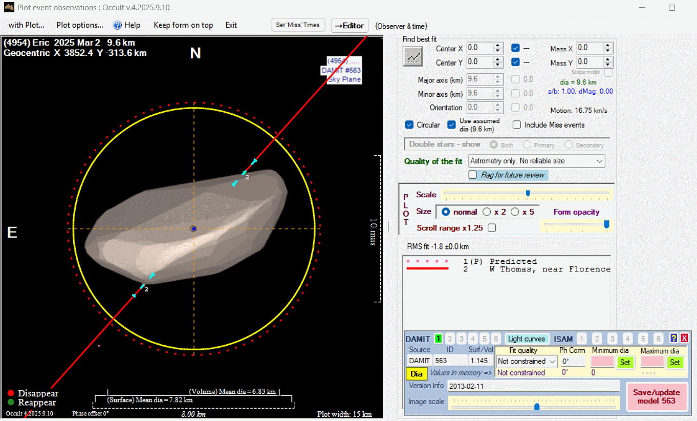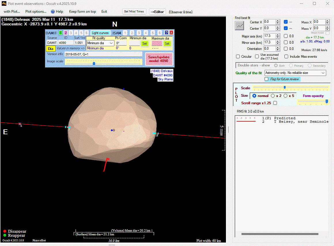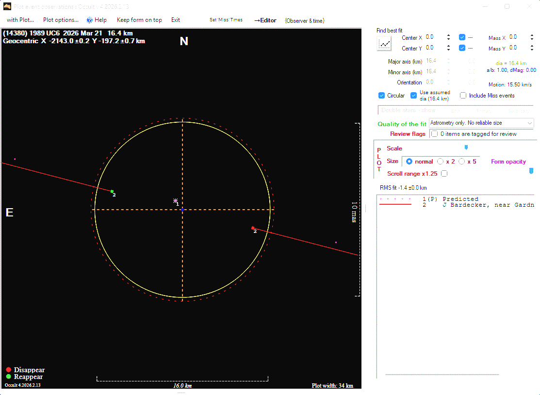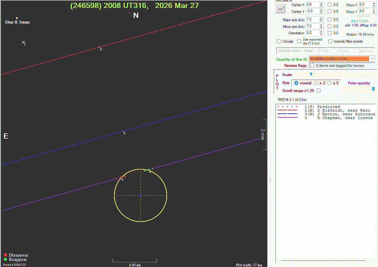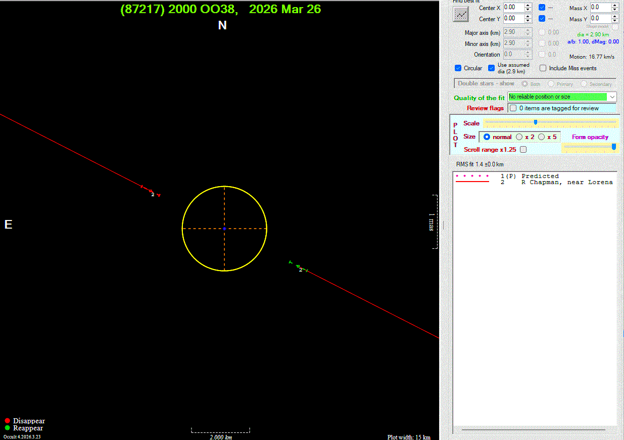 The true size/shape of an asteroid in 3-dimensions cannot be determined from a single occultation.