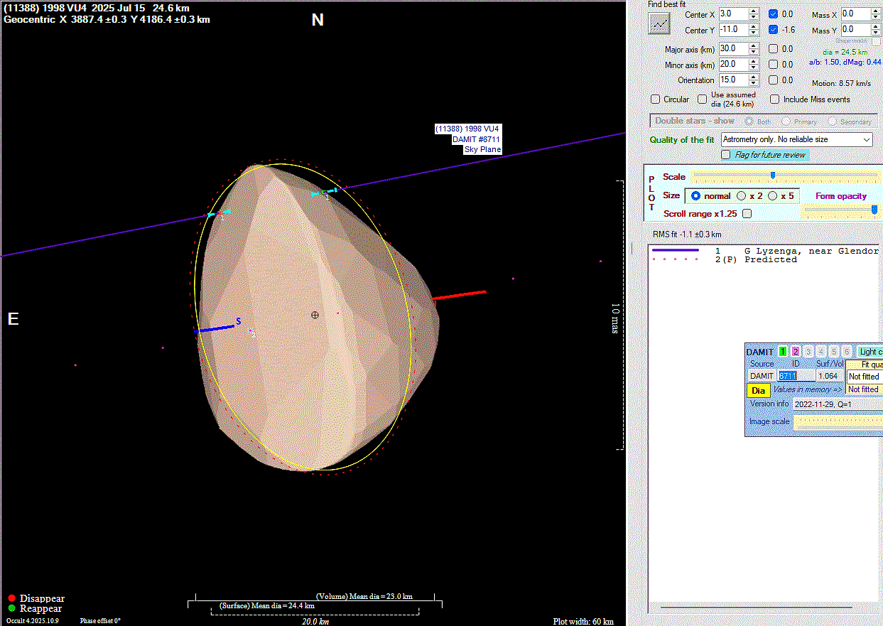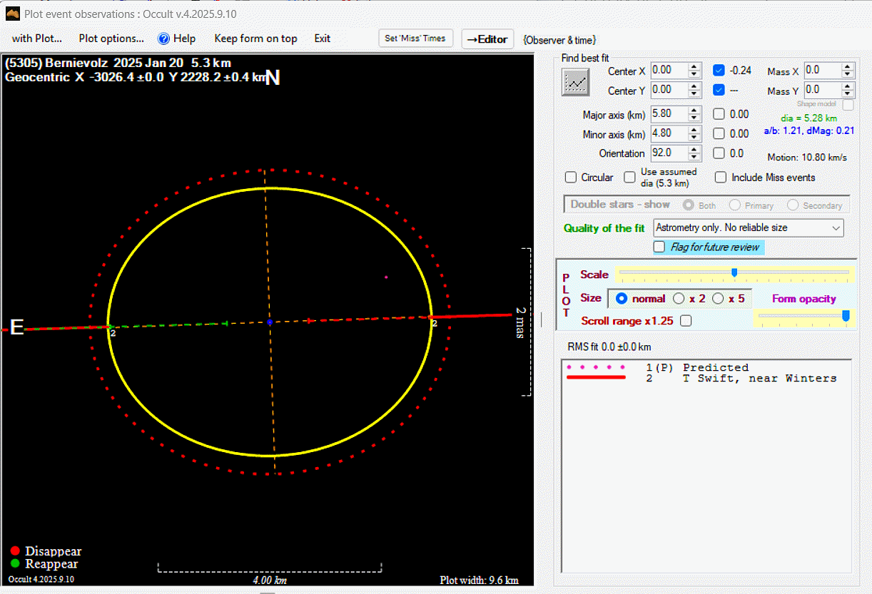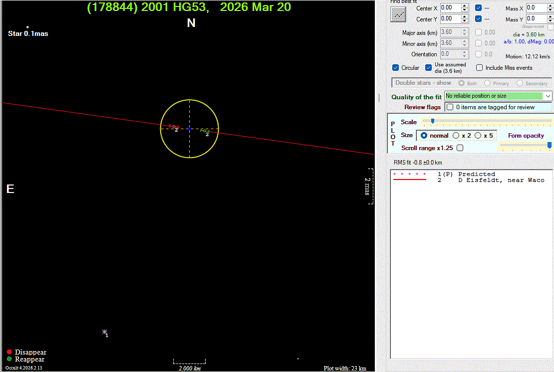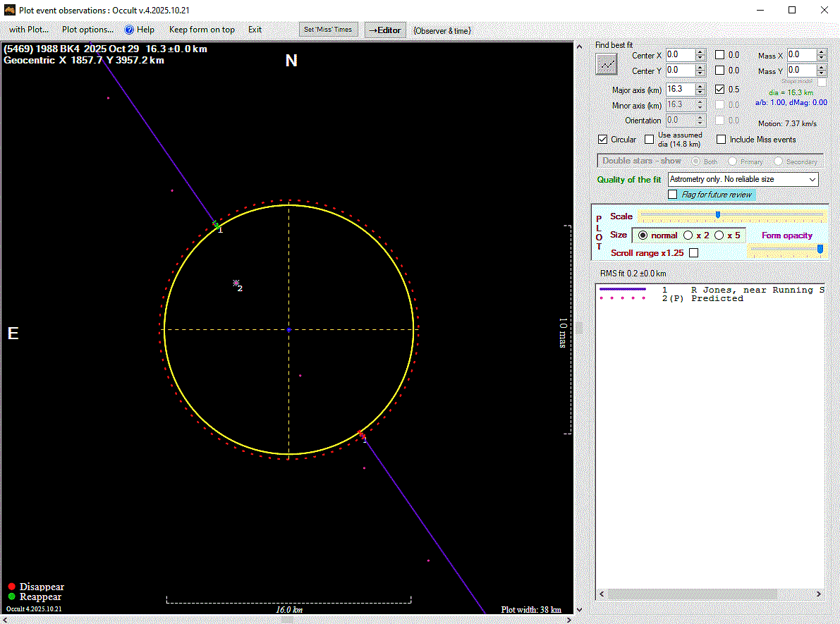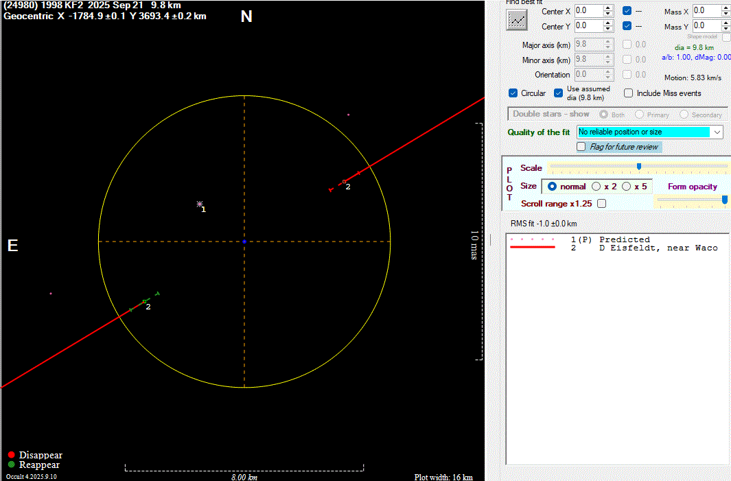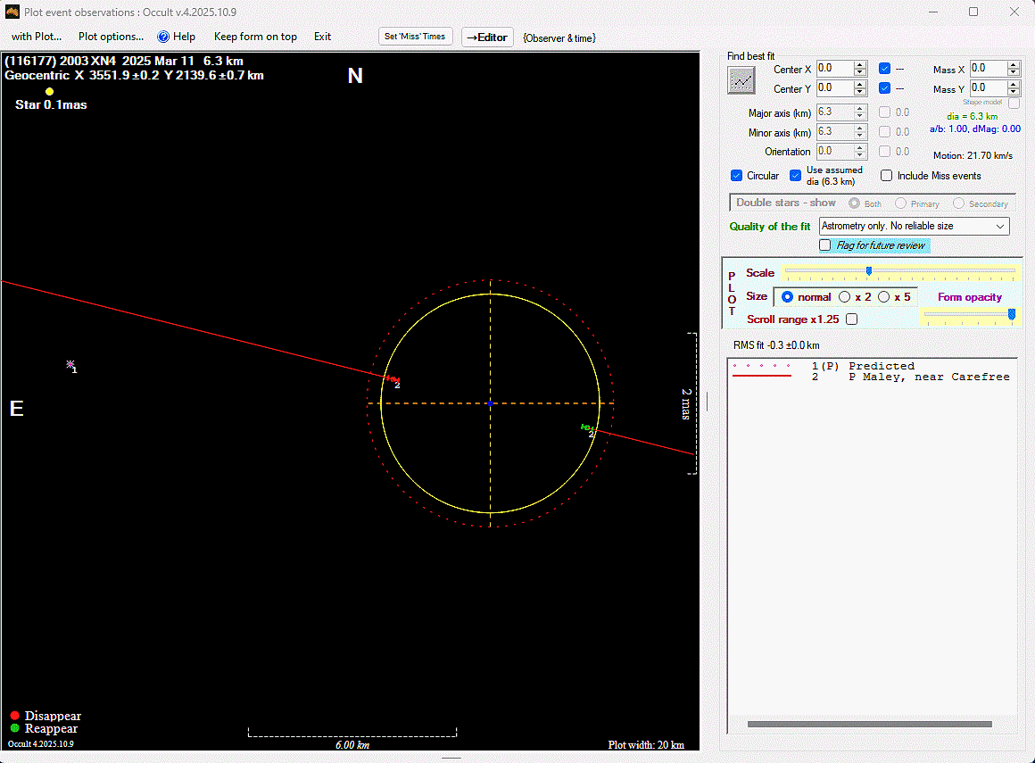 The true size/shape of an asteroid in 3-dimensions cannot be determined from a single occultation.