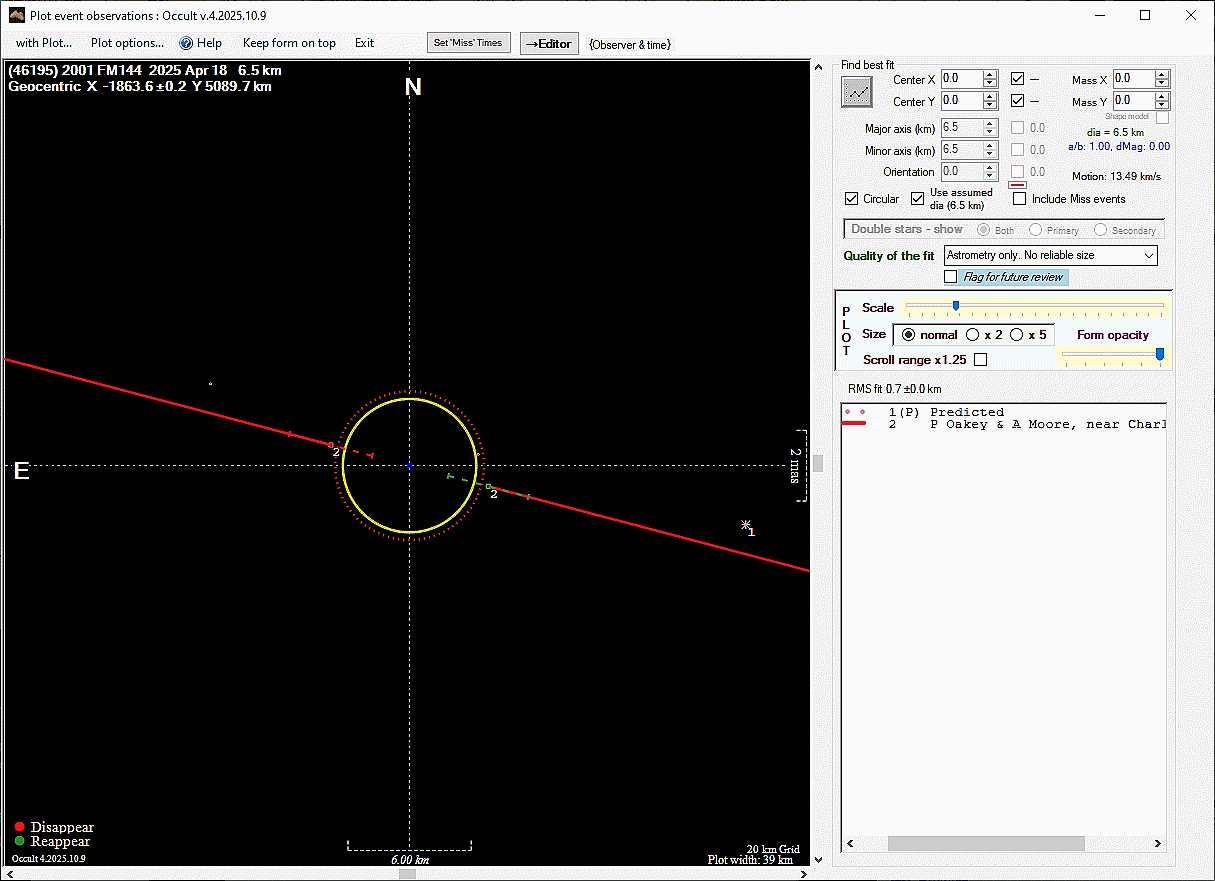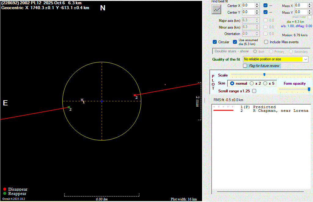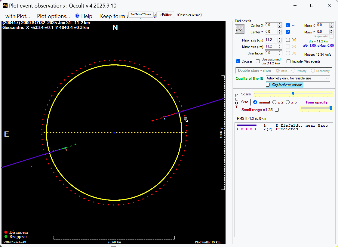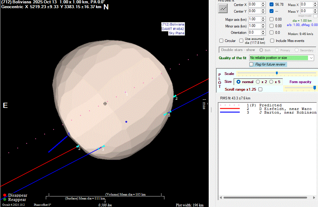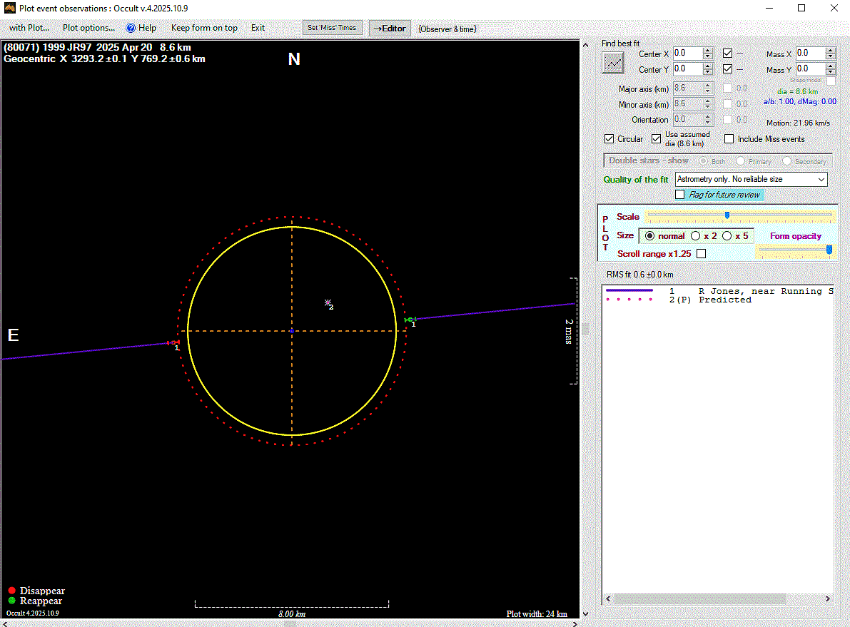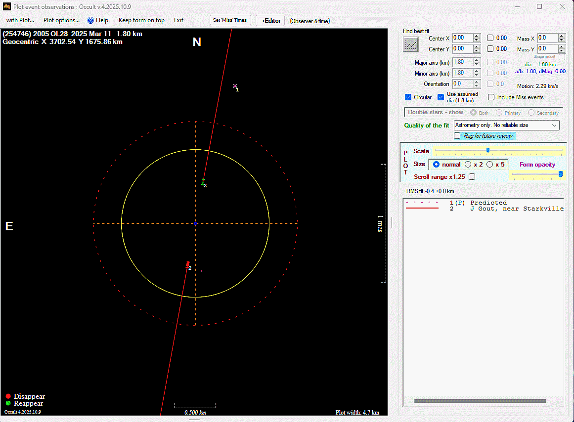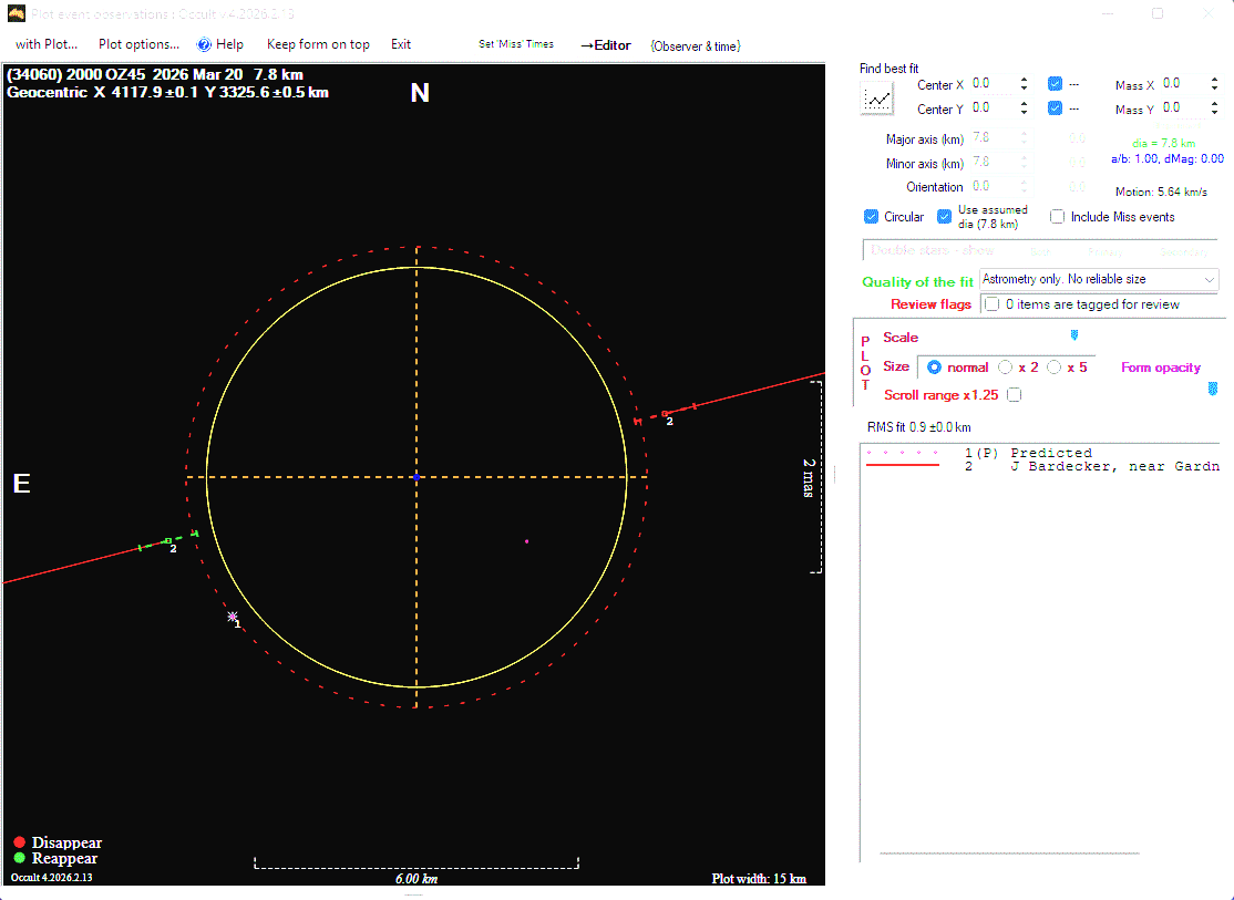 The true size/shape of an asteroid in 3-dimensions cannot be determined from a single occultation.