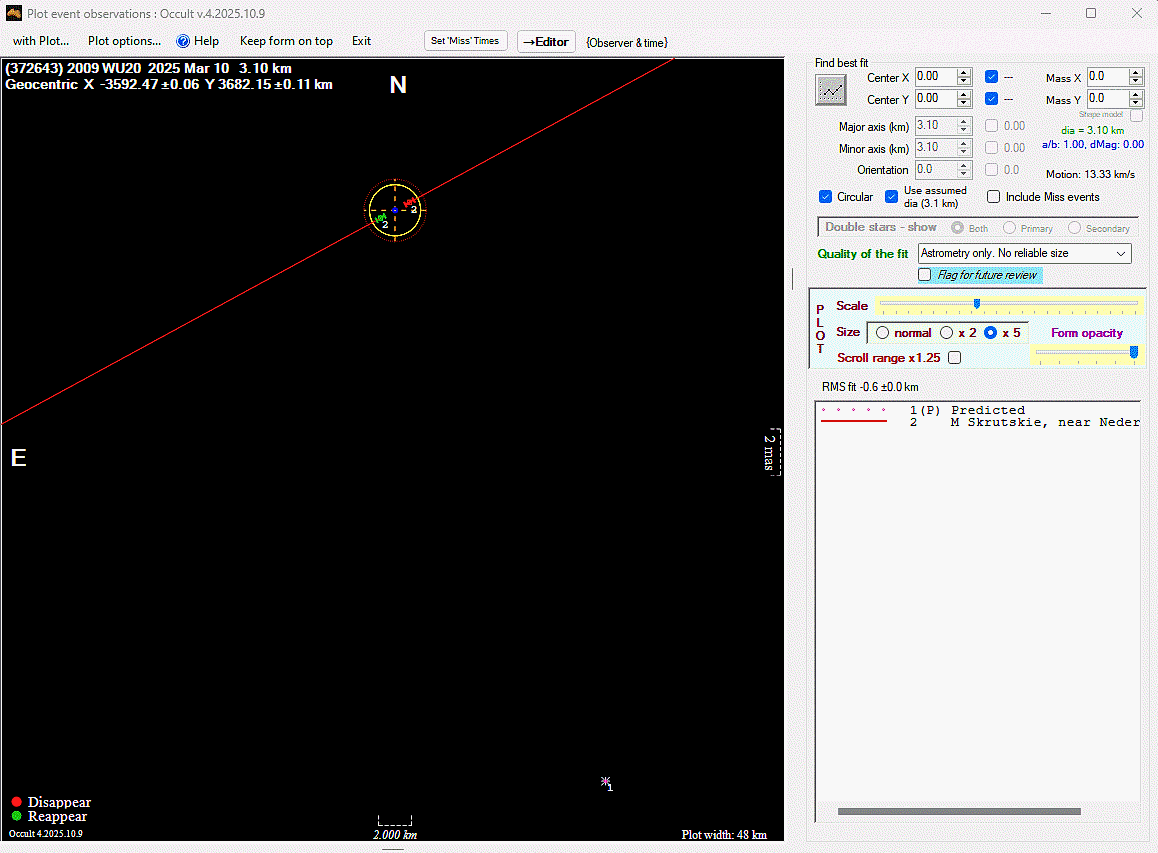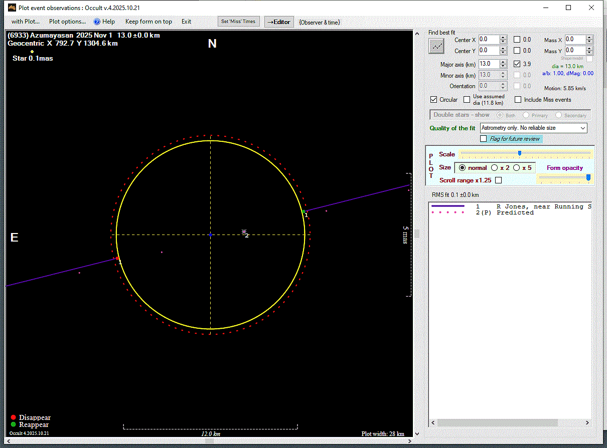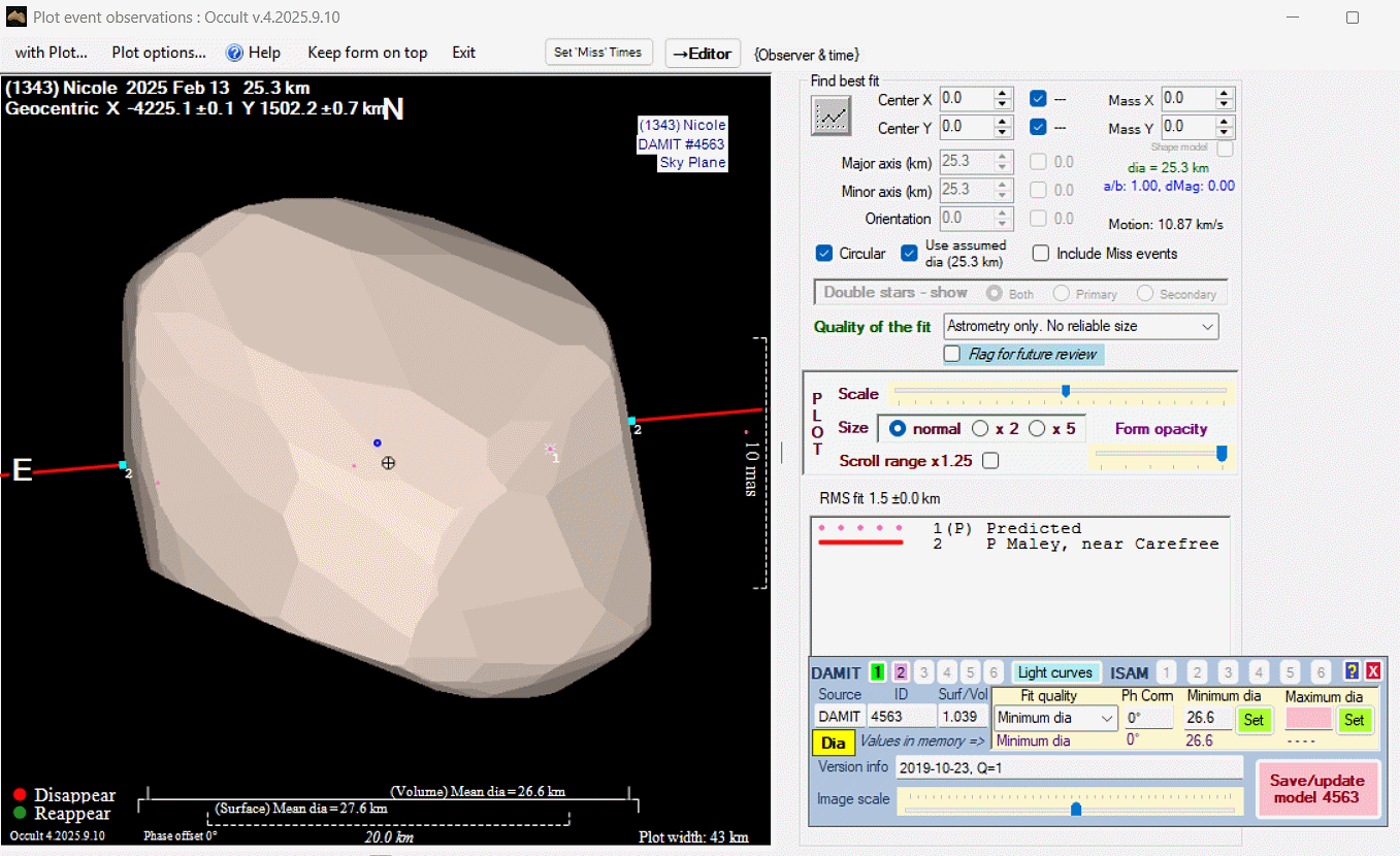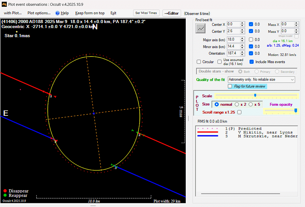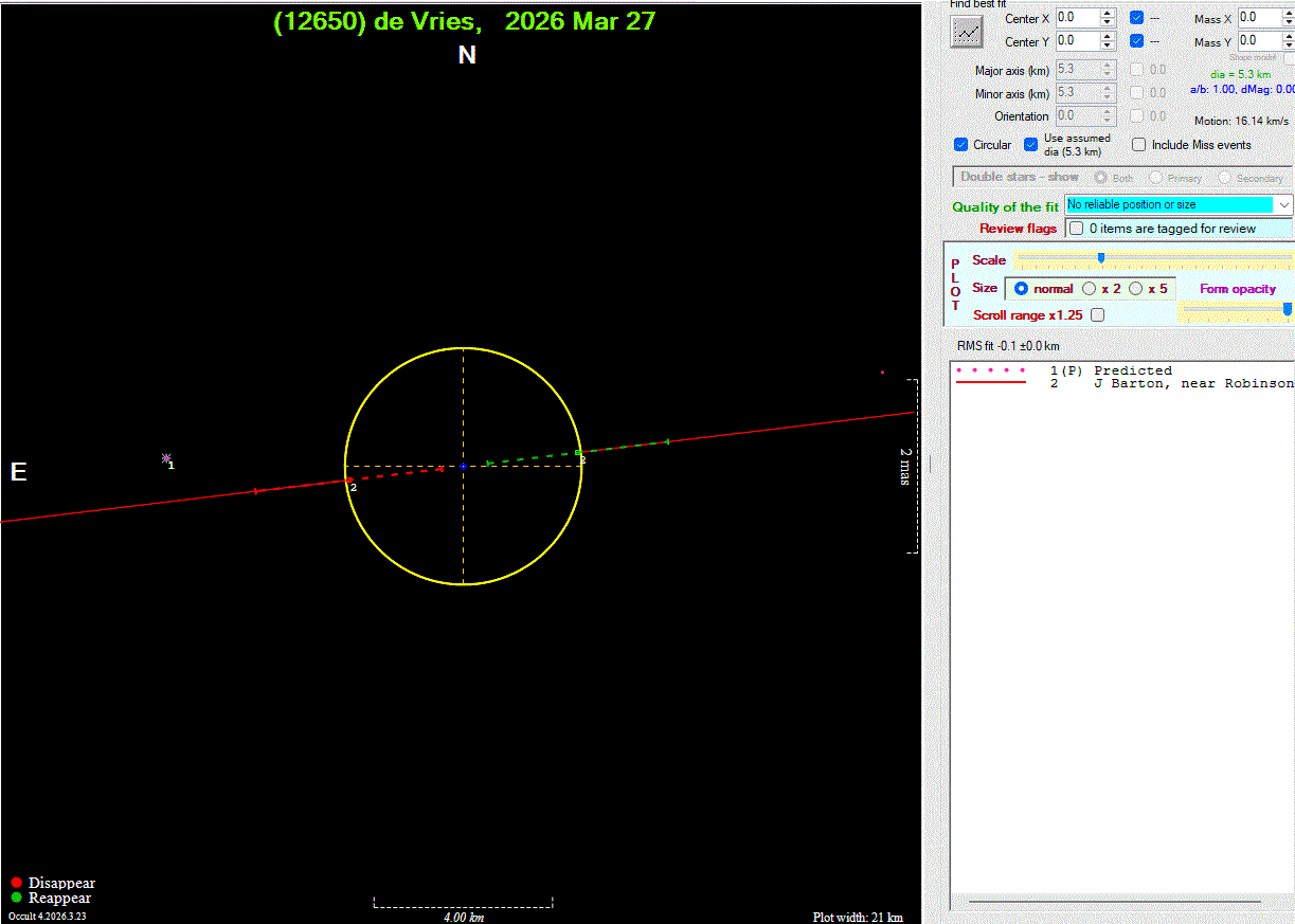 The true size/shape of an asteroid in 3-dimensions cannot be determined from a single occultation.