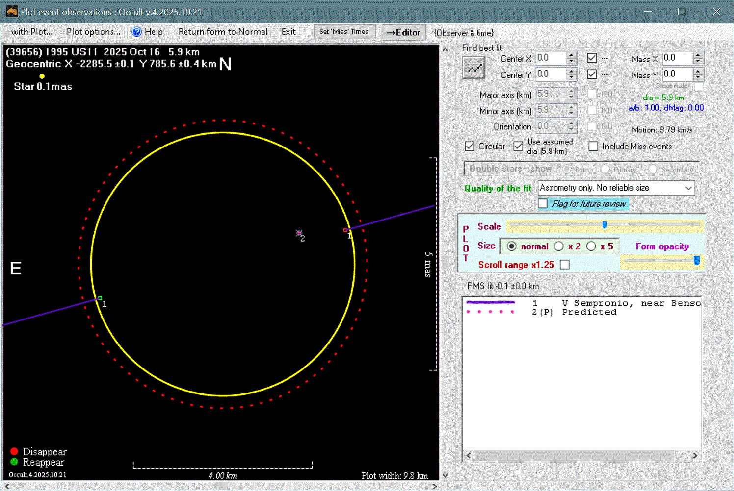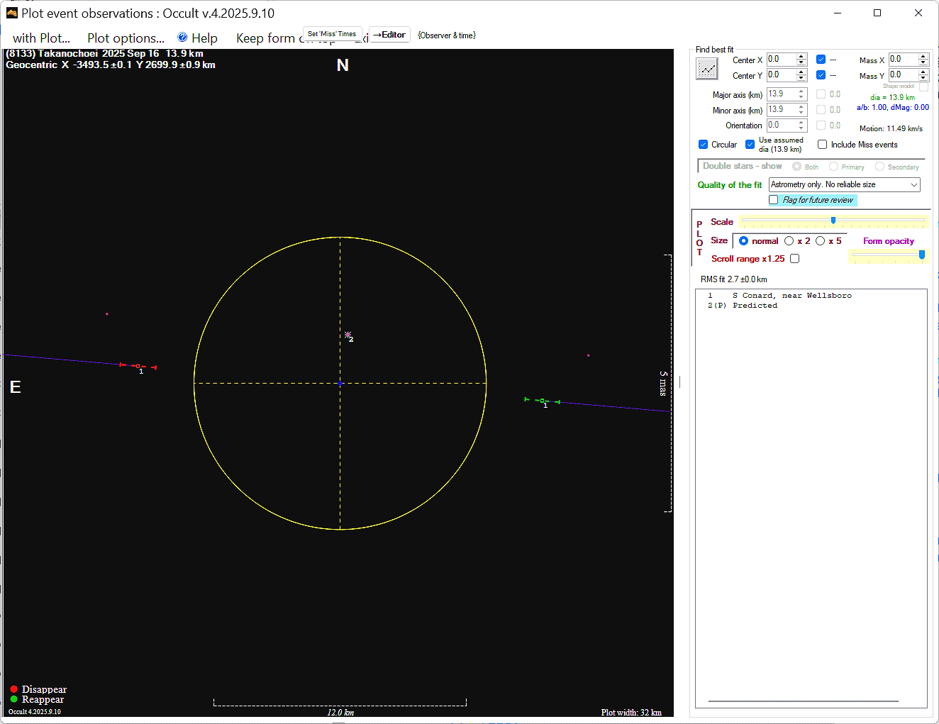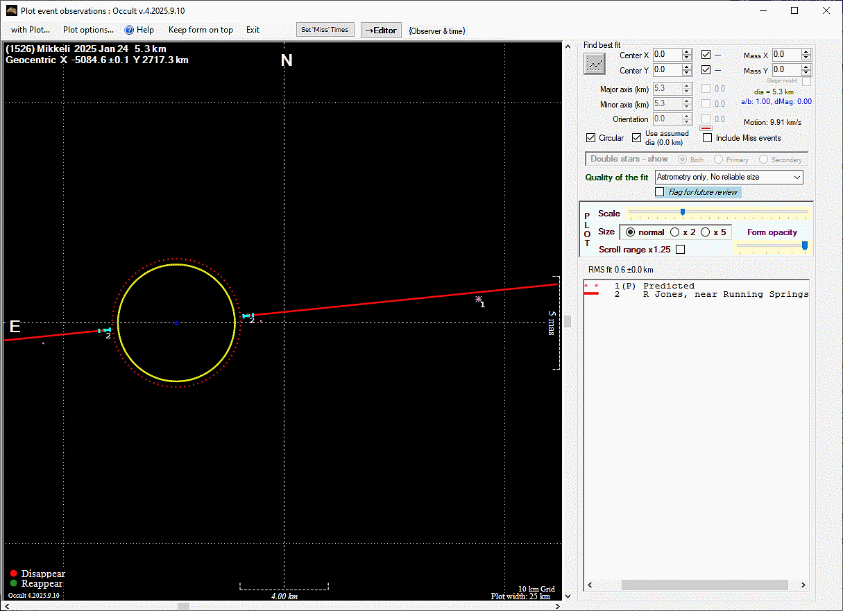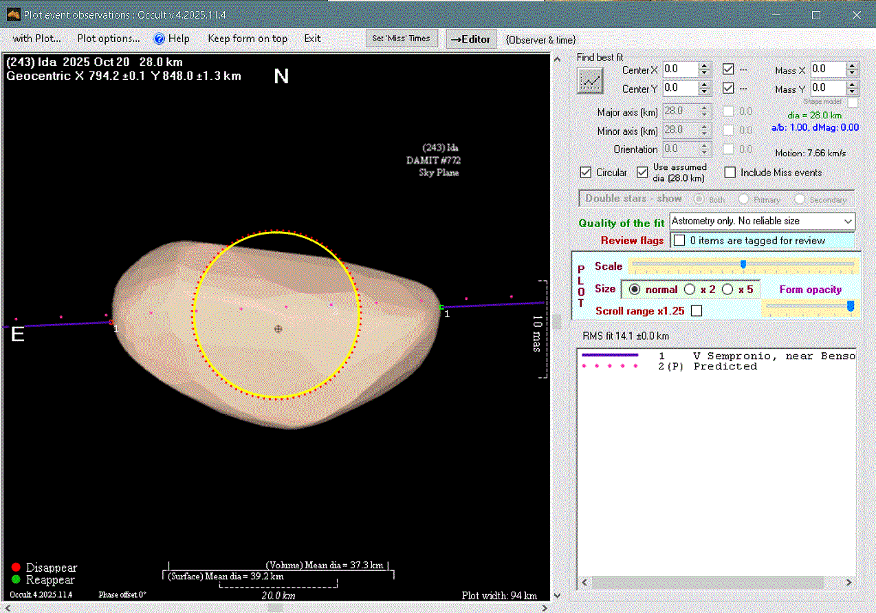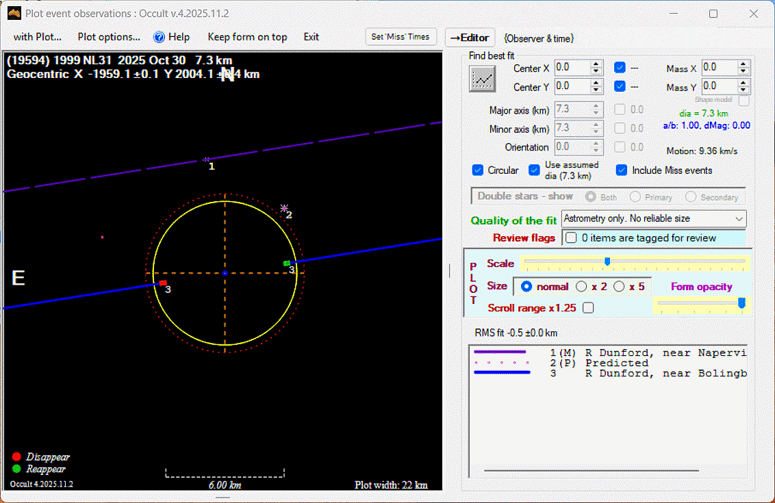 The true size/shape of an asteroid in 3-dimensions cannot be determined from a single occultation.