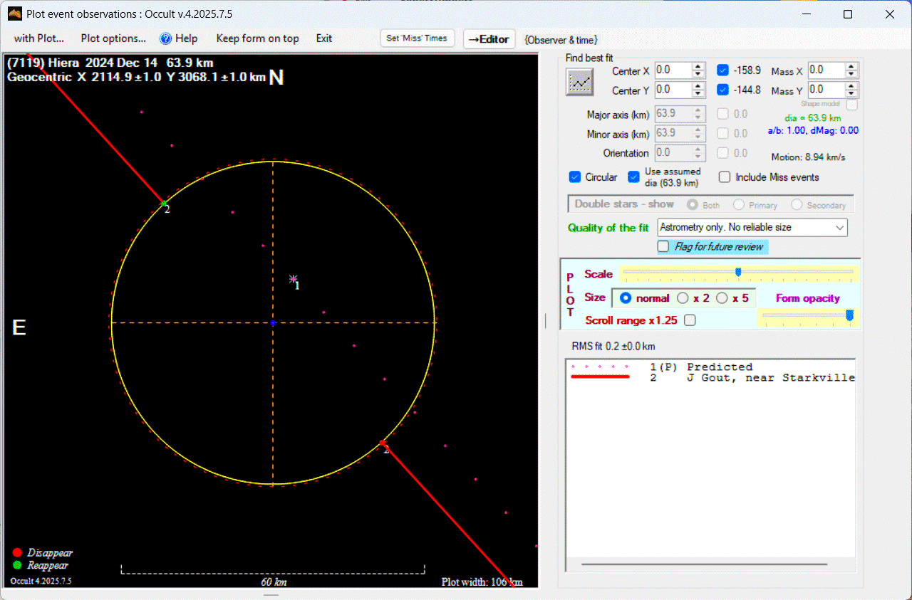 The true size/shape of an asteroid in 3-dimensions cannot be determined from a single occultation.
