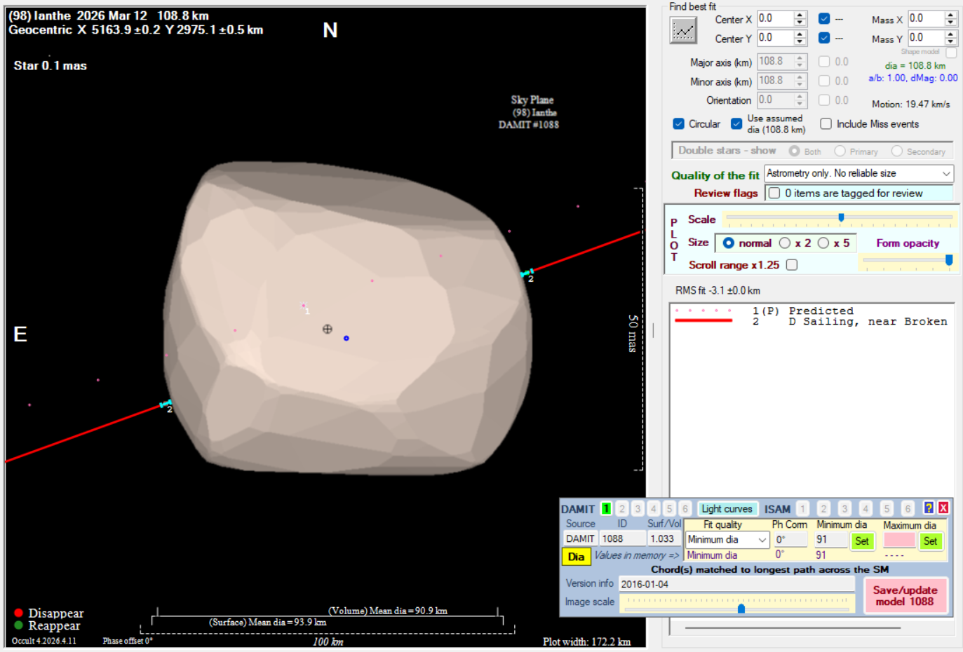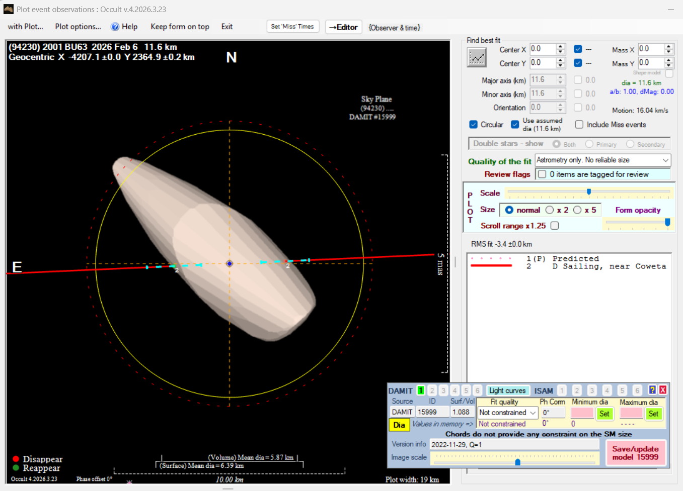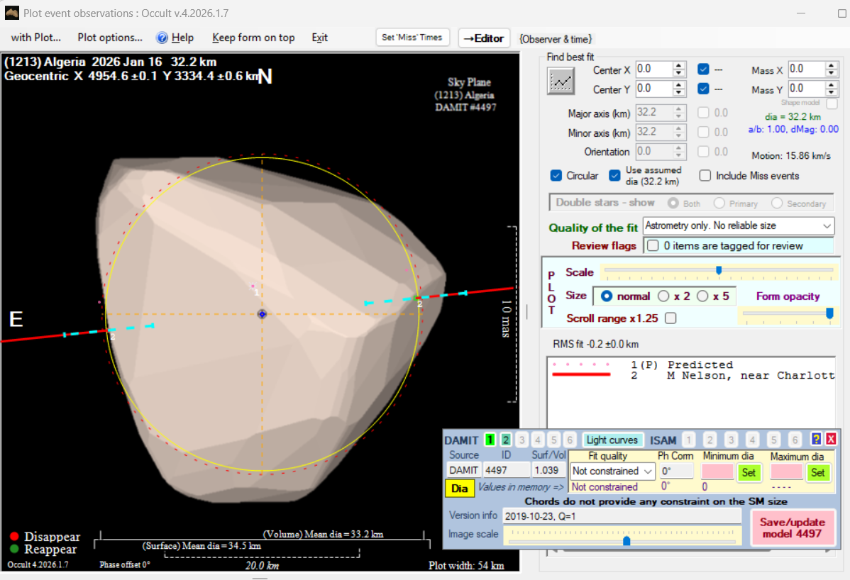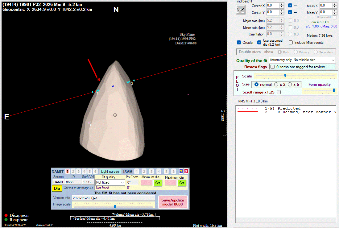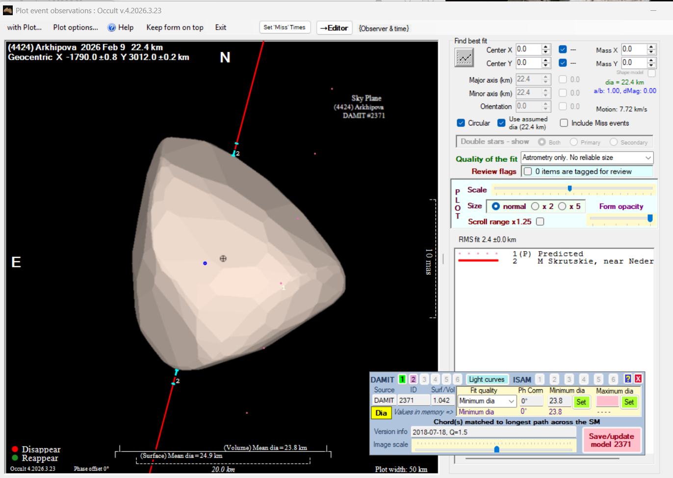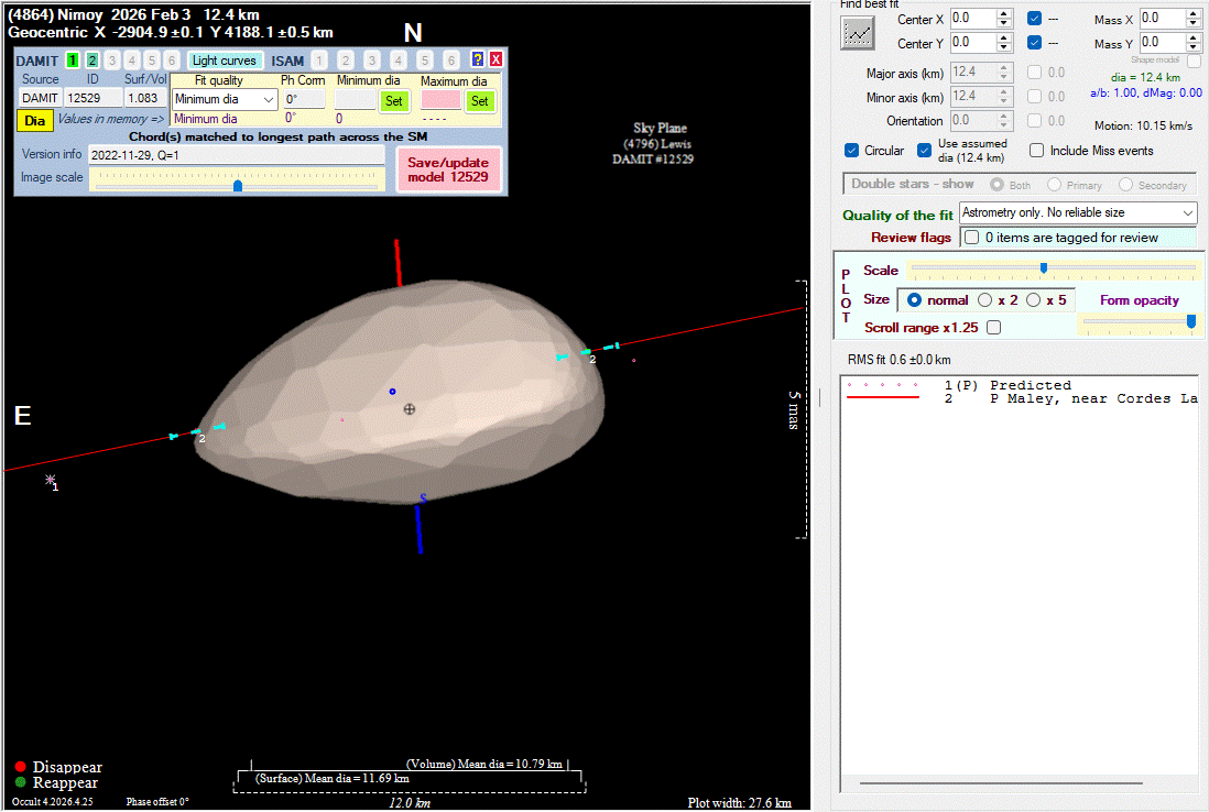 Asteroid profiles only show the line of sight view at the time of the occultation.