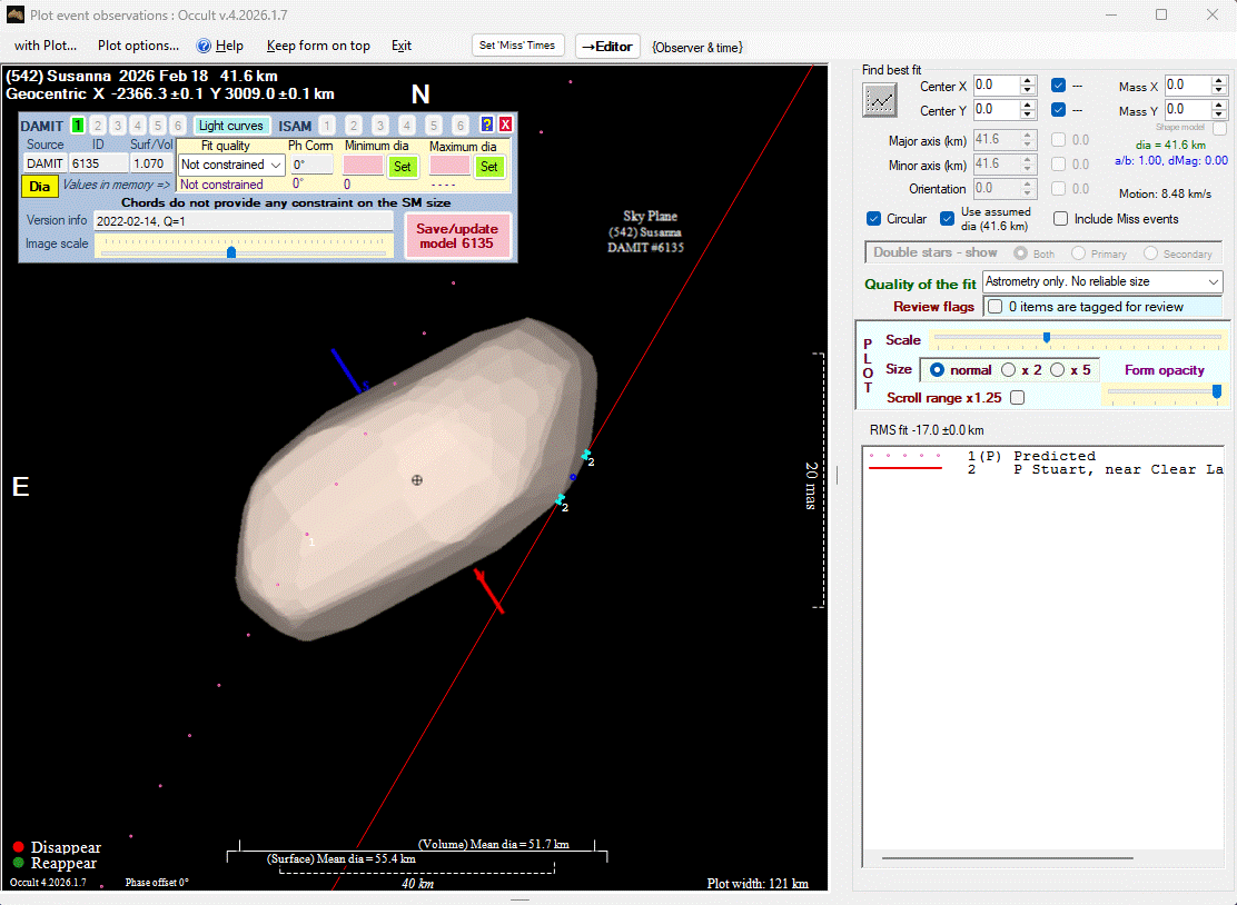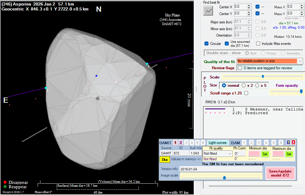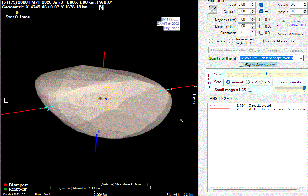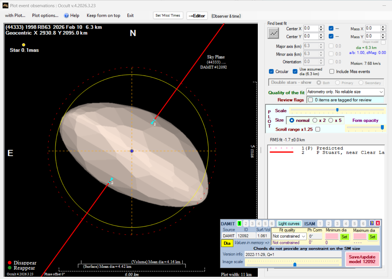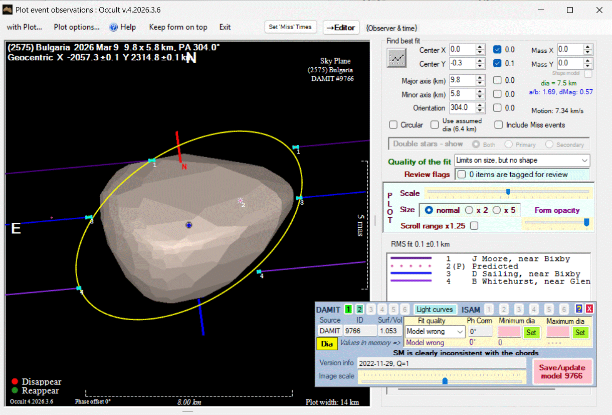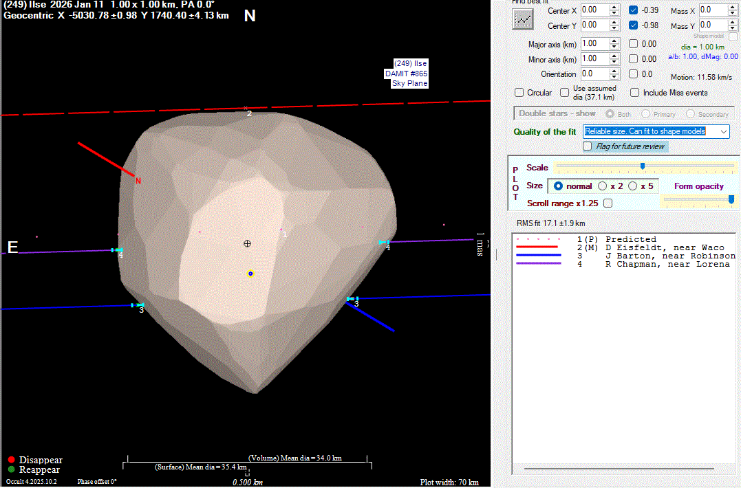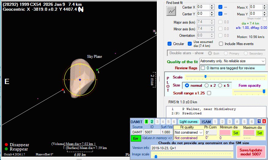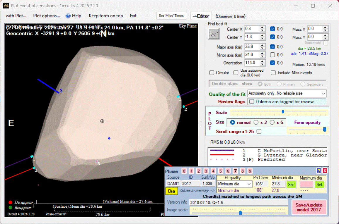 Asteroid profiles only show the line of sight view at the time of the occultation.