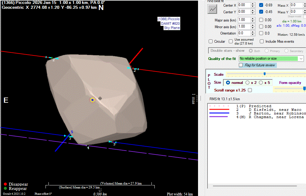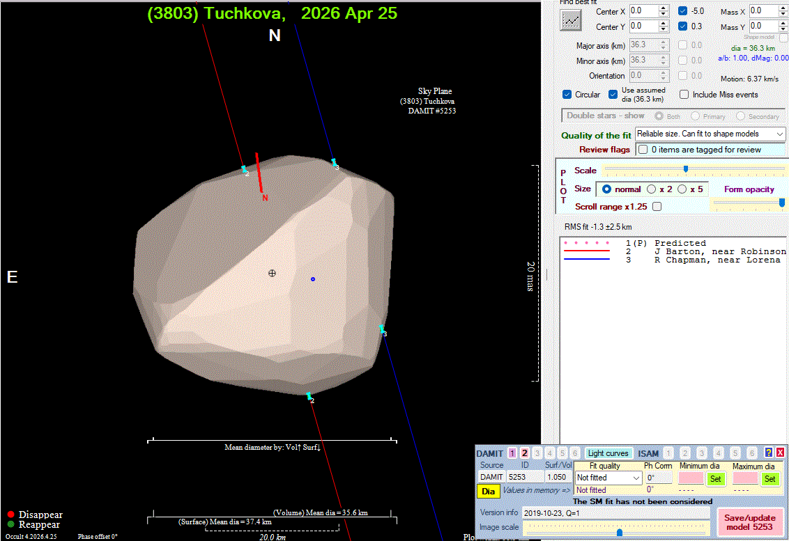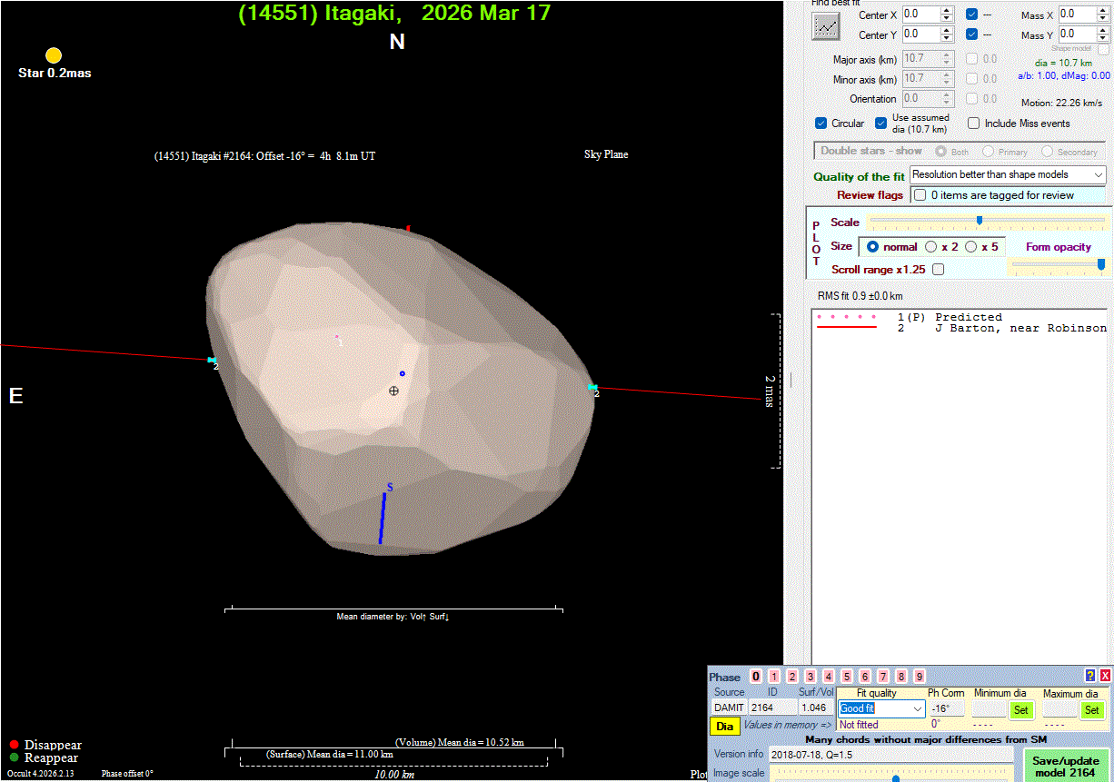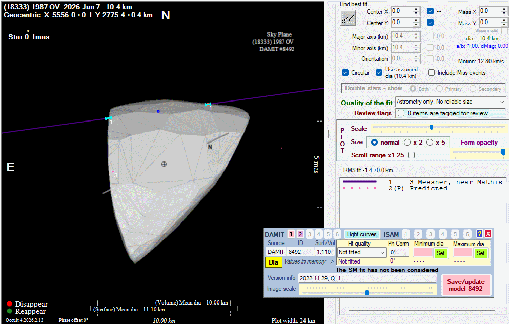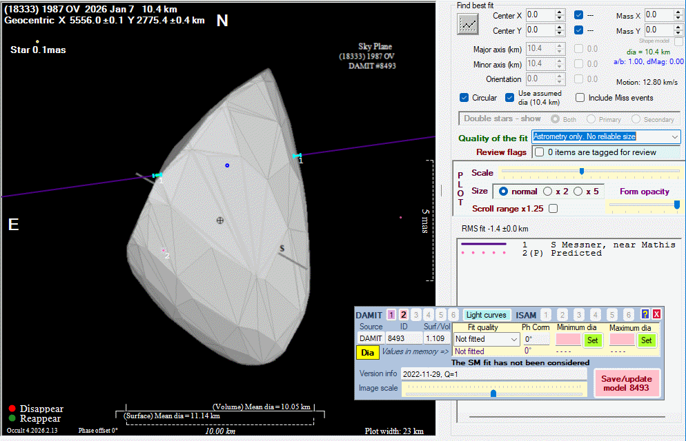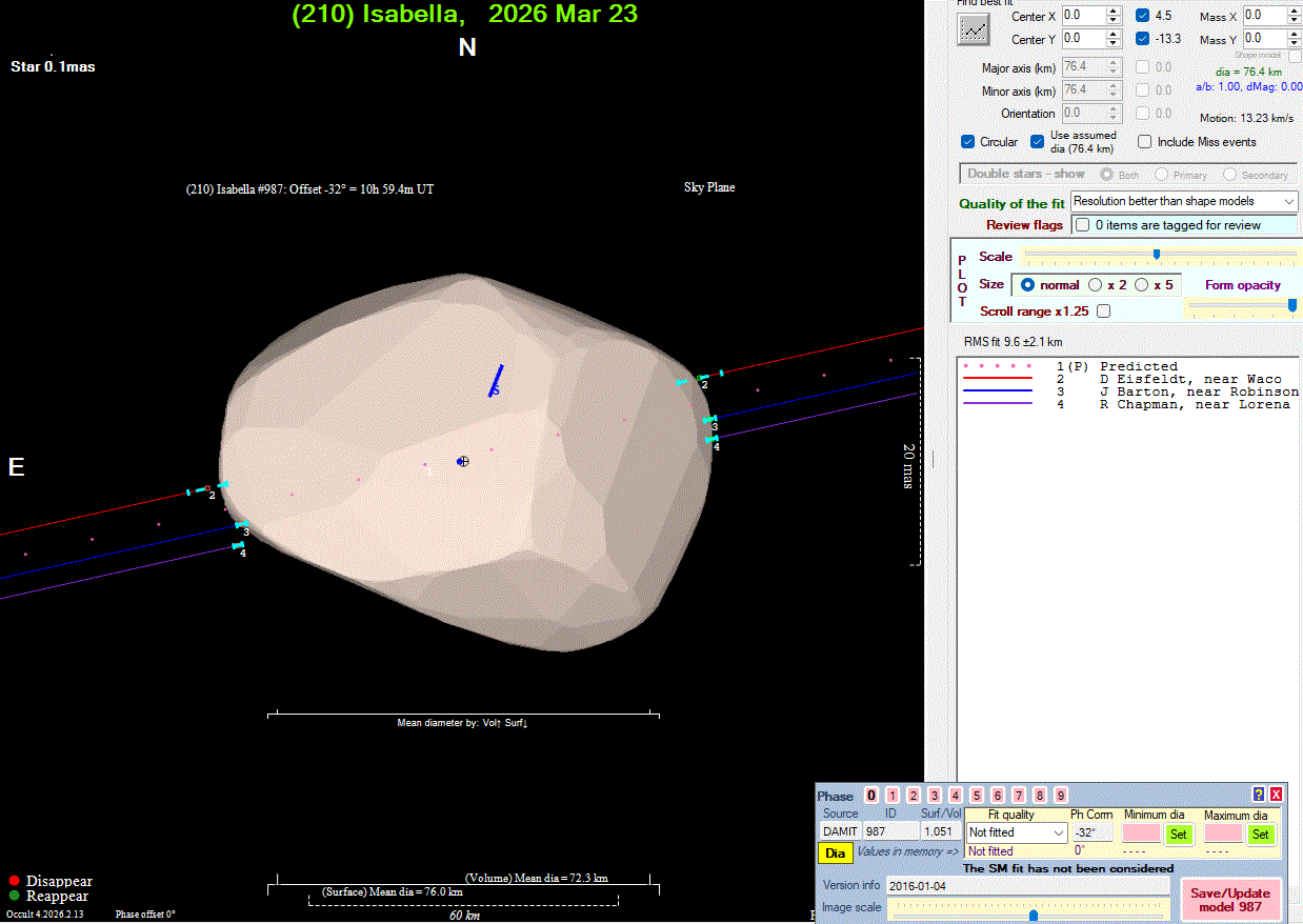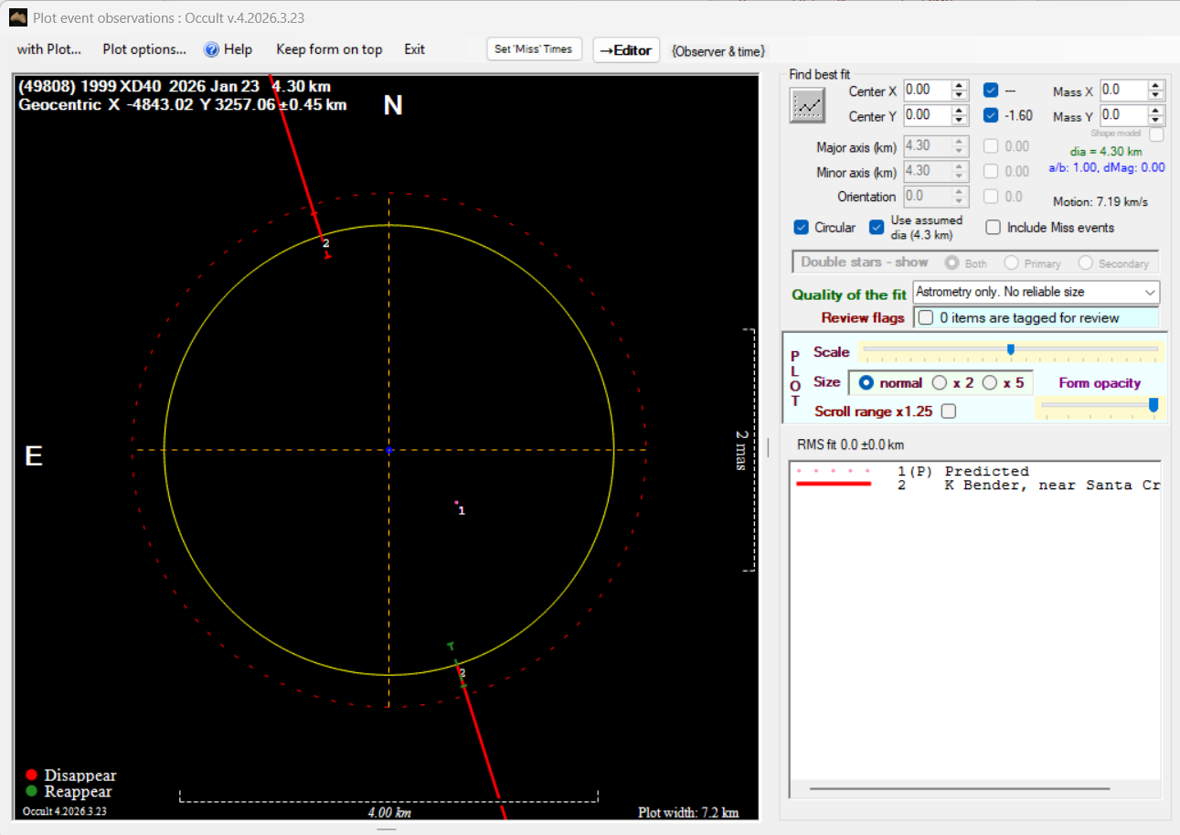 Asteroid profiles only show the line of sight view at the time of the occultation.