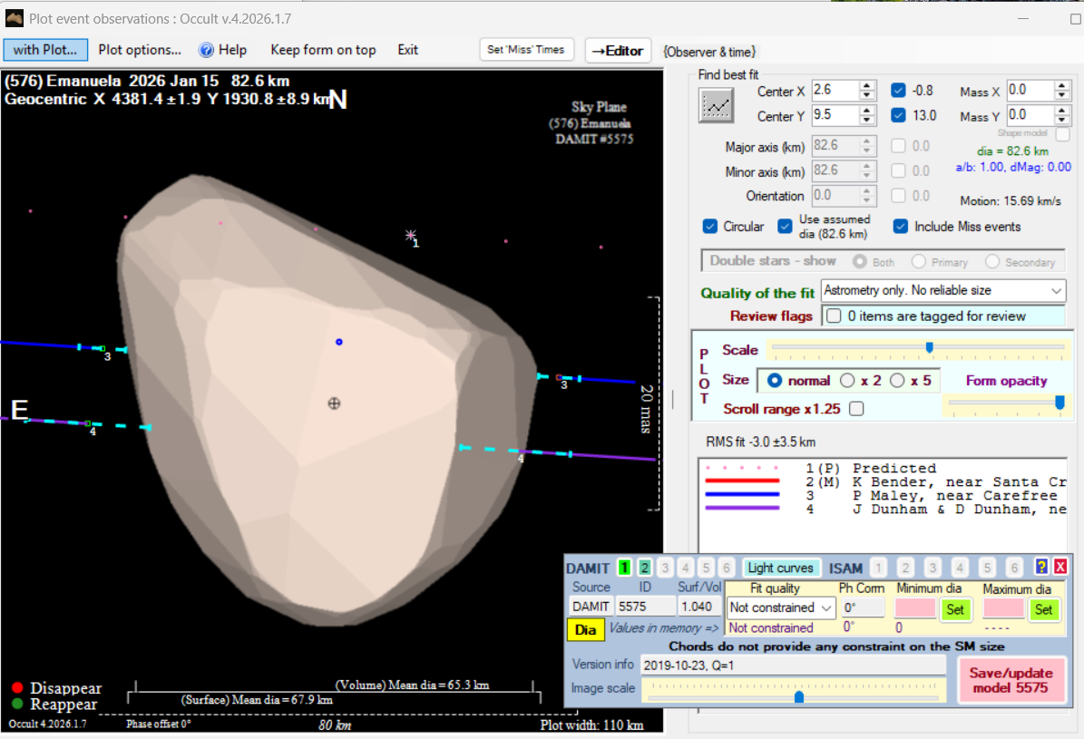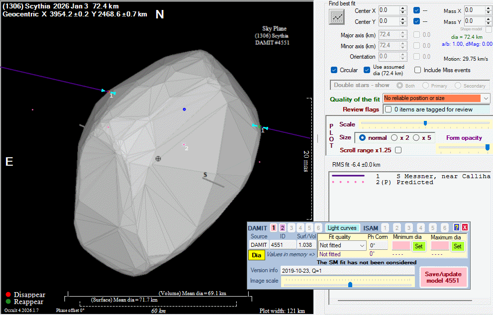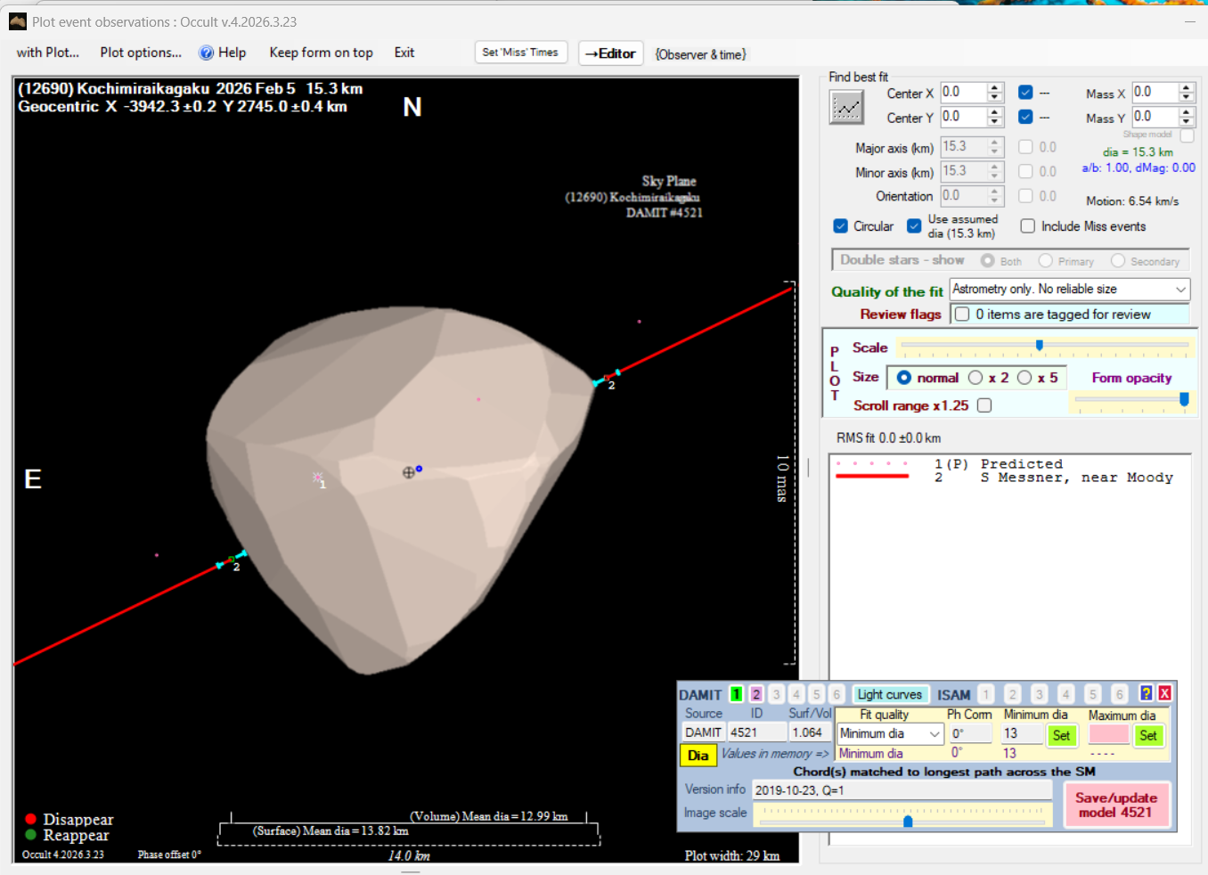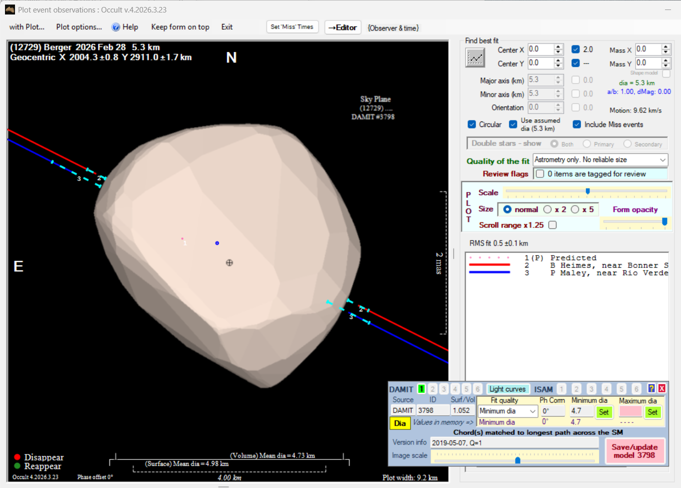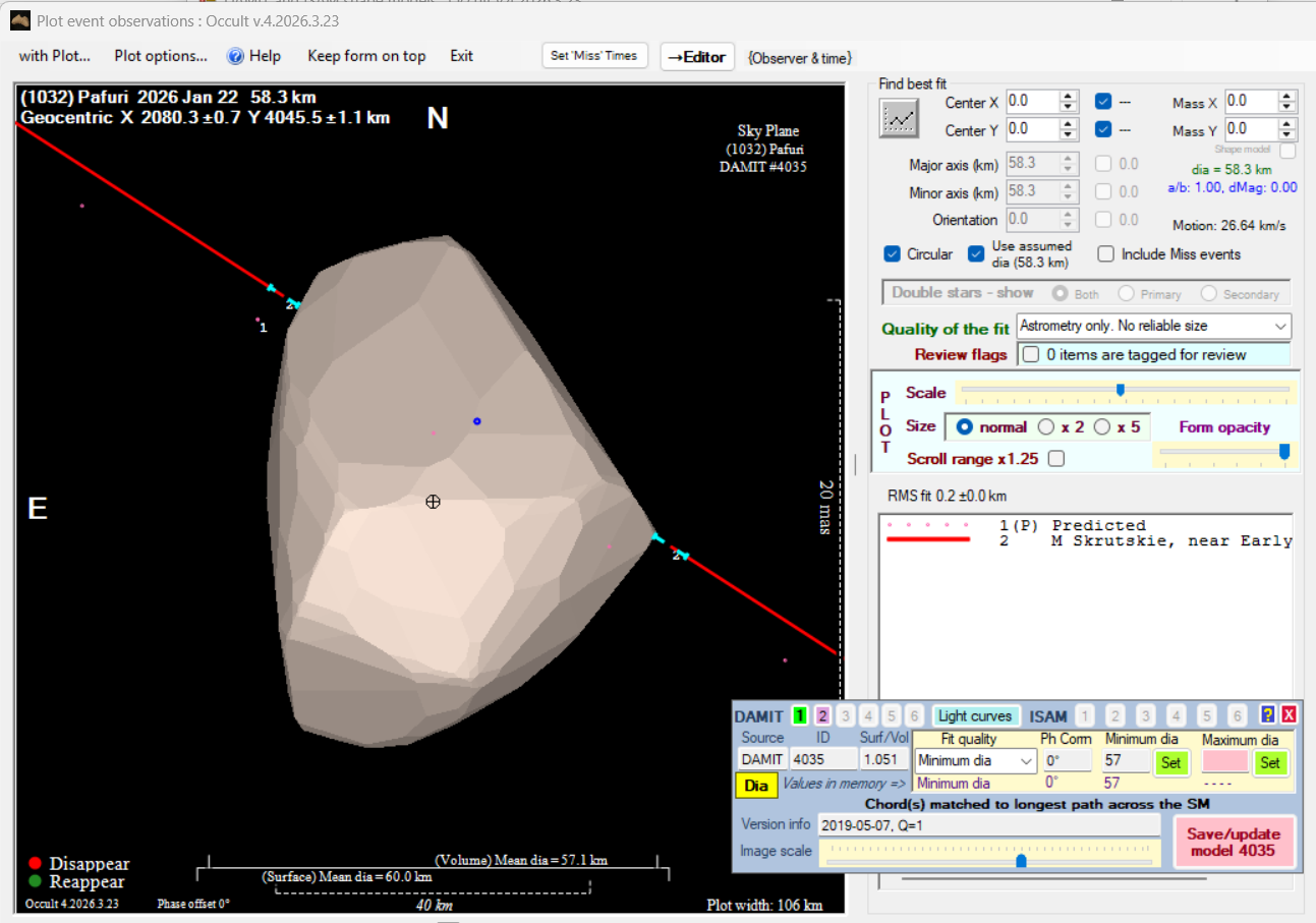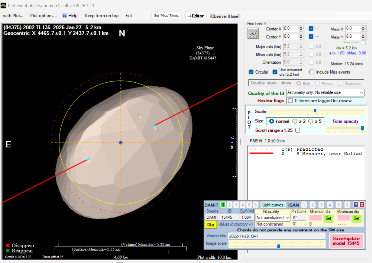 Asteroid profiles only show the line of sight view at the time of the occultation.