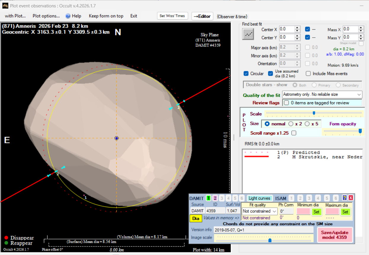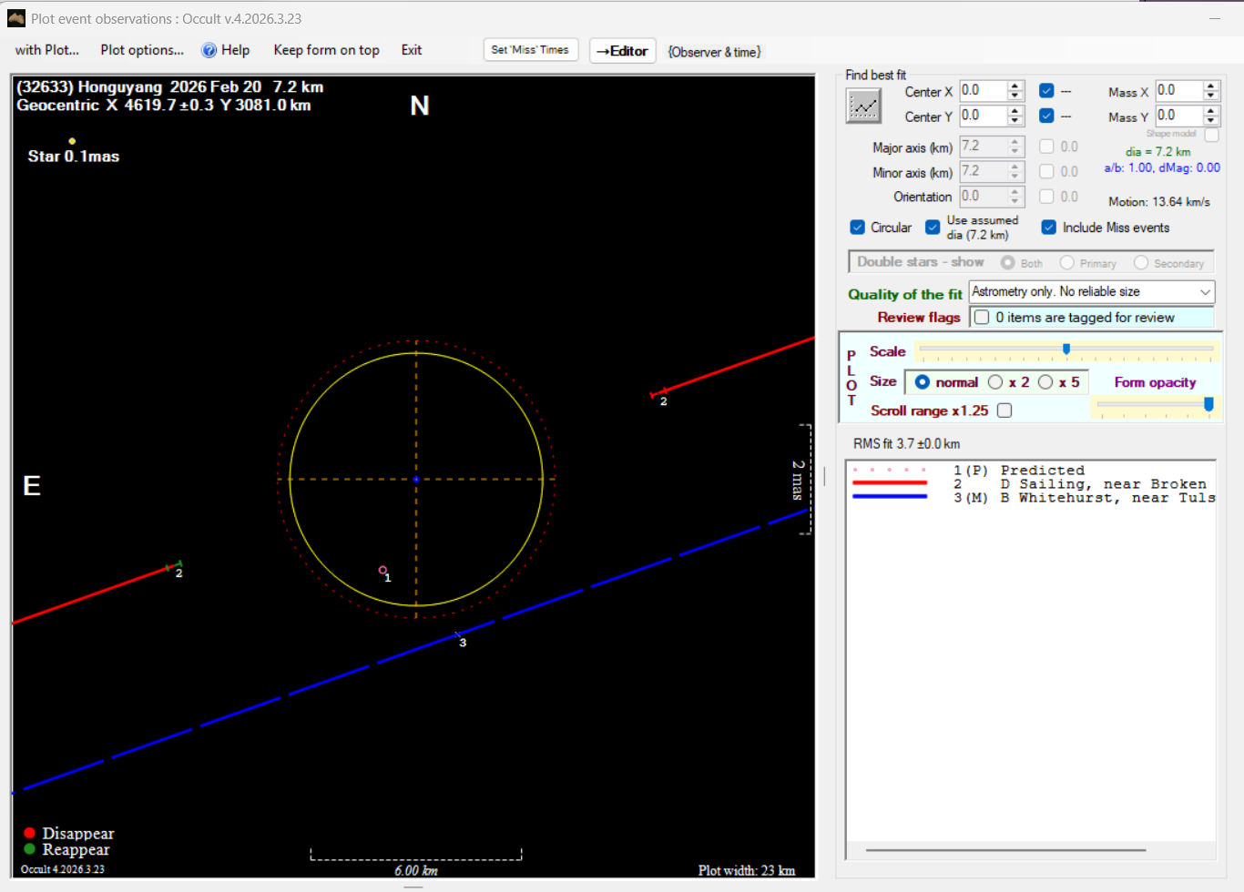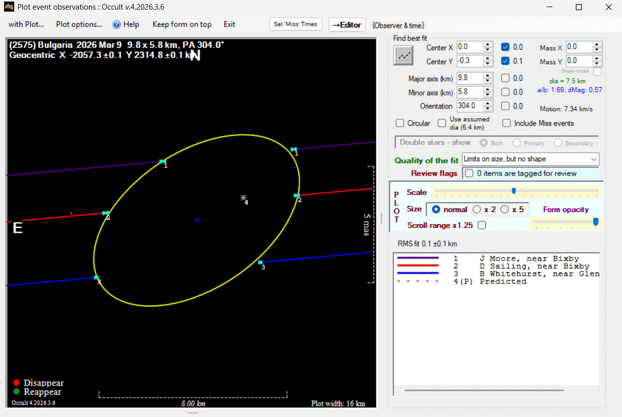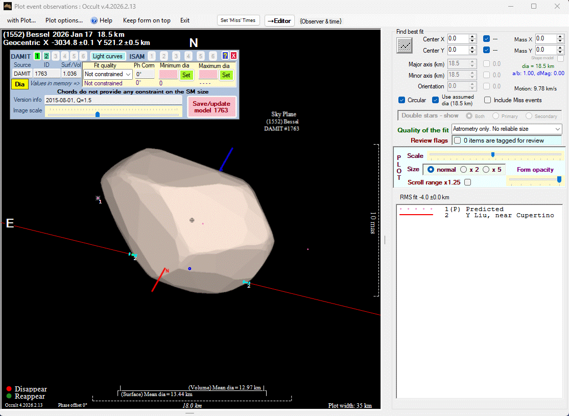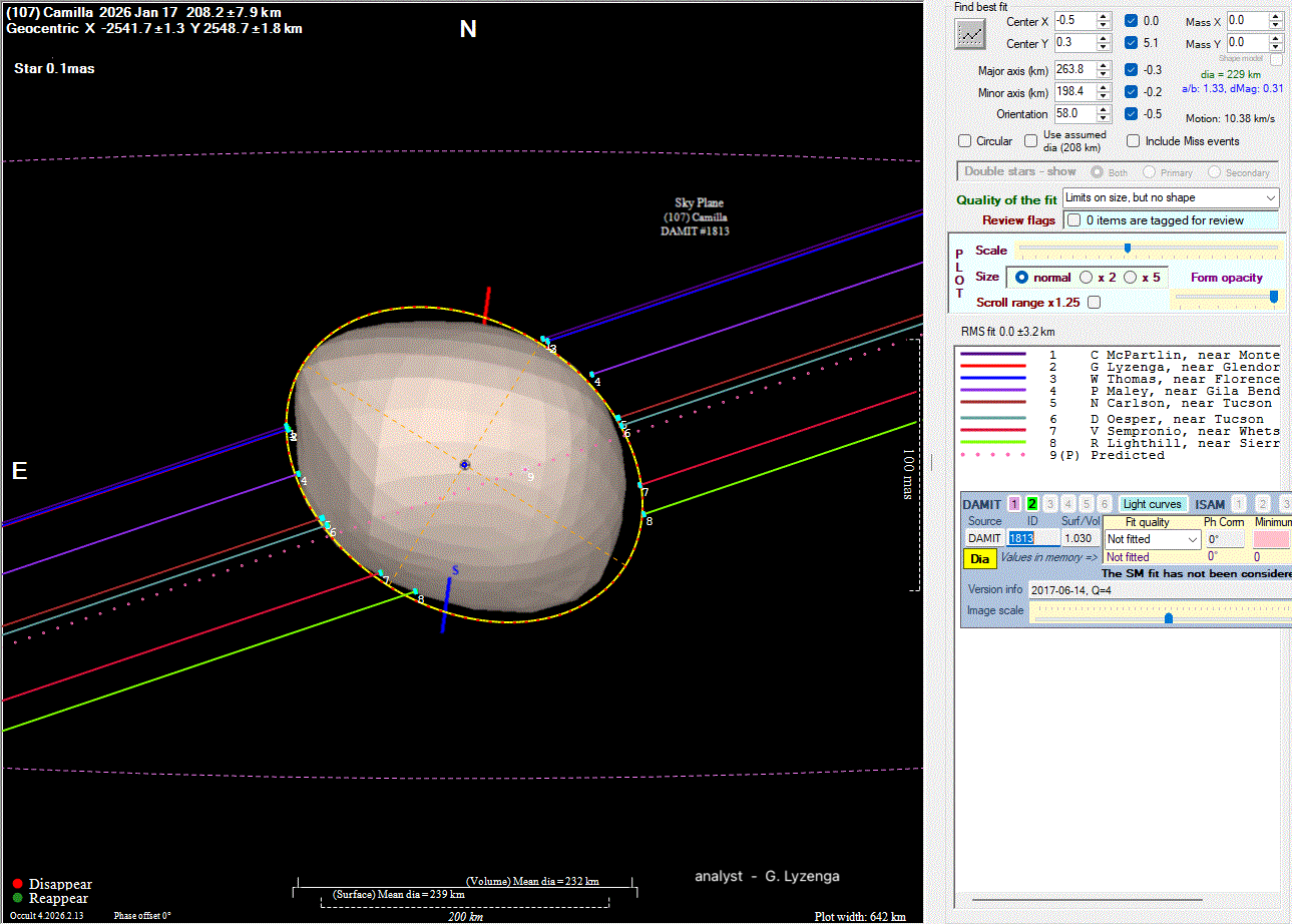 Asteroid profiles only show the line of sight view at the time of the occultation.