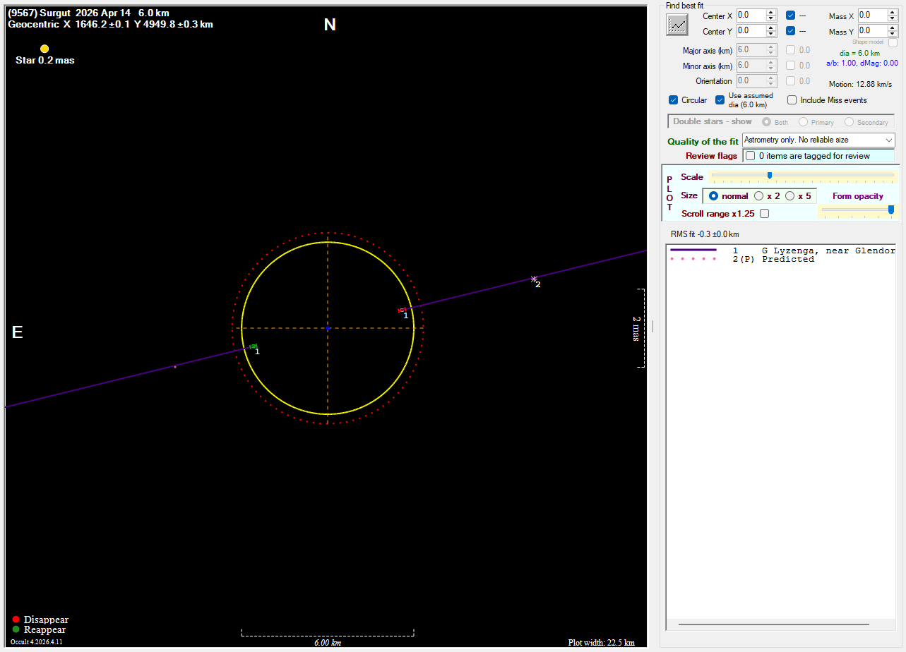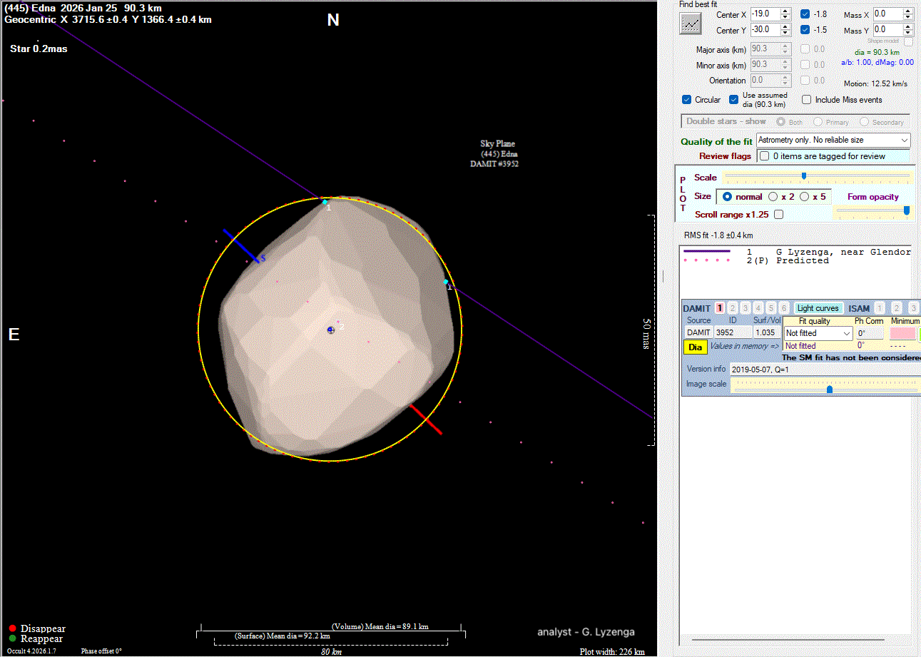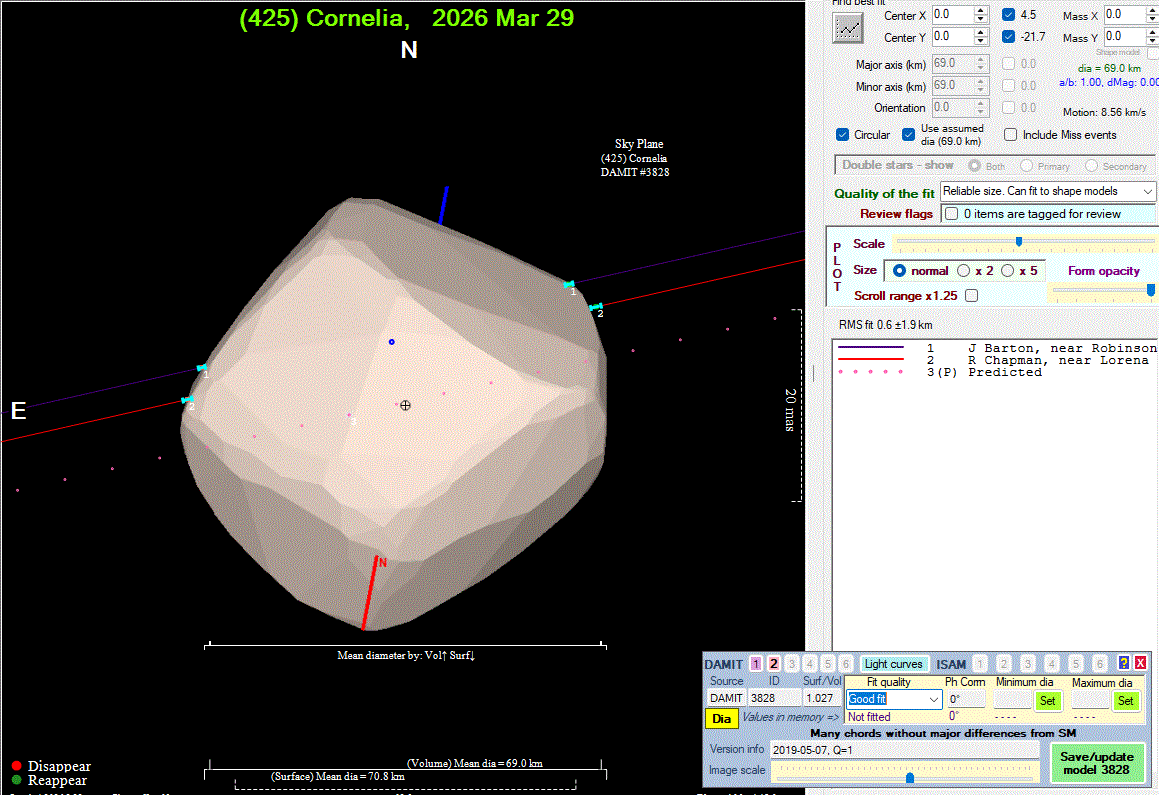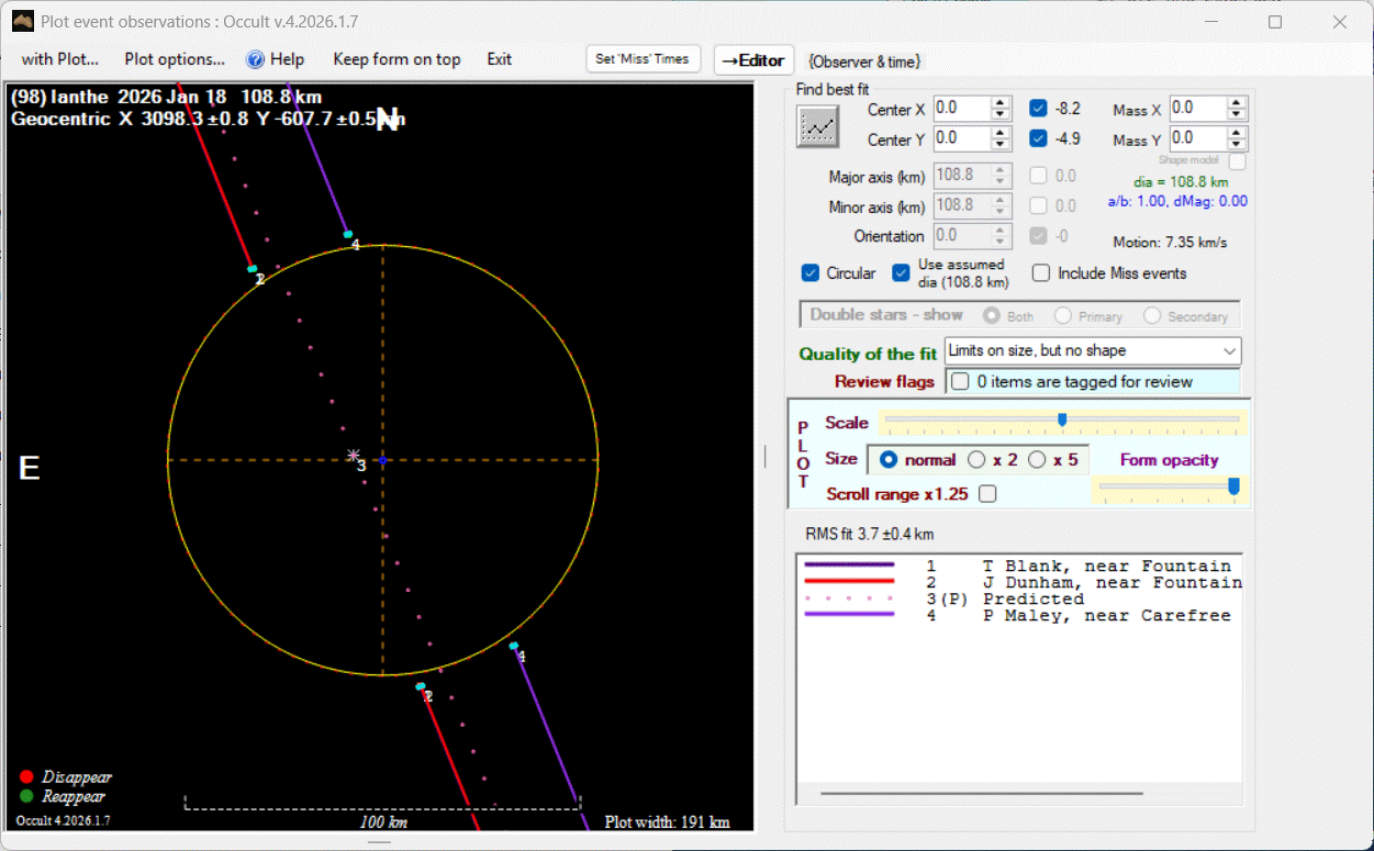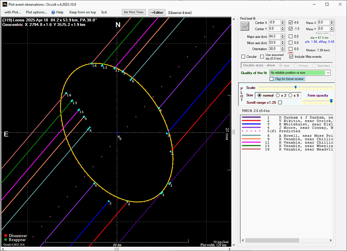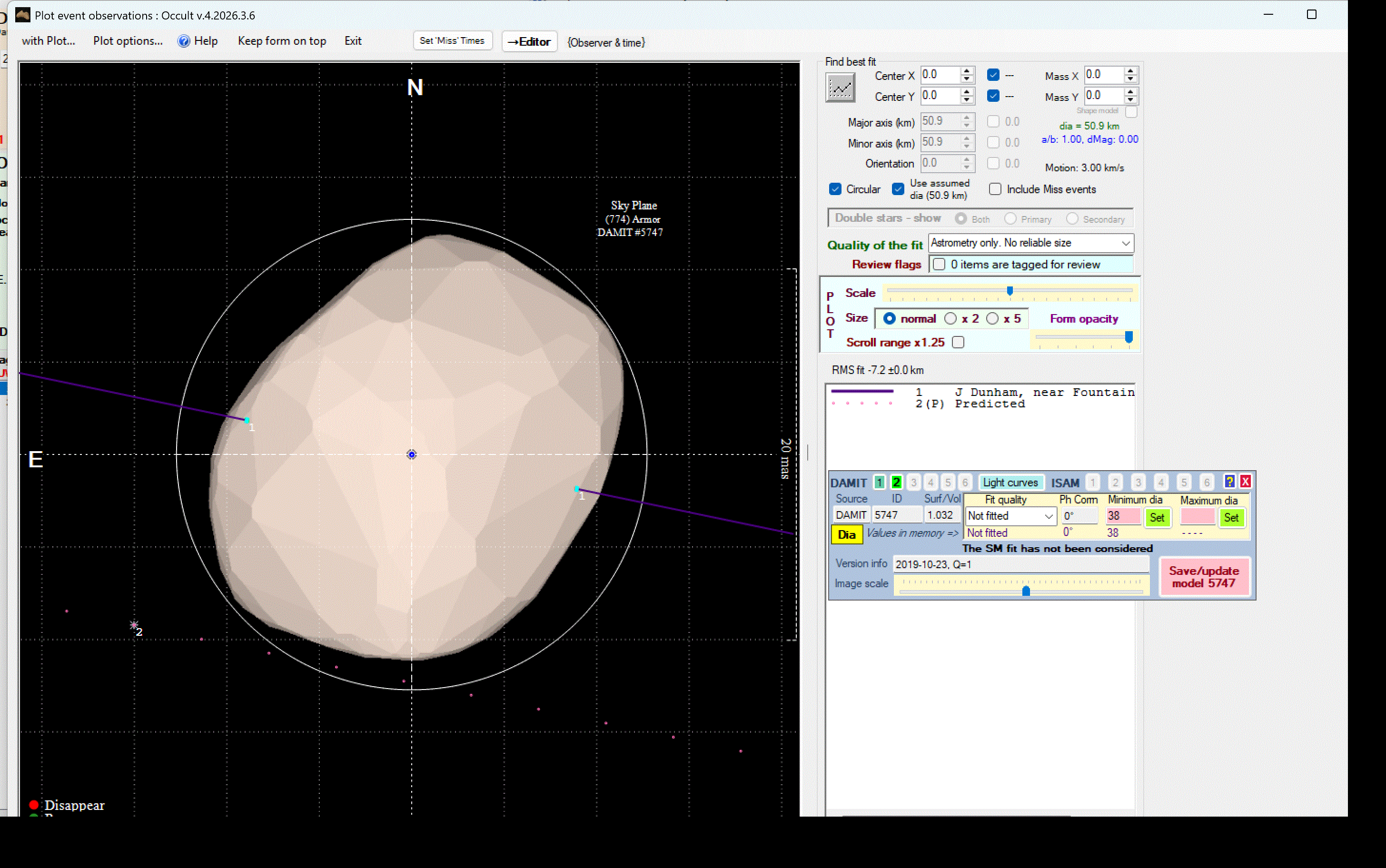 Asteroid profiles only show the line of sight view at the time of the occultation.