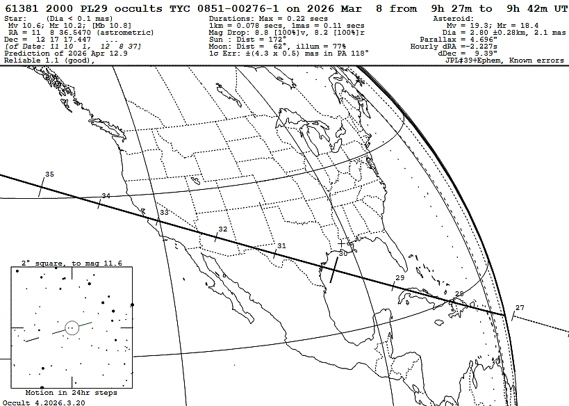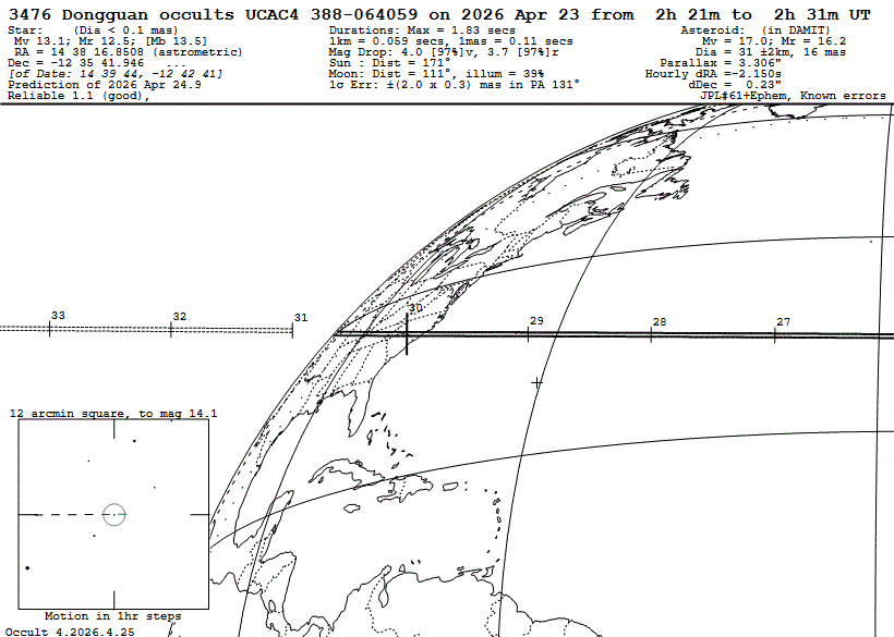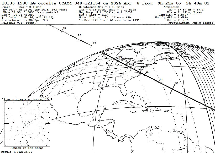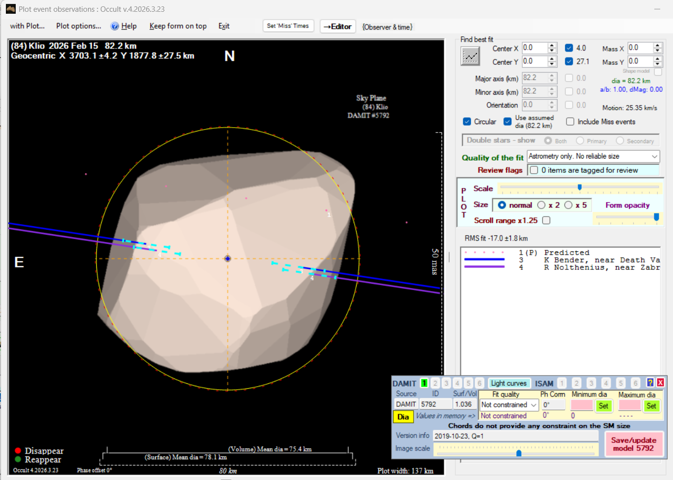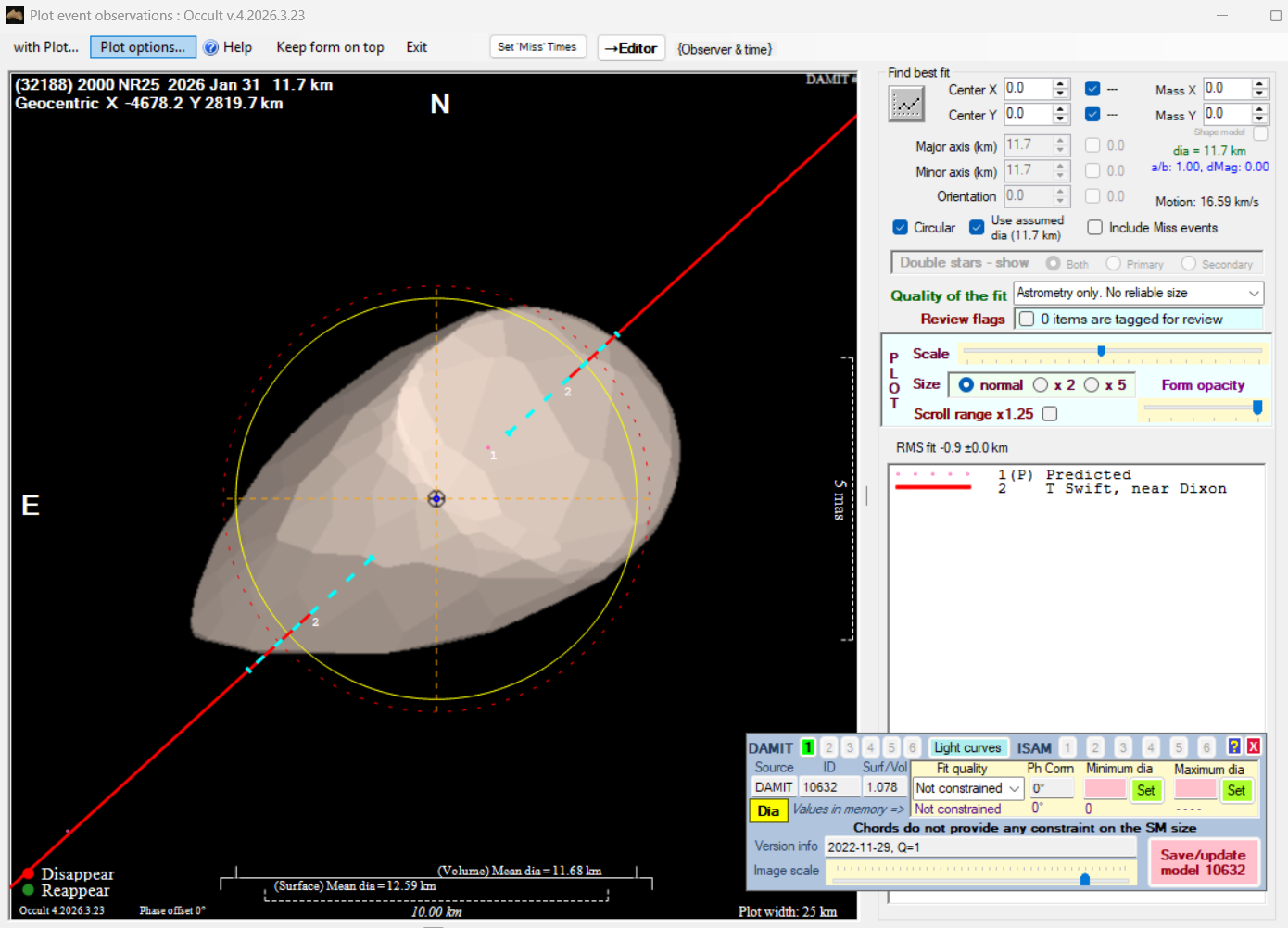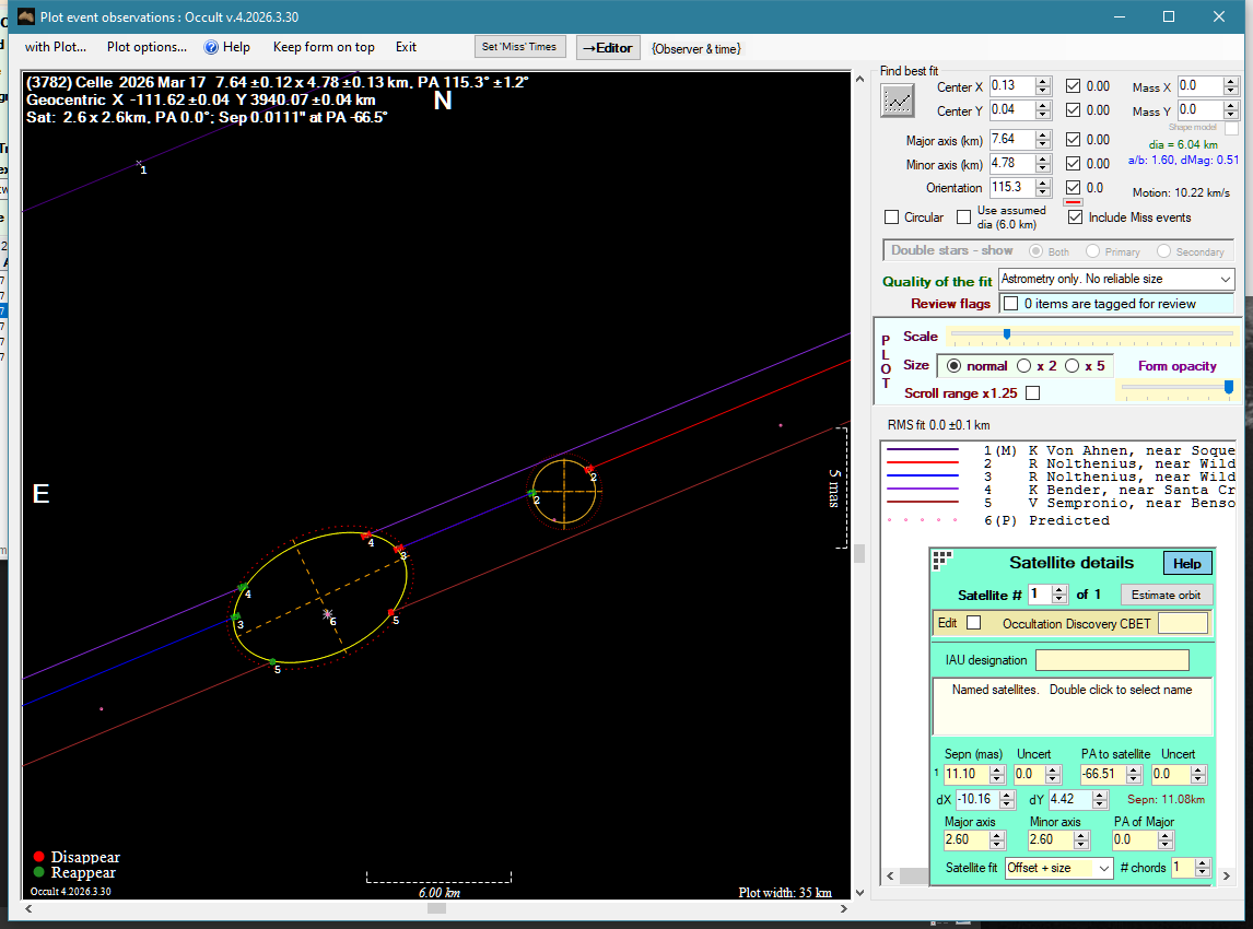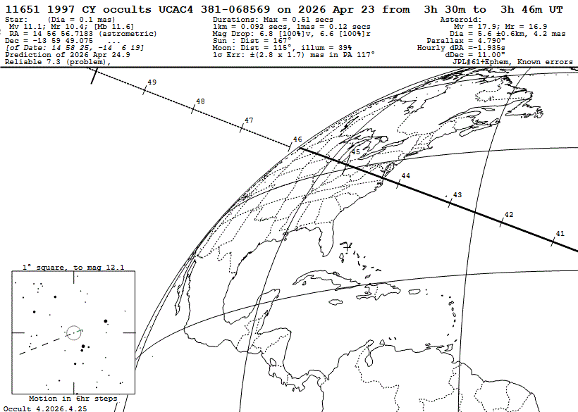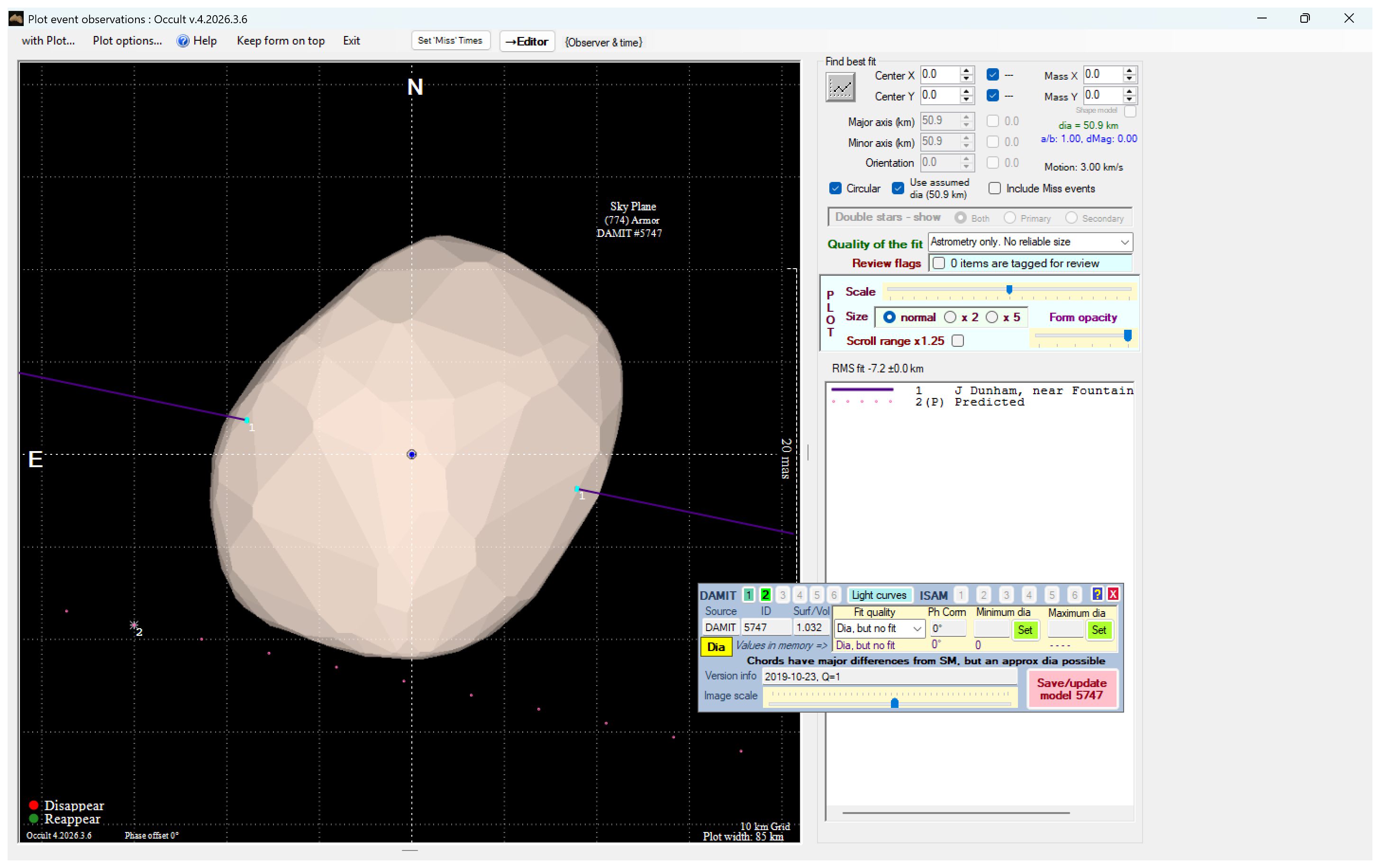 Asteroid profiles only show the line of sight view at the time of the occultation.