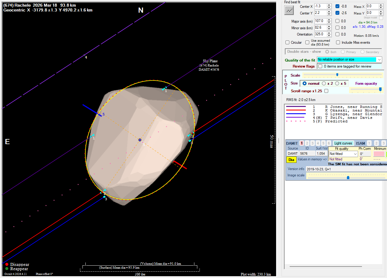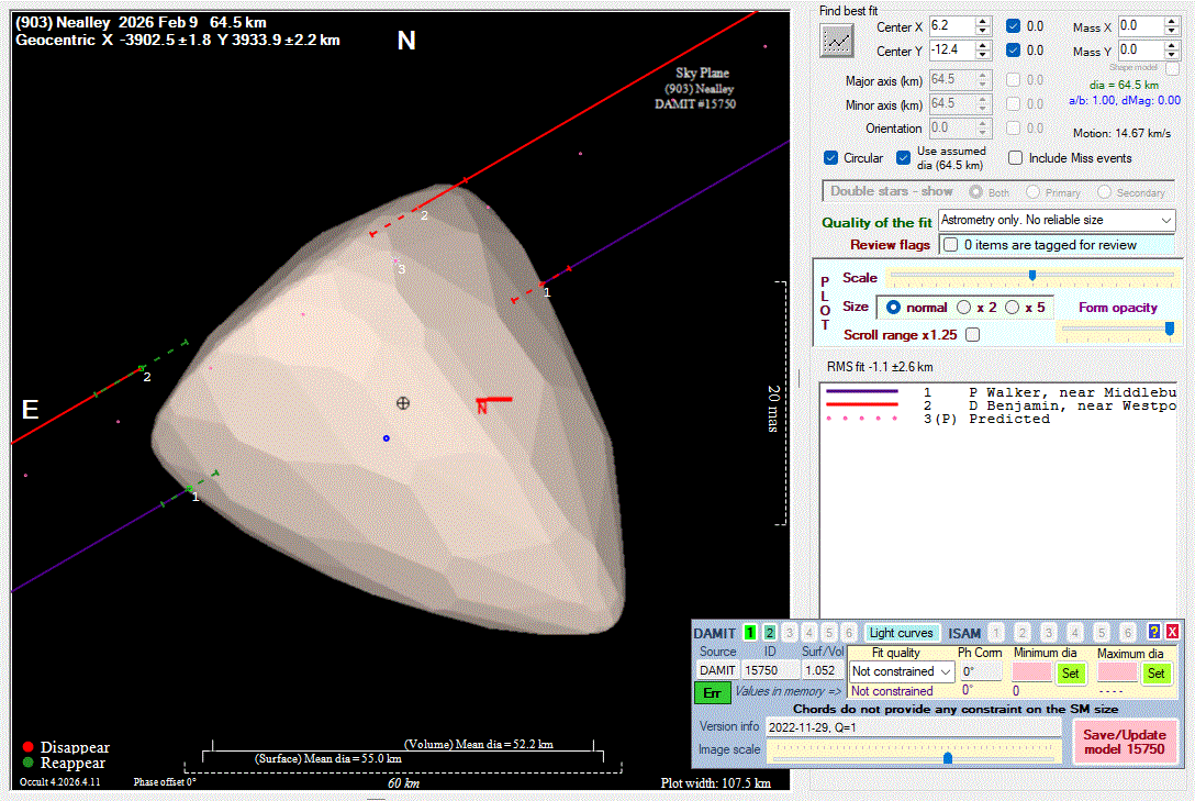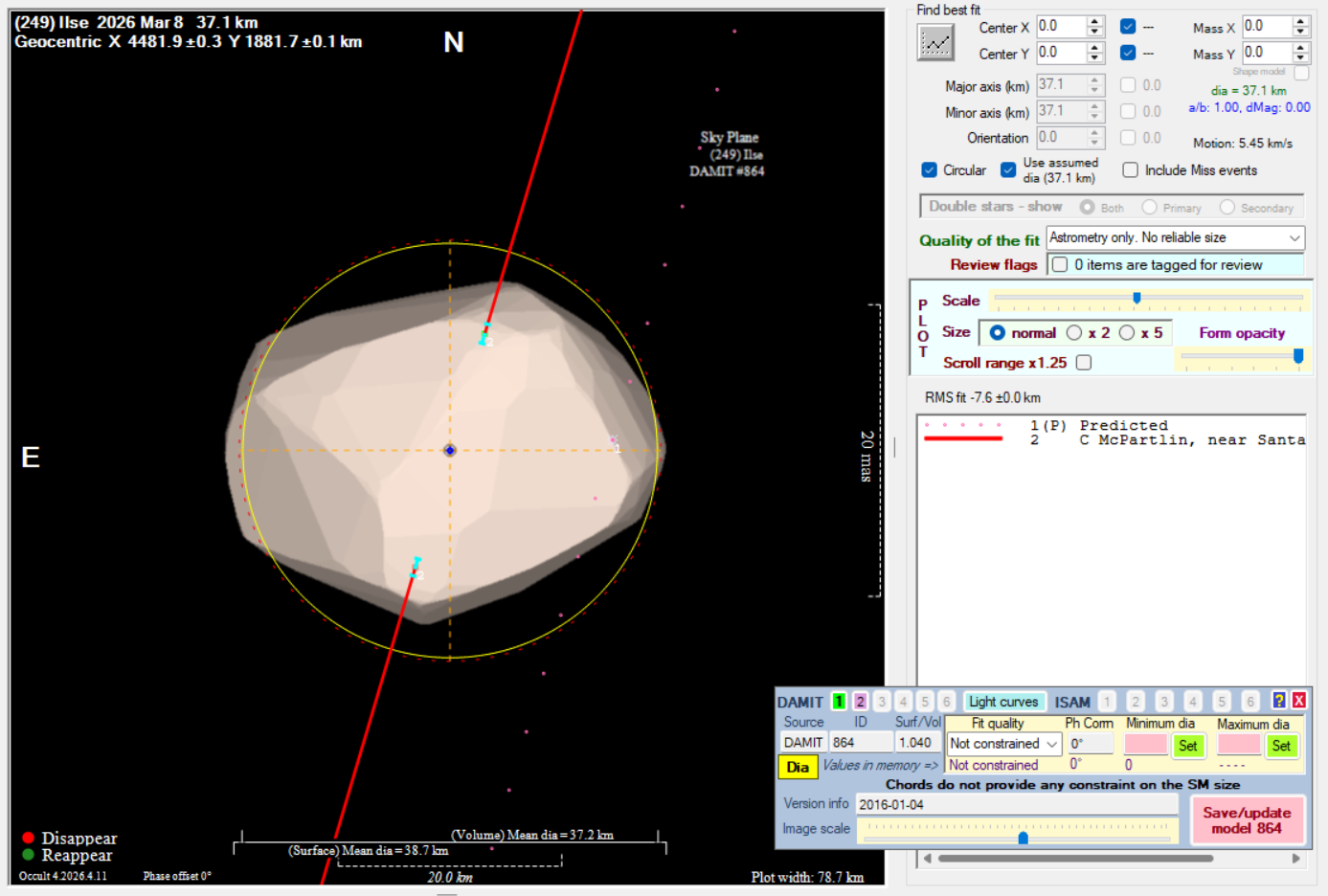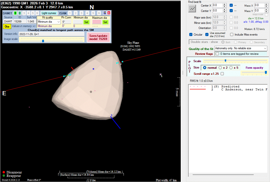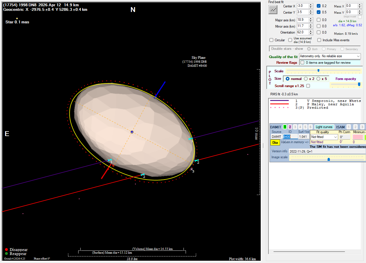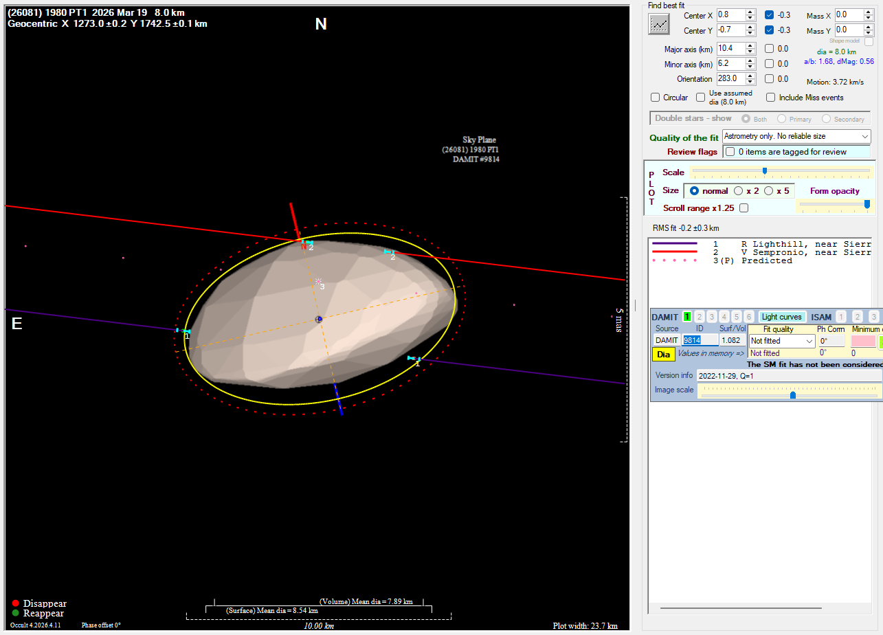 The true size/shape of an asteroid in 3-dimensions cannot be determined from a single occultation.