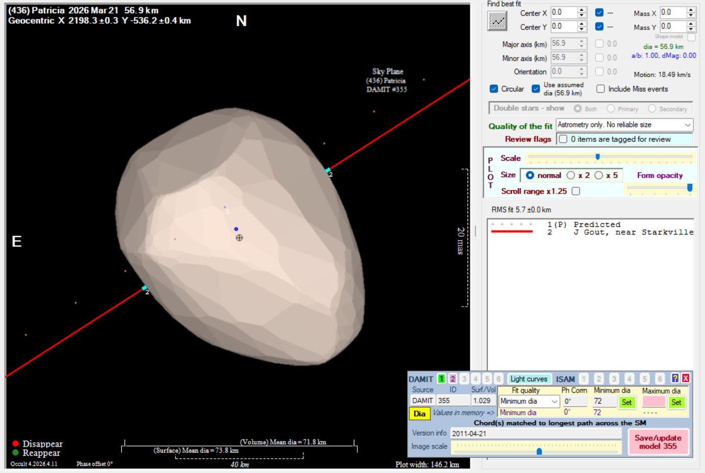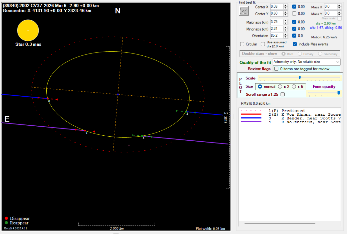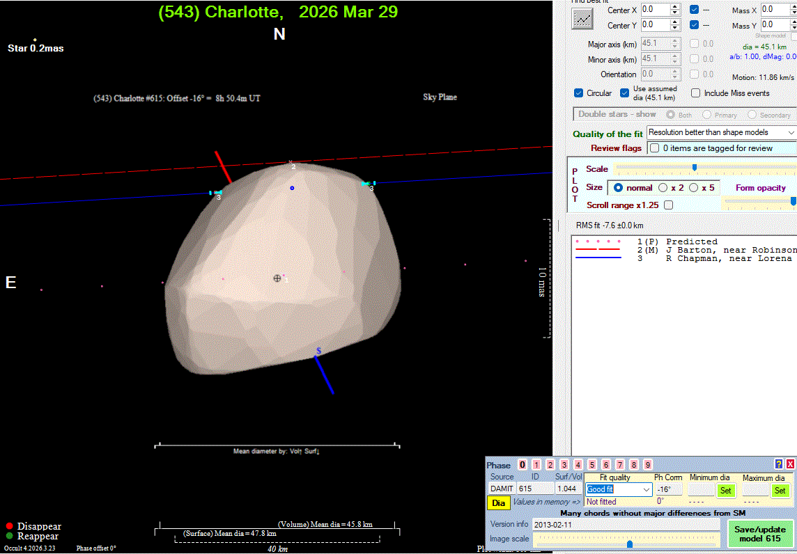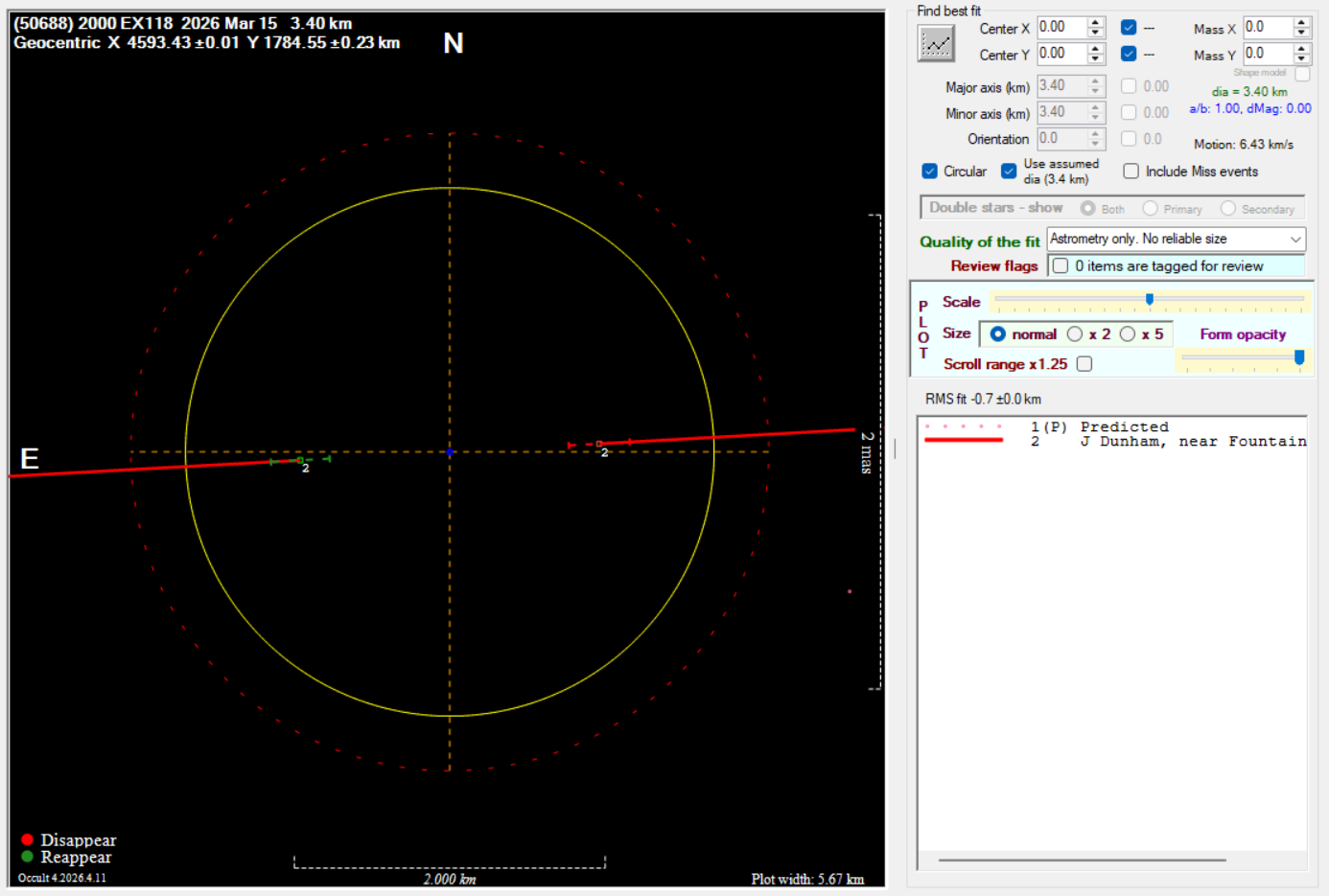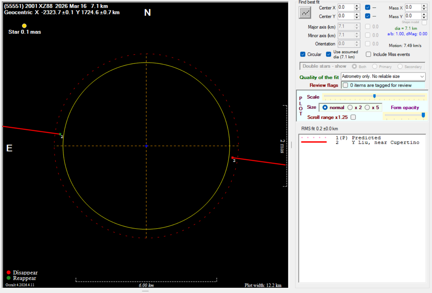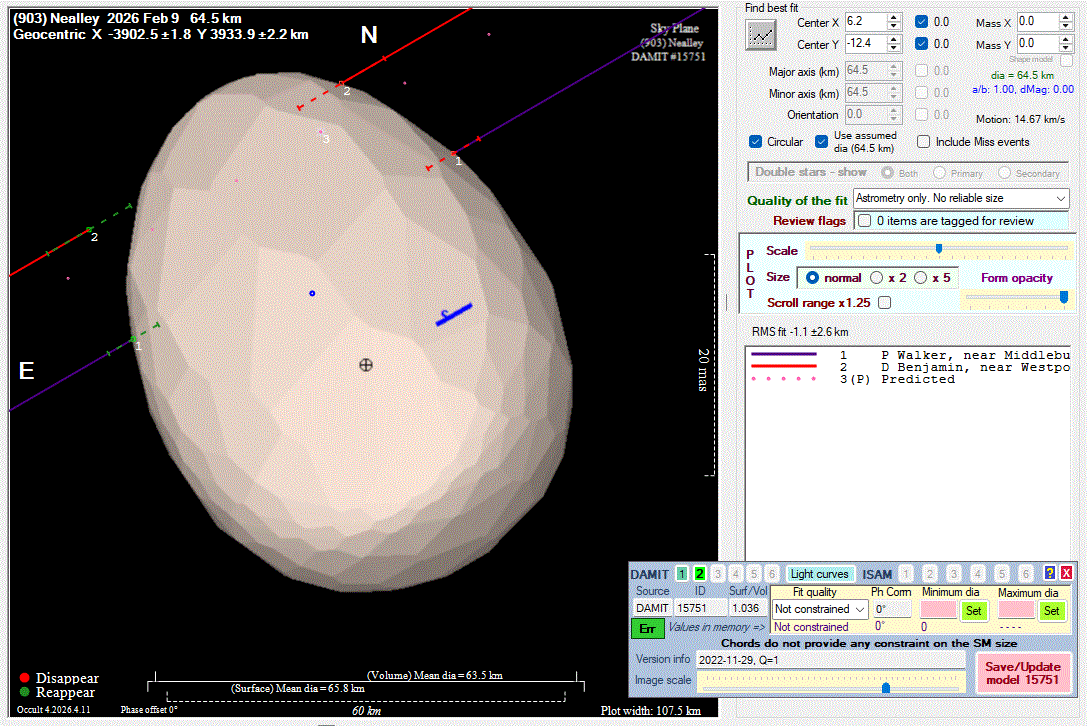 The true size/shape of an asteroid in 3-dimensions cannot be determined from a single occultation.