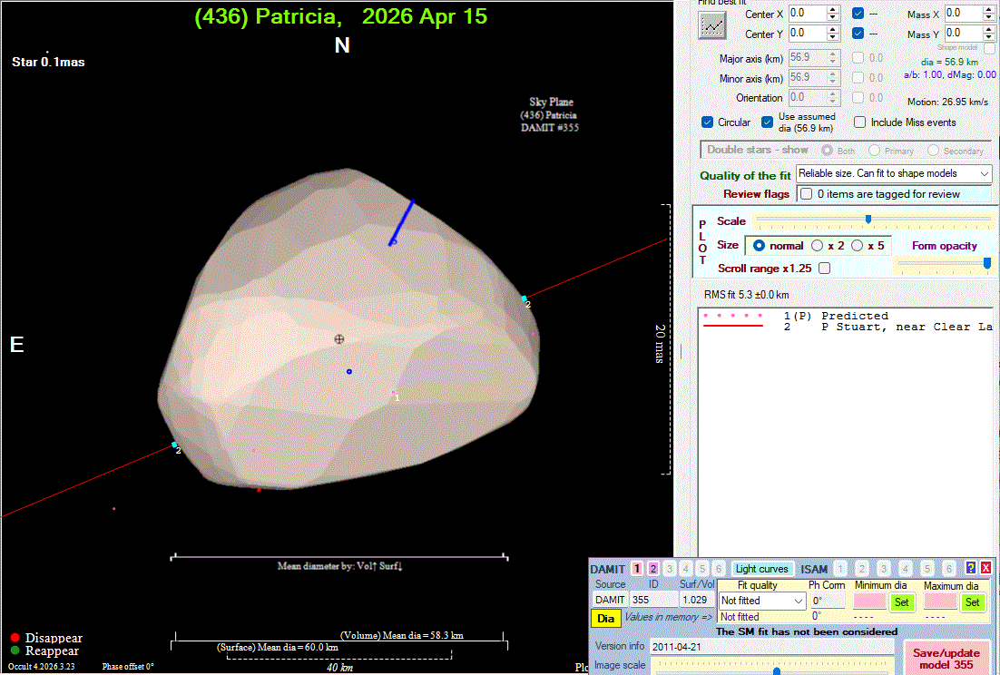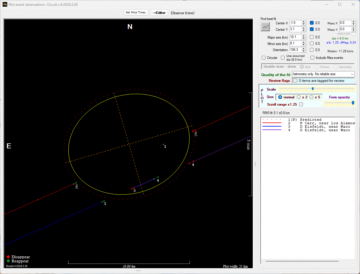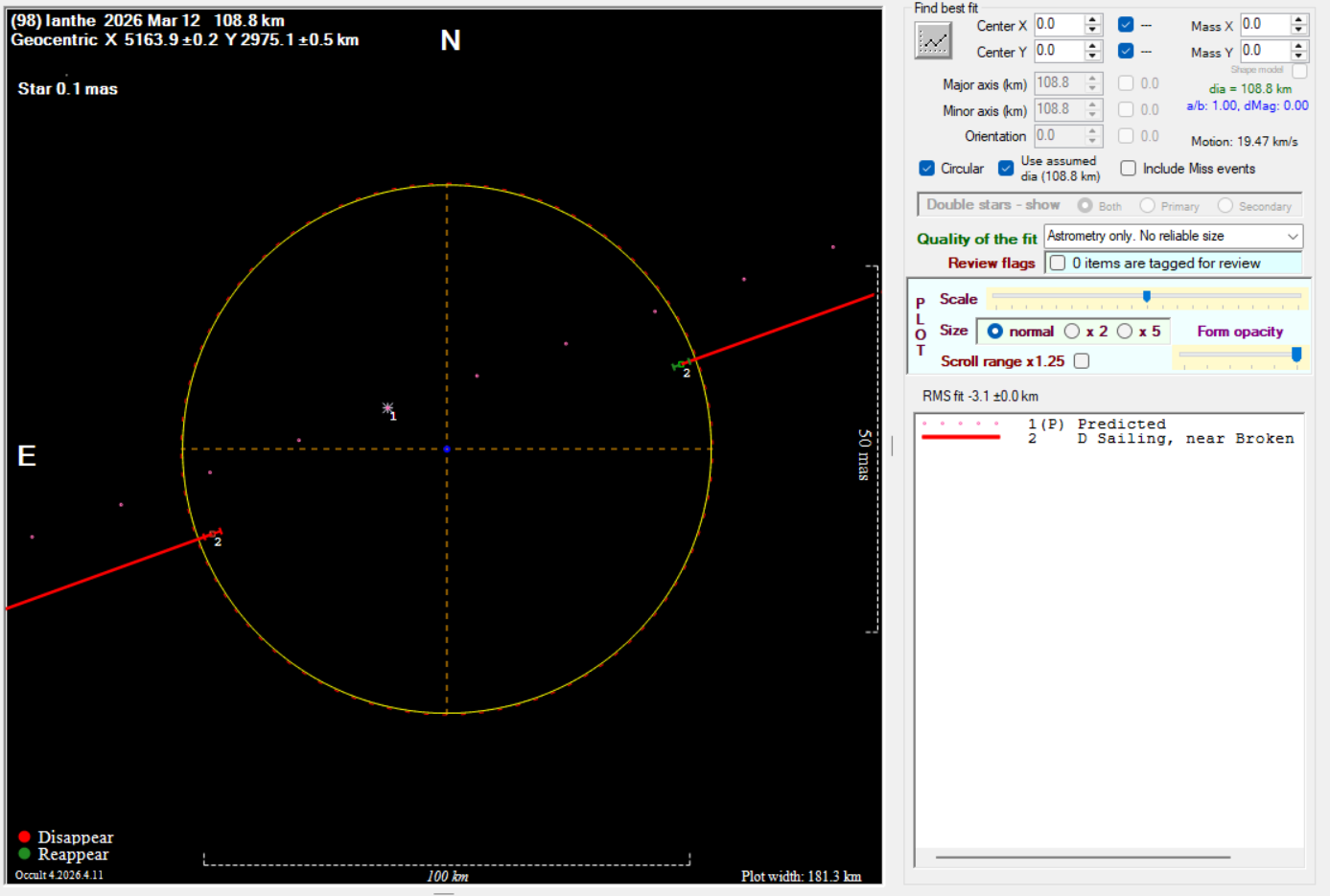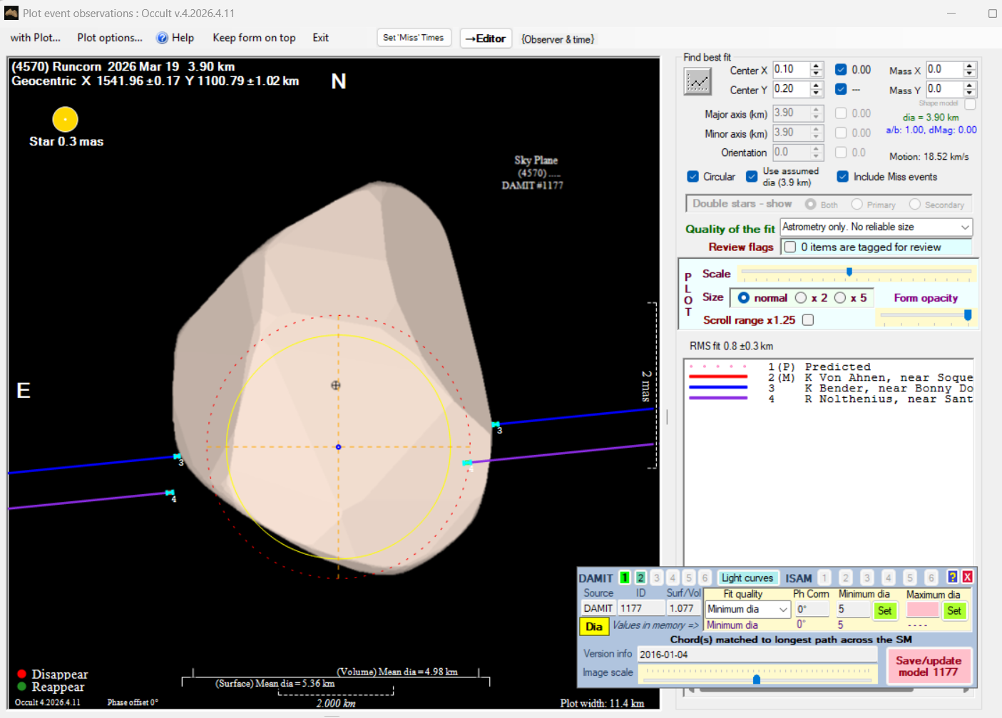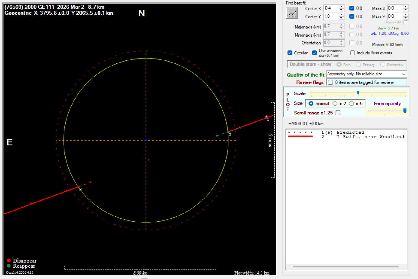 The true size/shape of an asteroid in 3-dimensions cannot be determined from a single occultation.