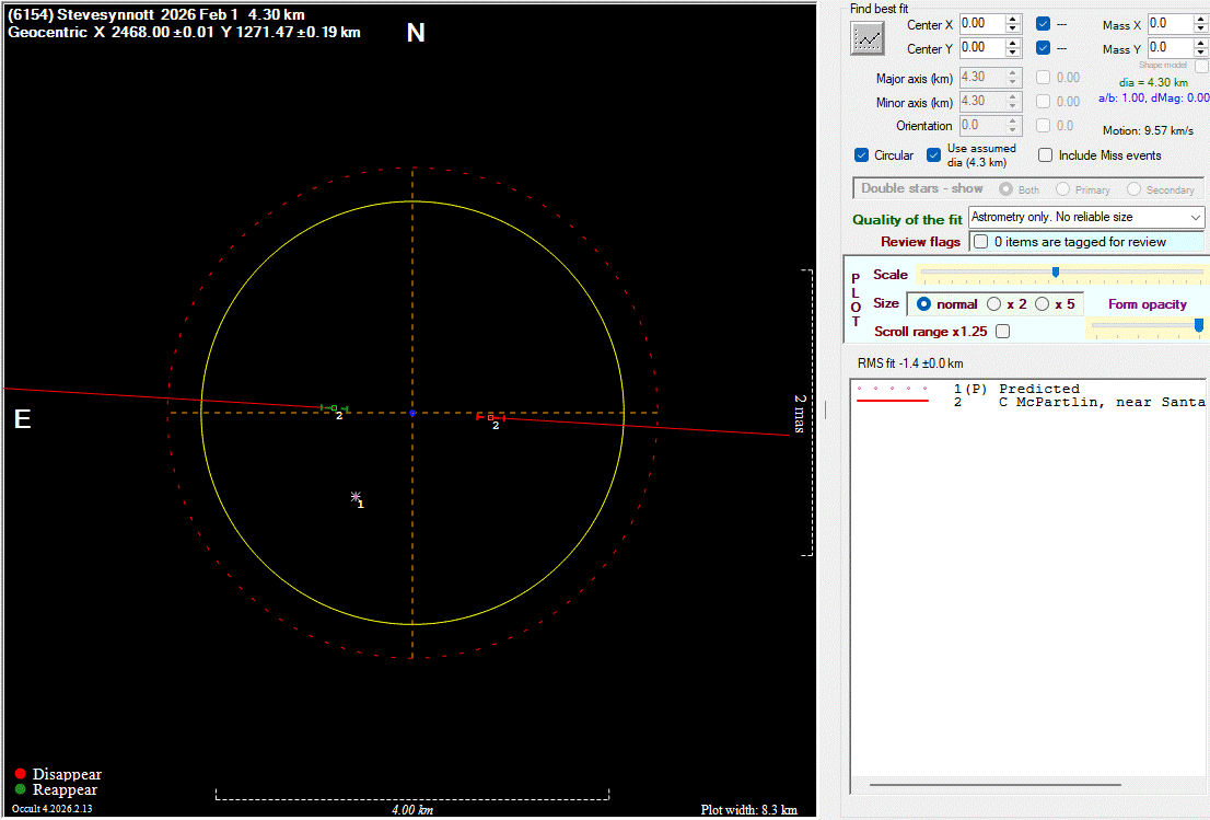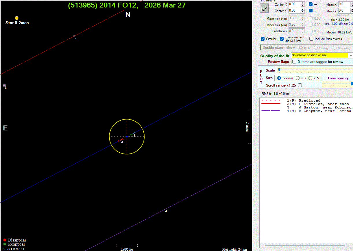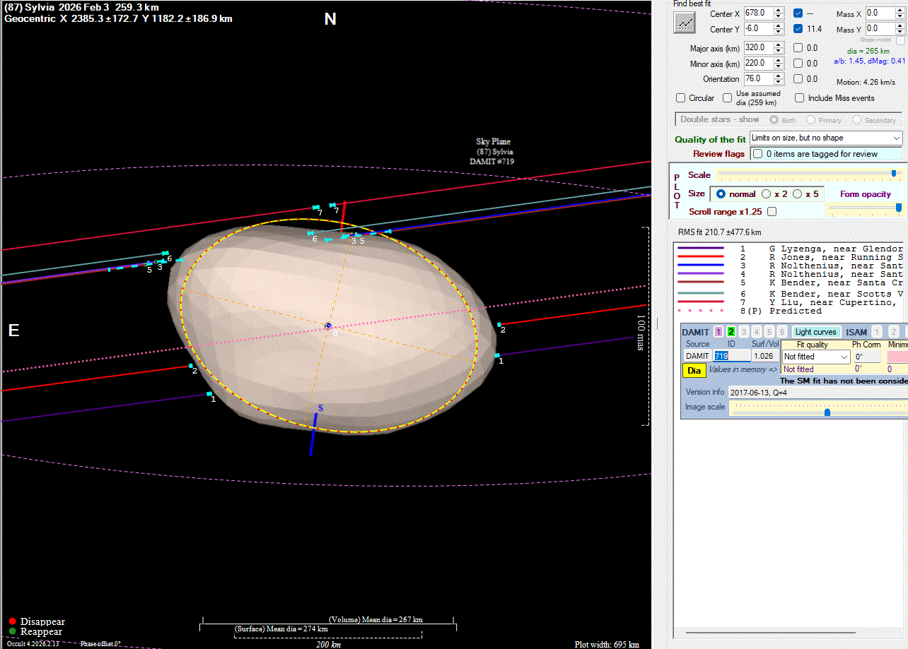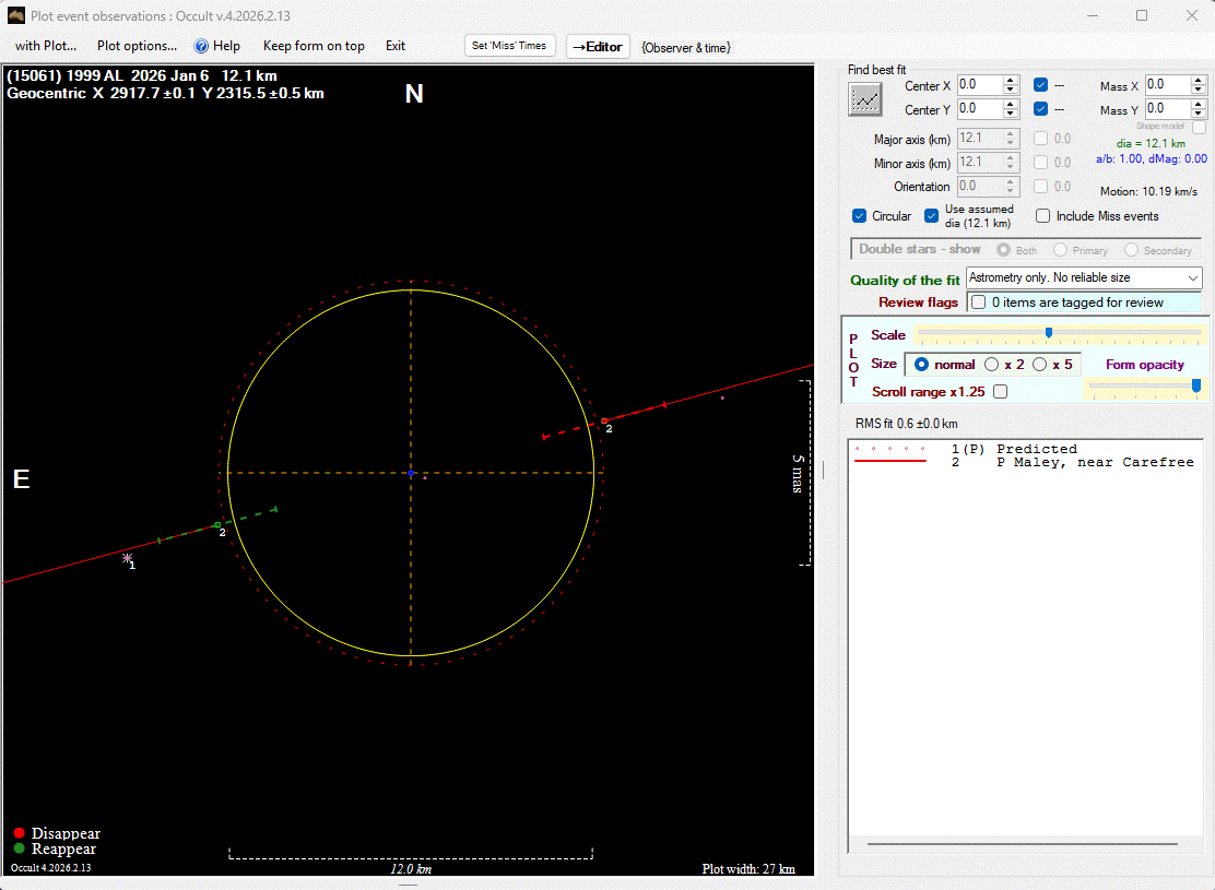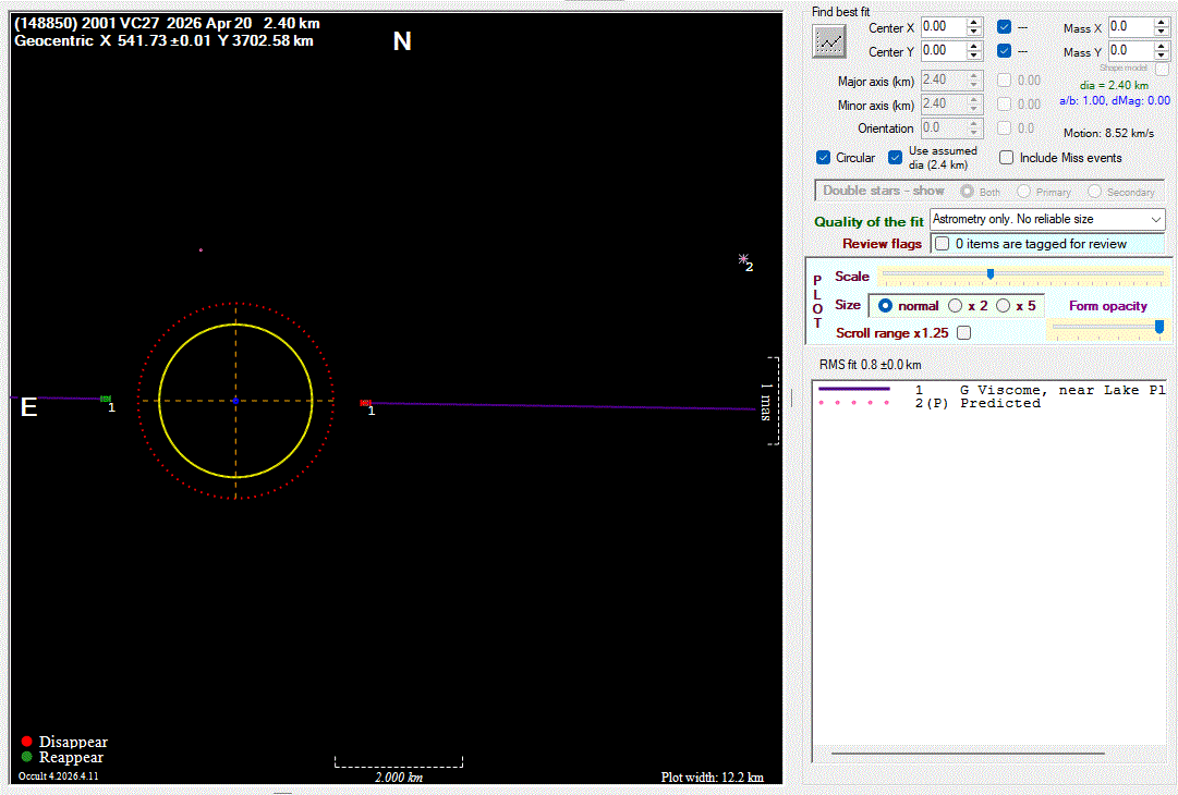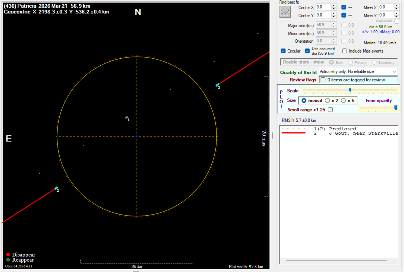 The true size/shape of an asteroid in 3-dimensions cannot be determined from a single occultation.