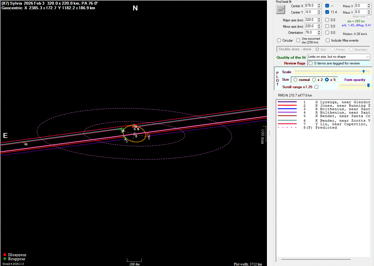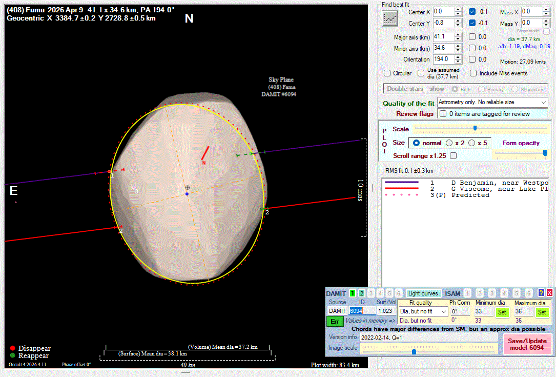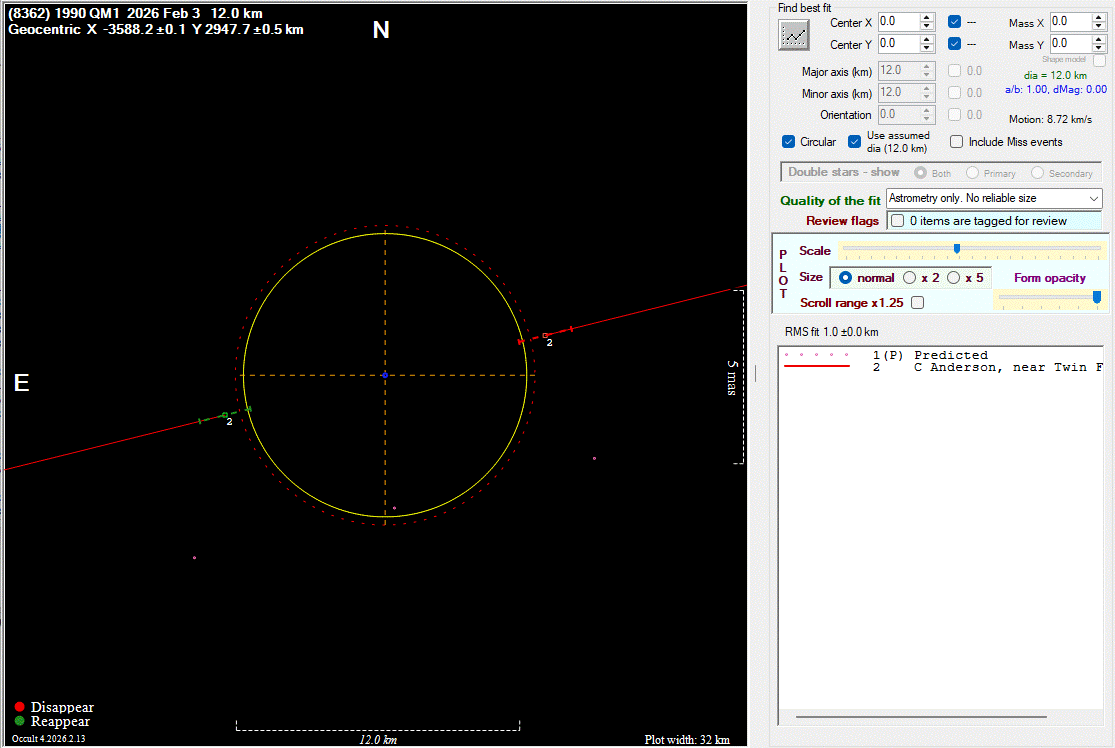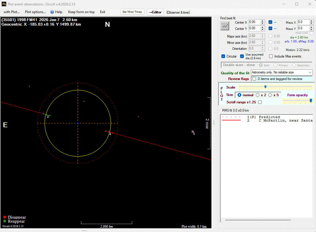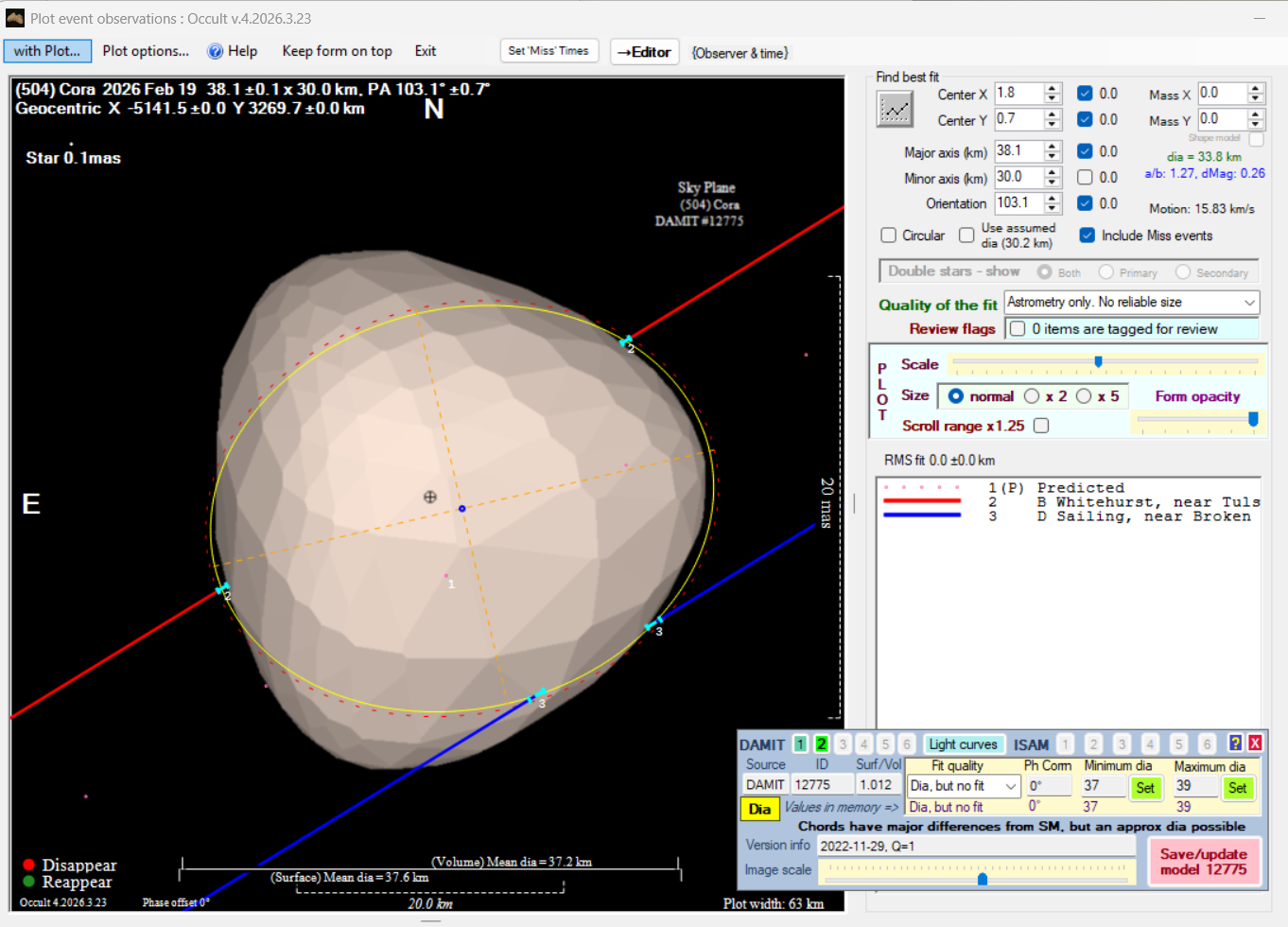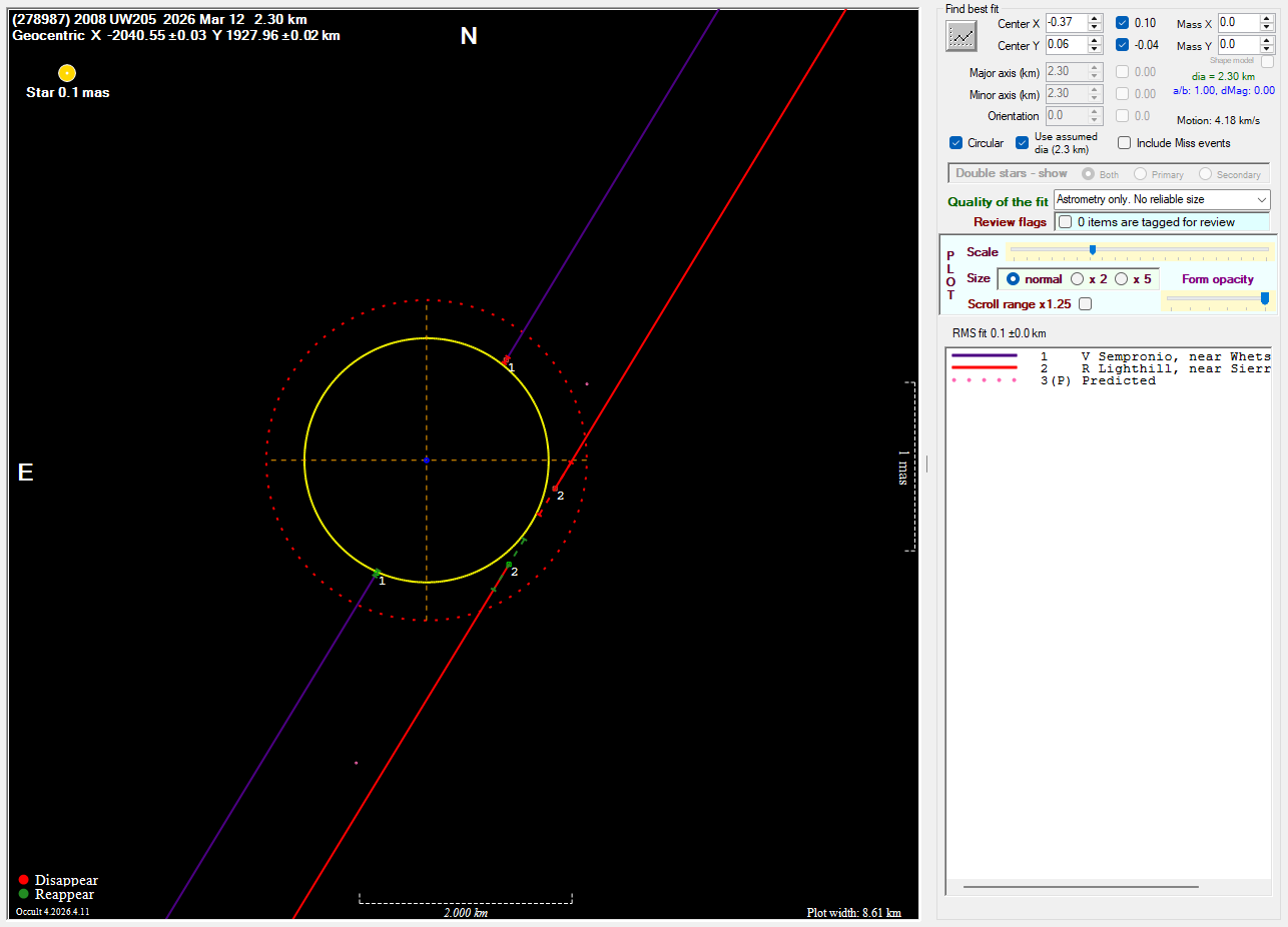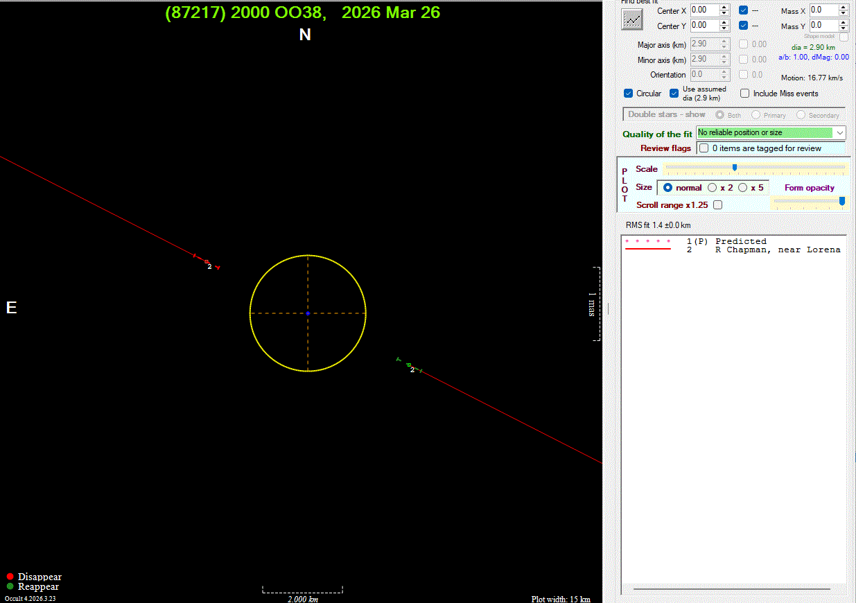 The true size/shape of an asteroid in 3-dimensions cannot be determined from a single occultation.