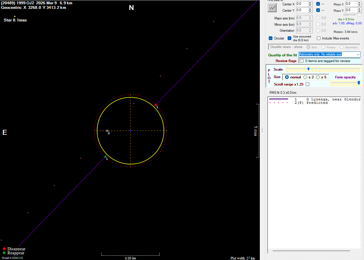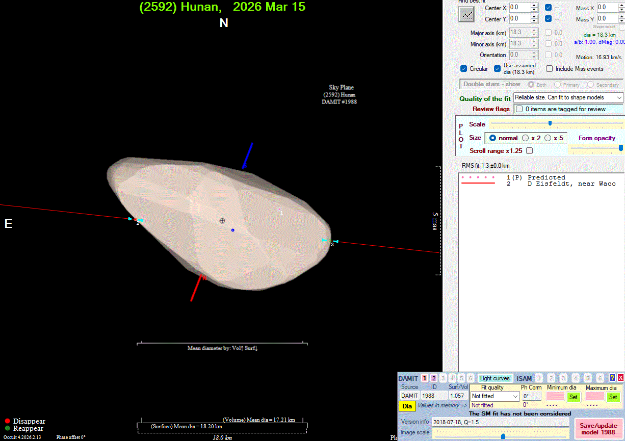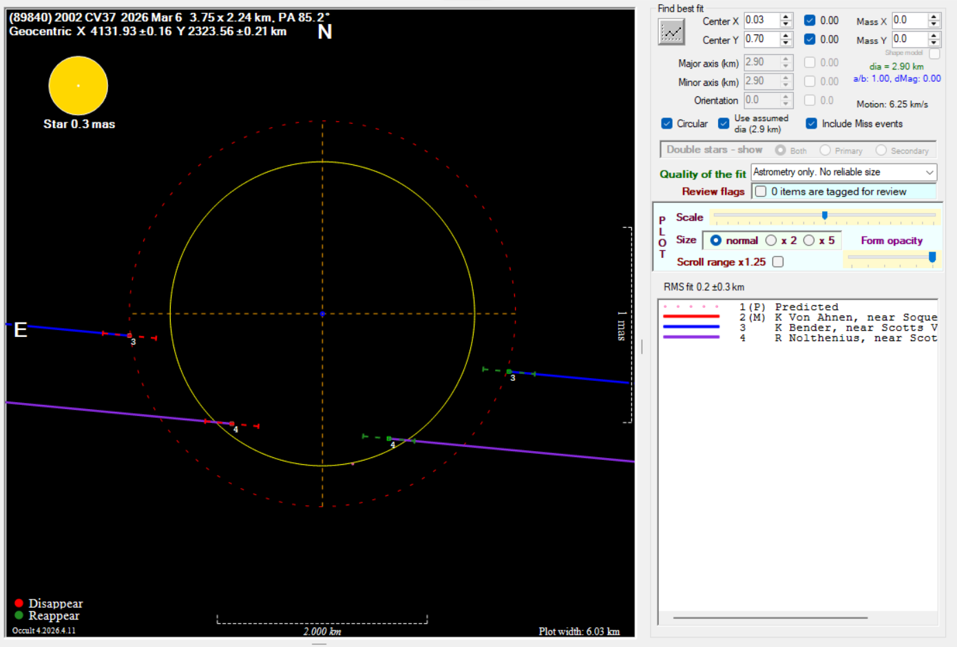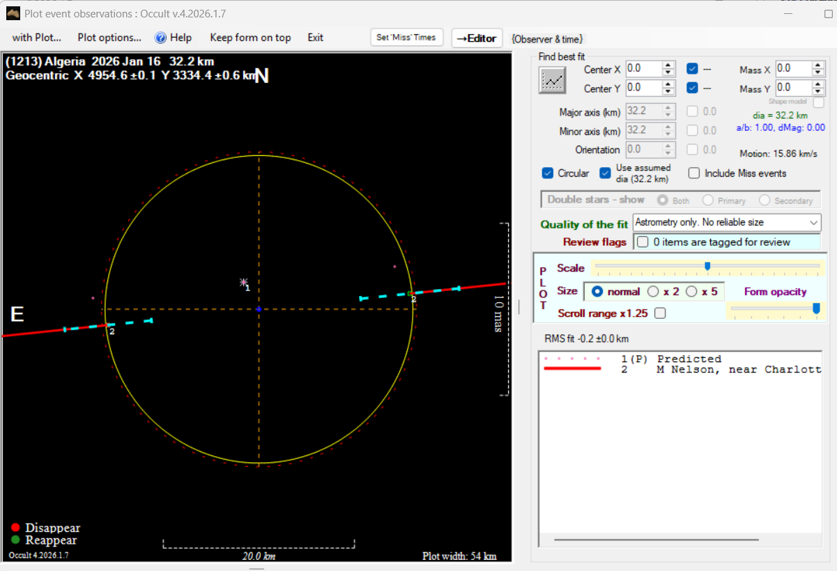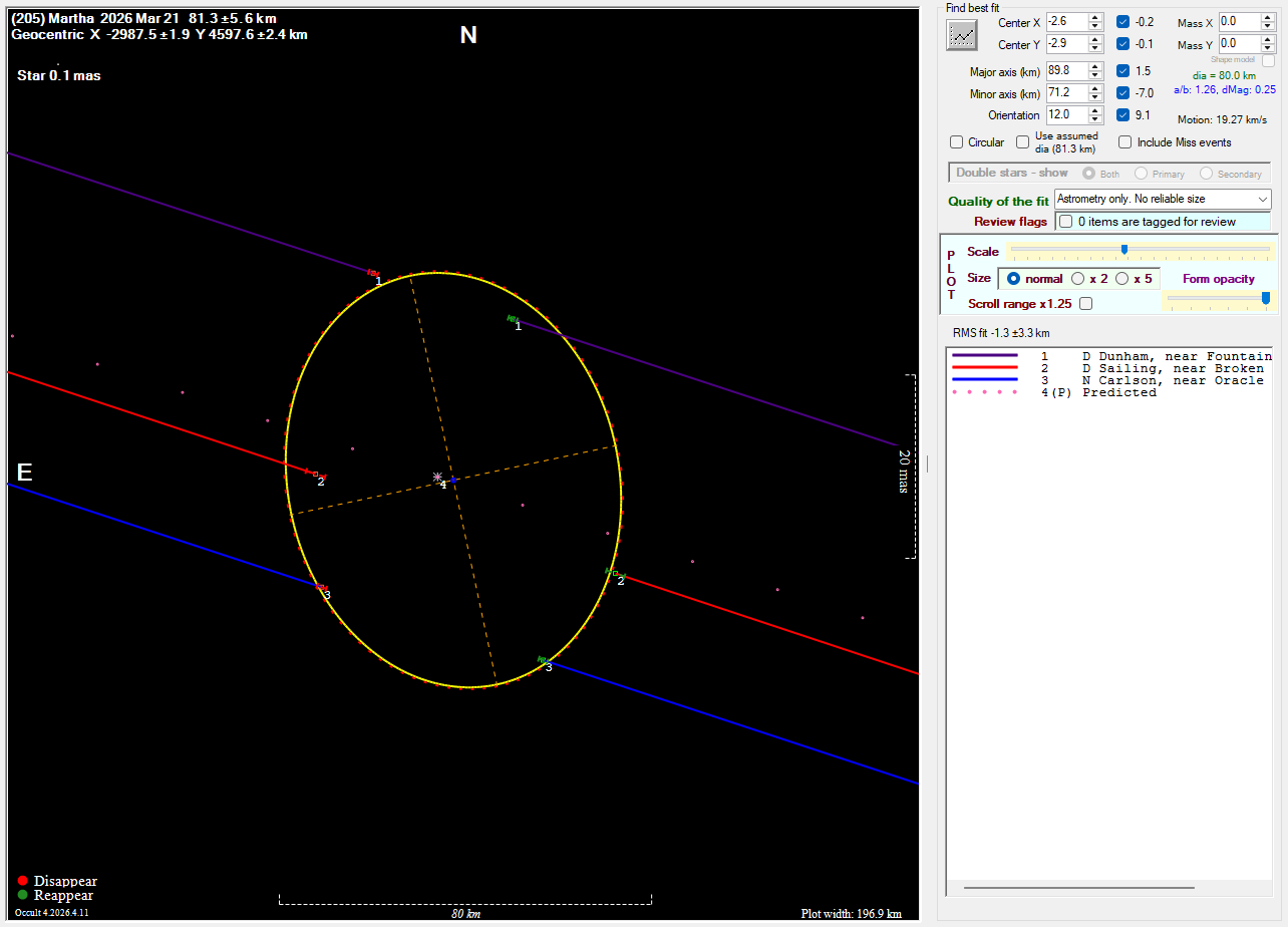 The true size/shape of an asteroid in 3-dimensions cannot be determined from a single occultation.