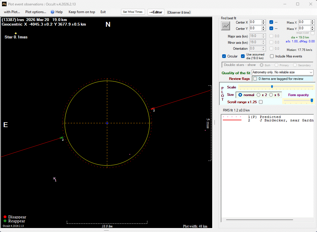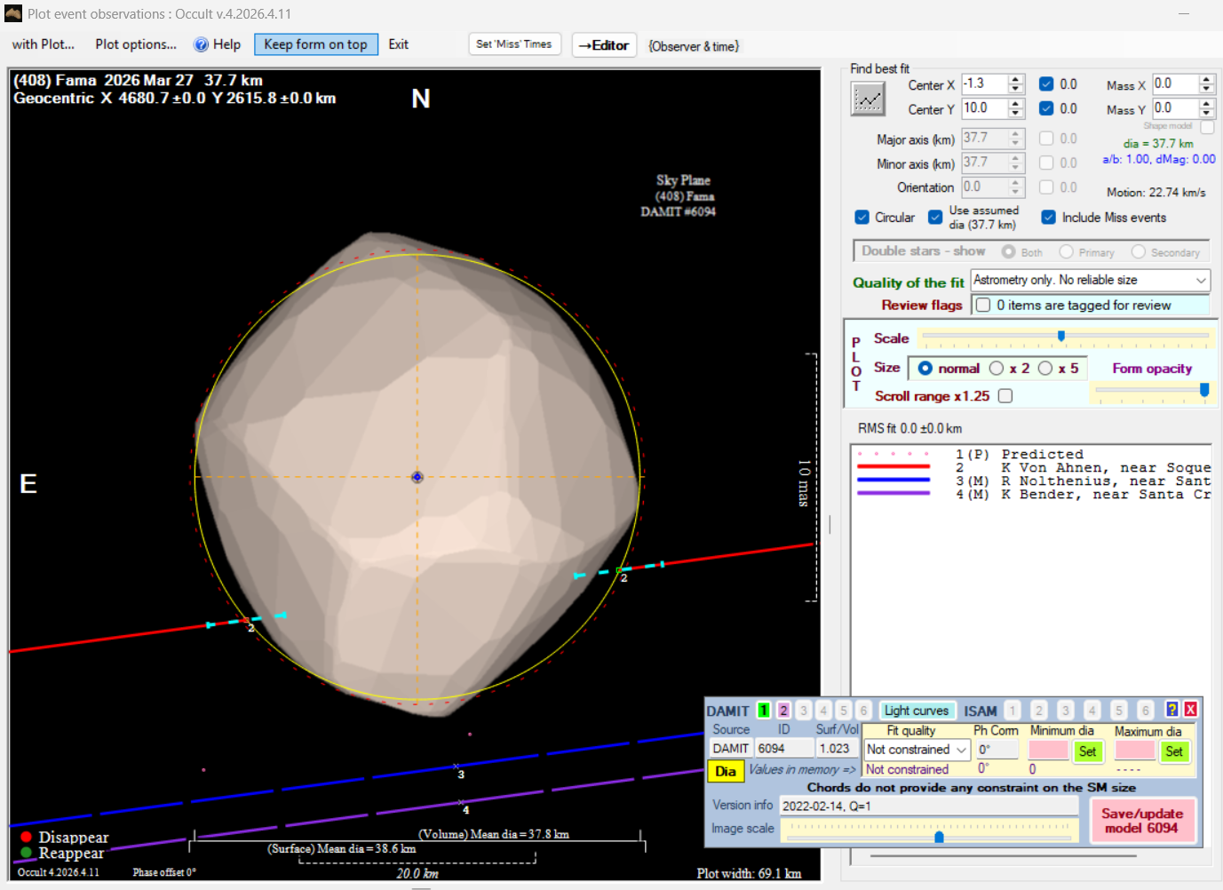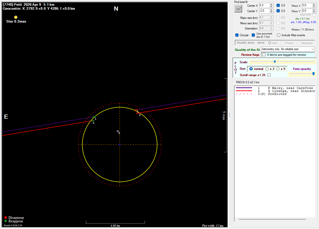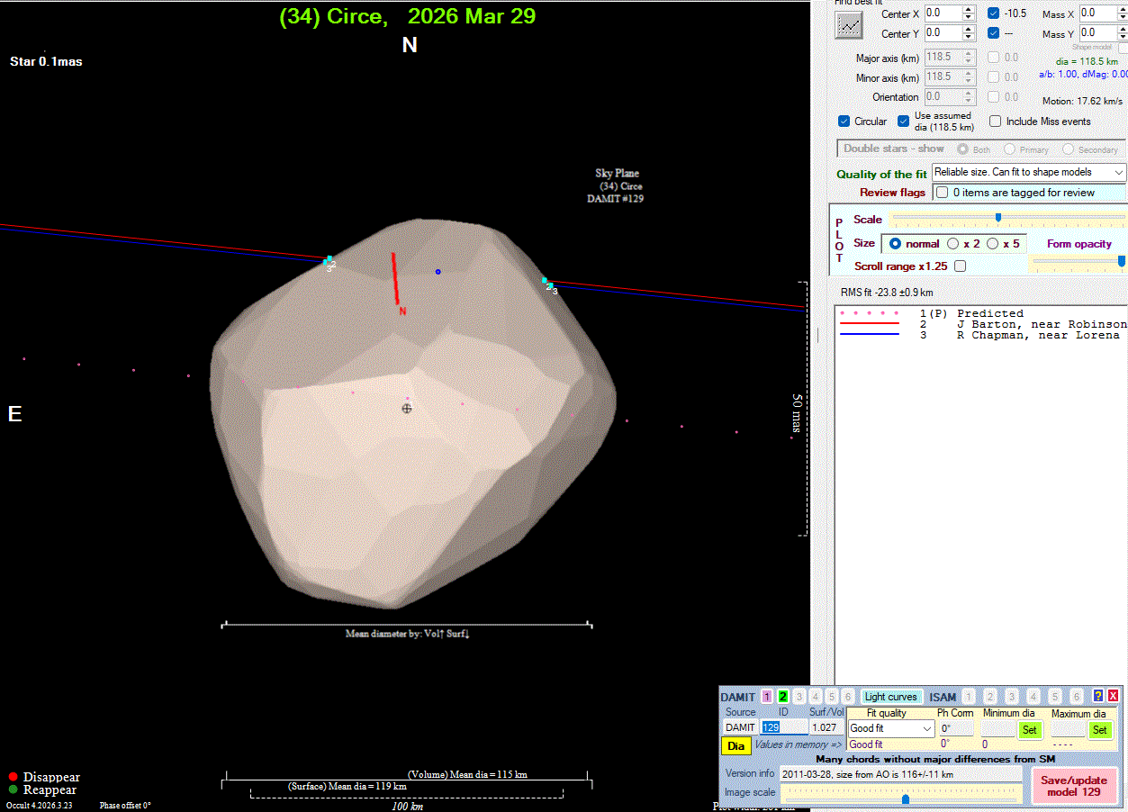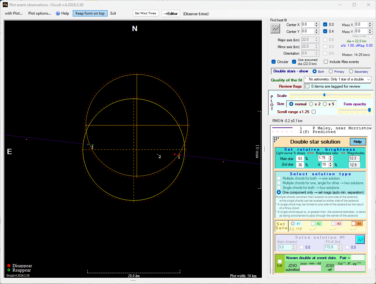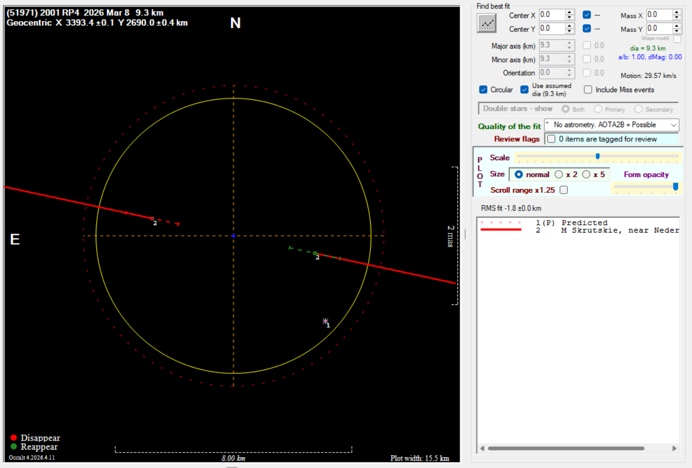 The true size/shape of an asteroid in 3-dimensions cannot be determined from a single occultation.