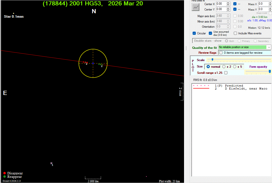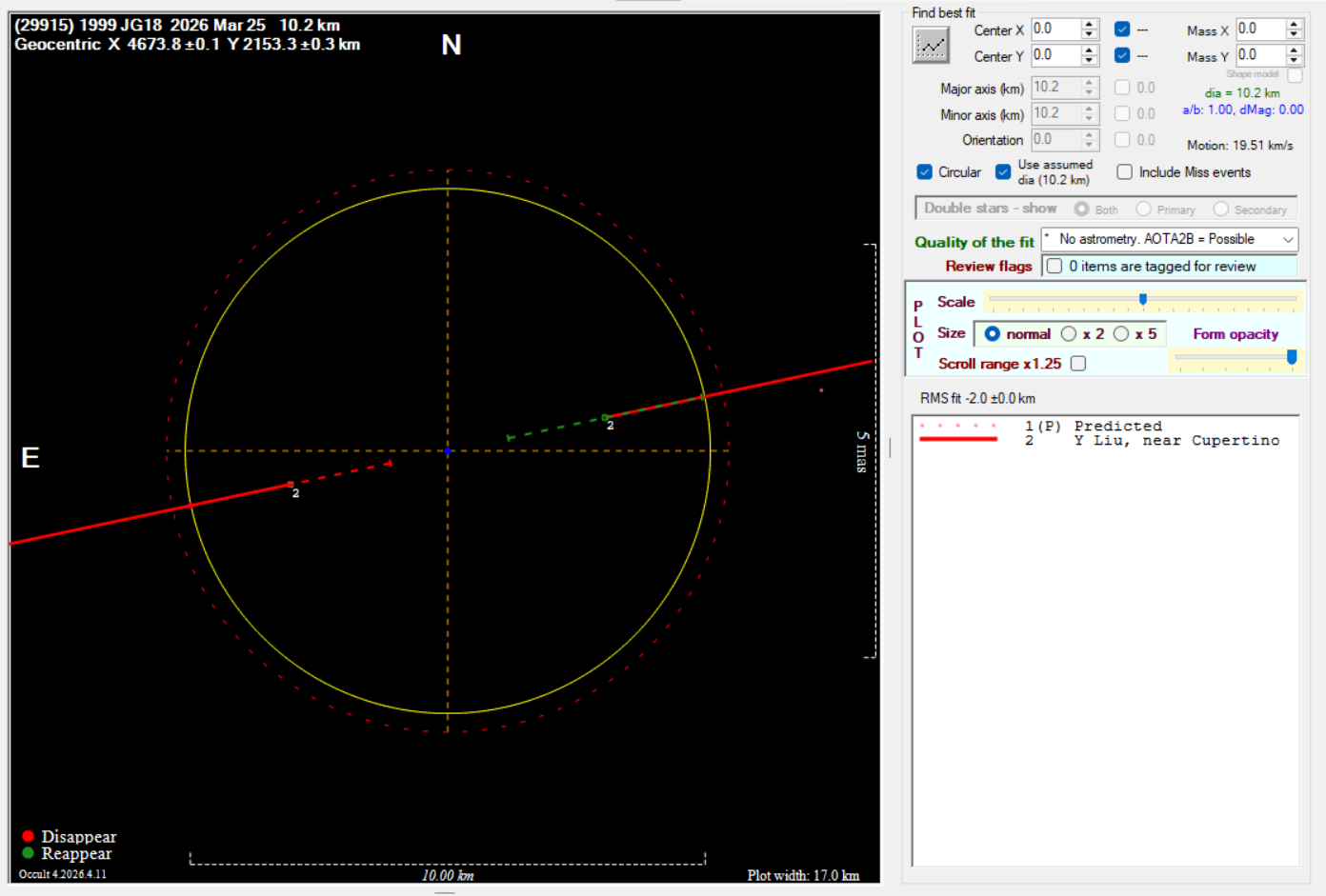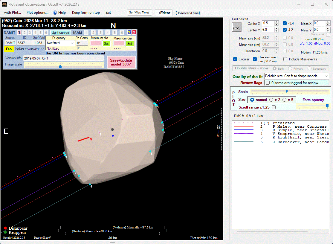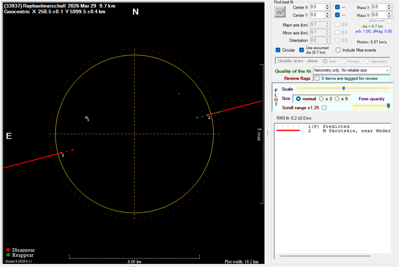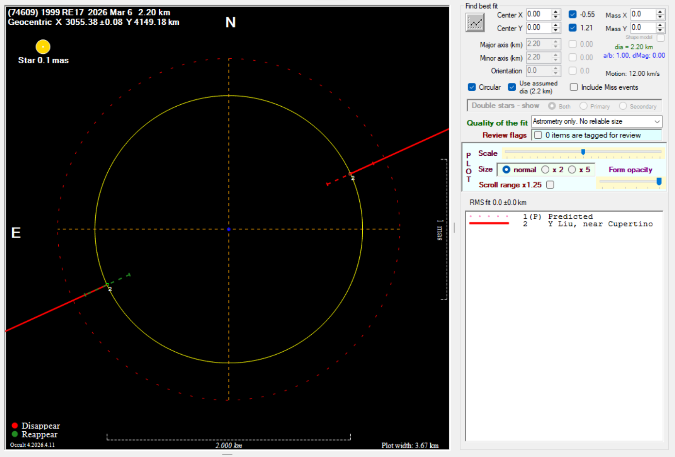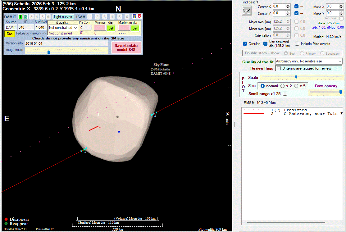 The true size/shape of an asteroid in 3-dimensions cannot be determined from a single occultation.