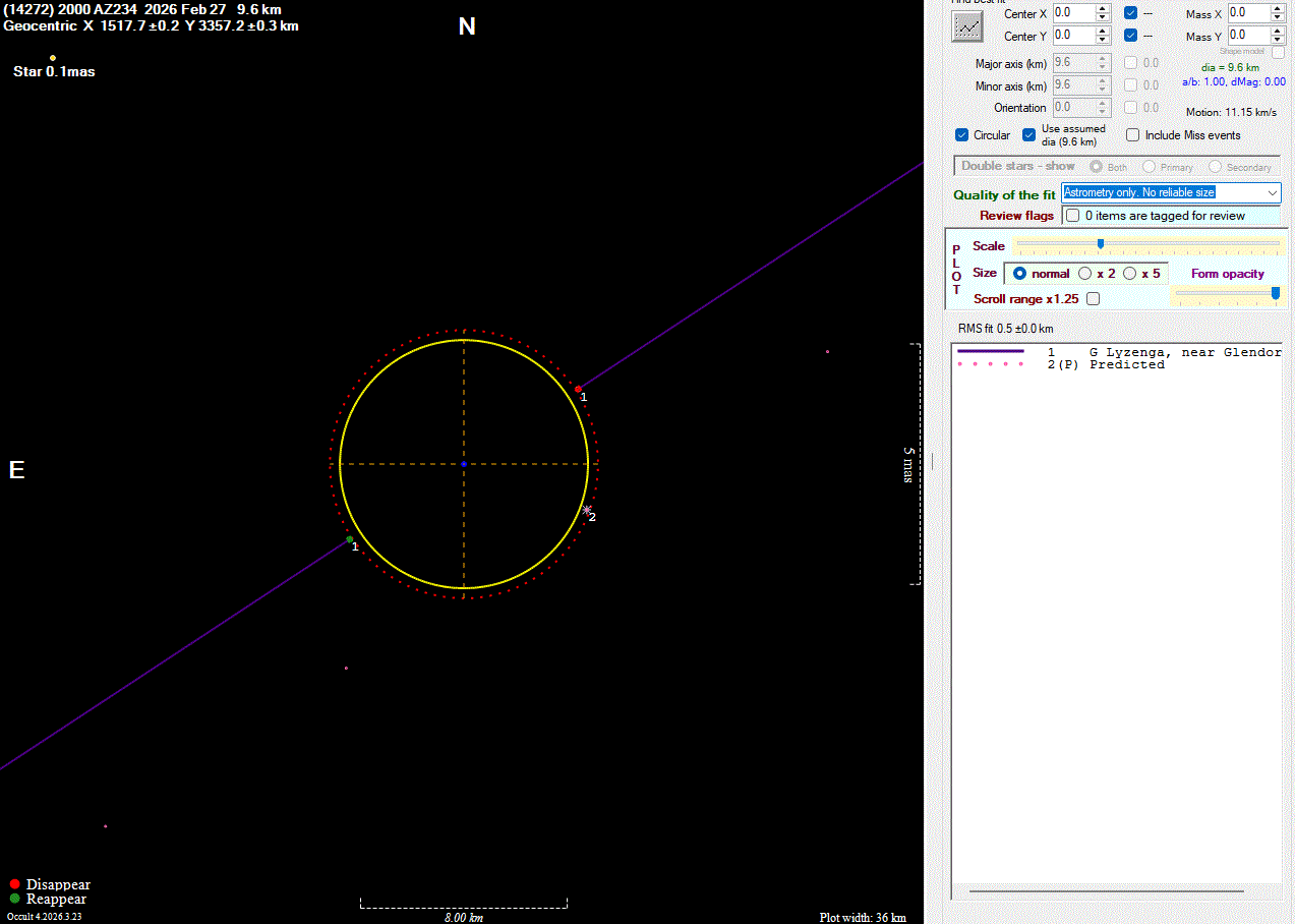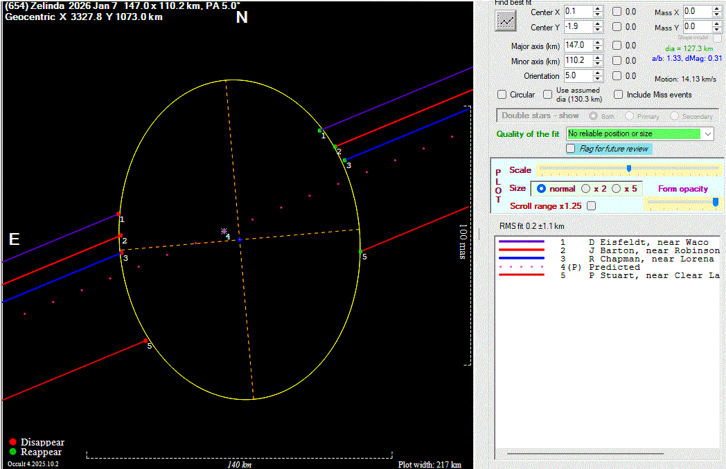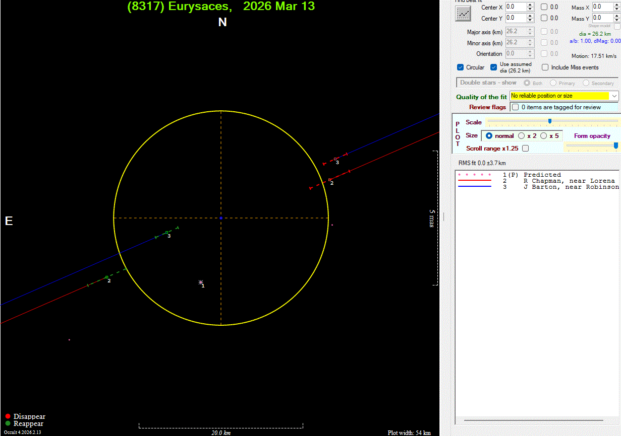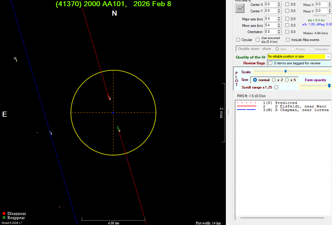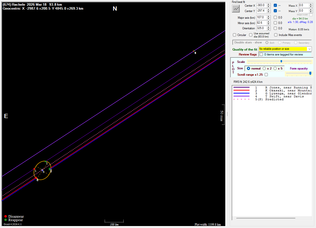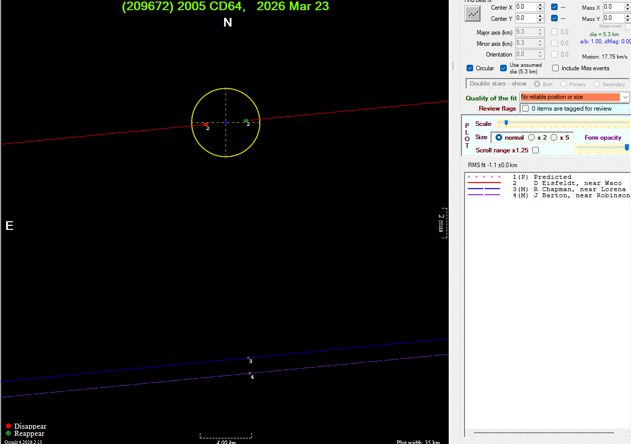 The true size/shape of an asteroid in 3-dimensions cannot be determined from a single occultation.