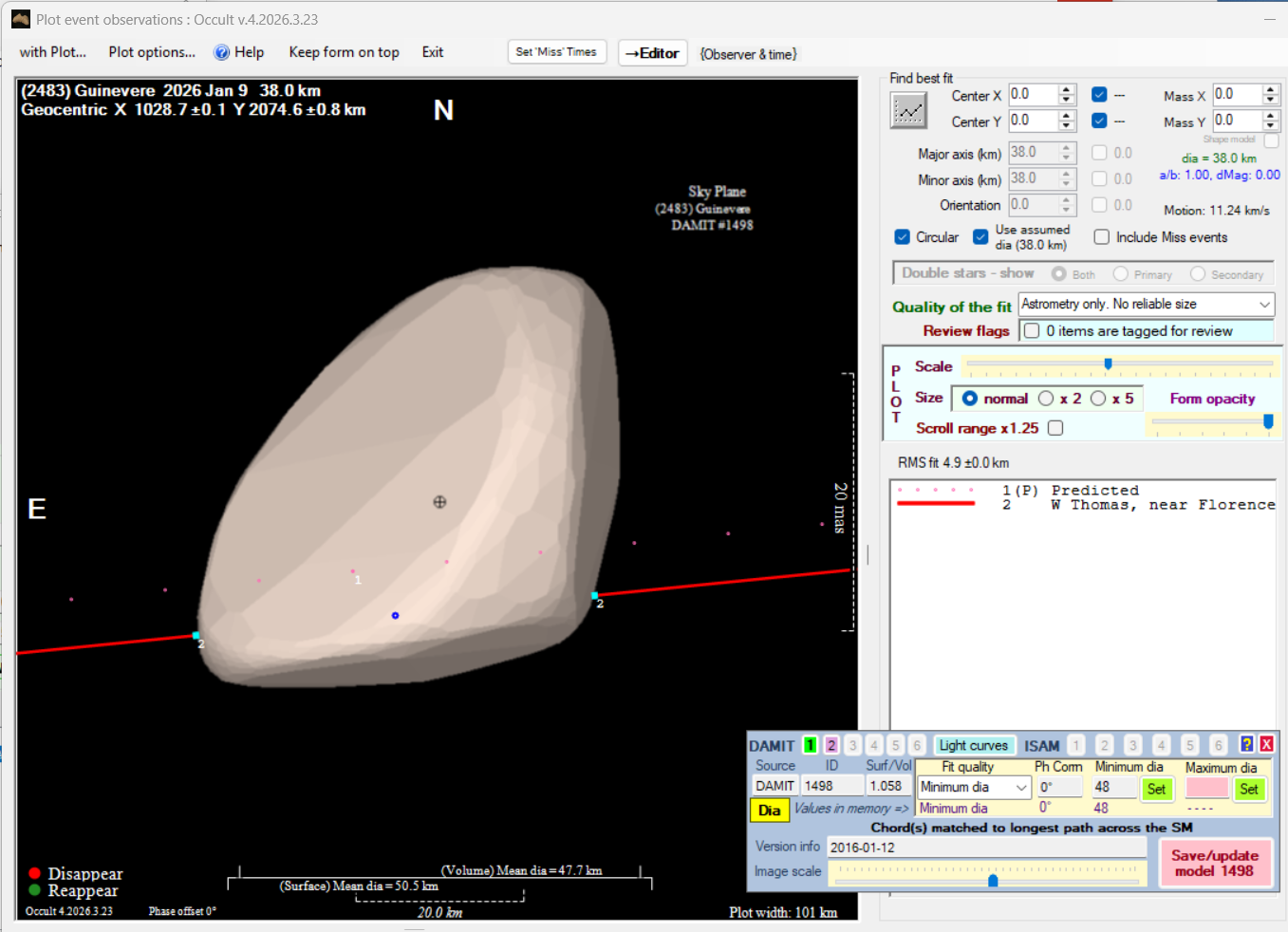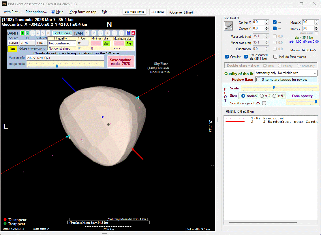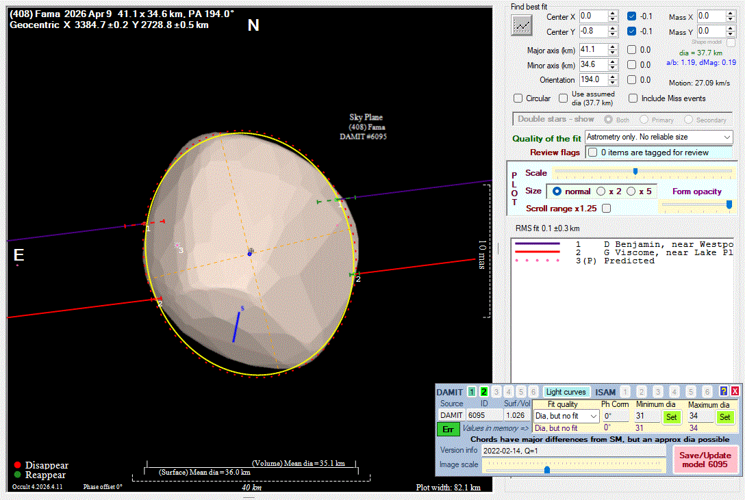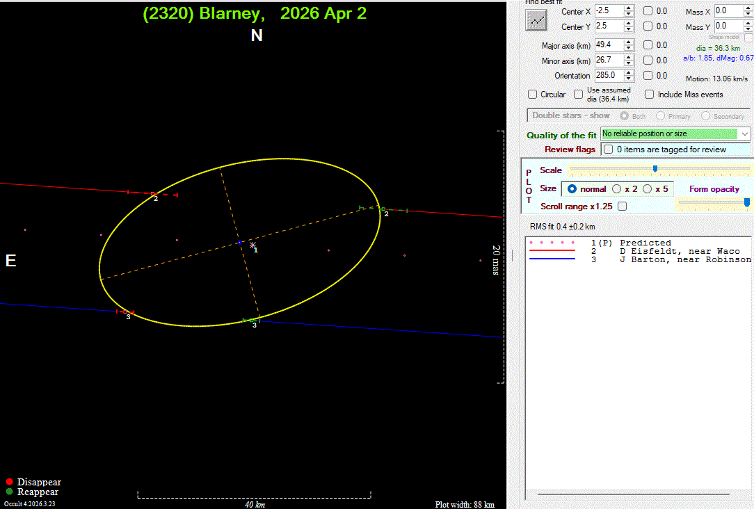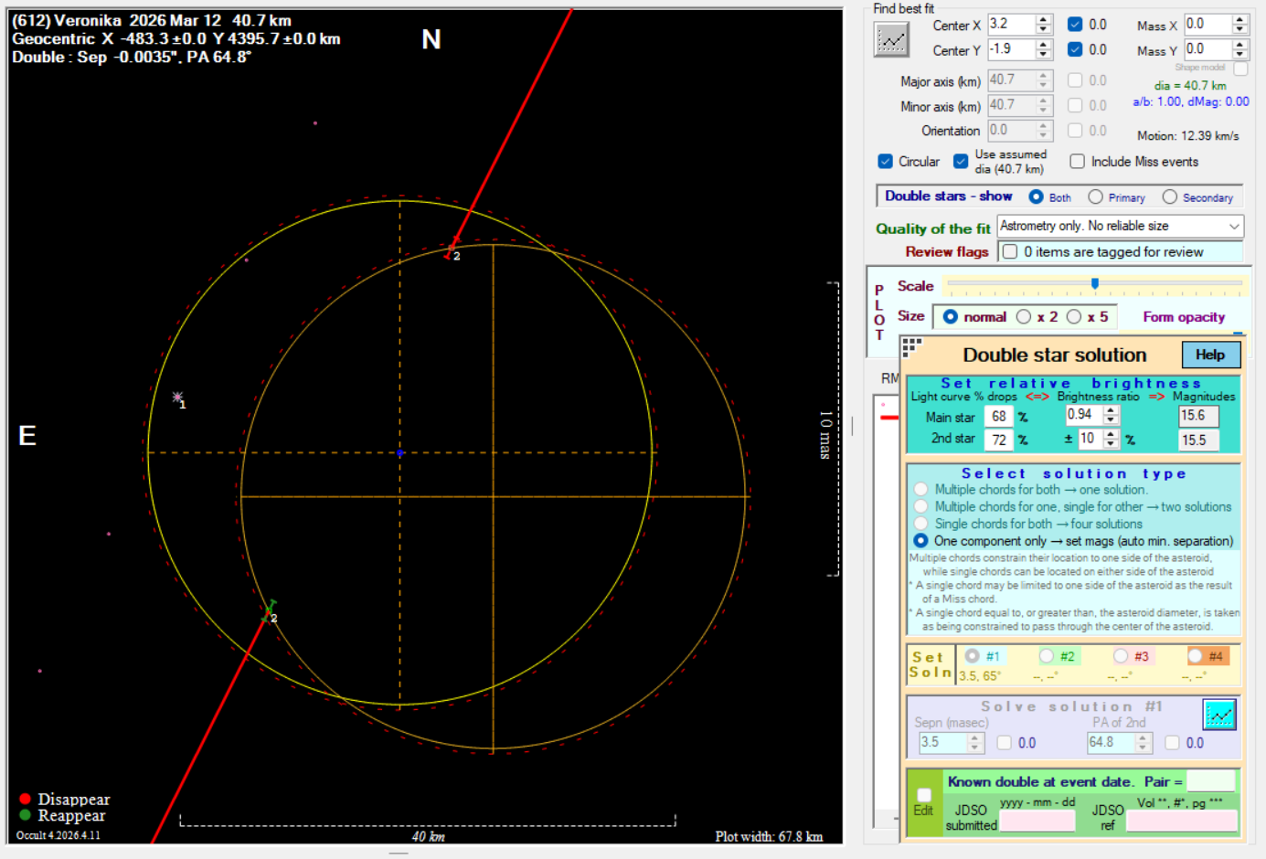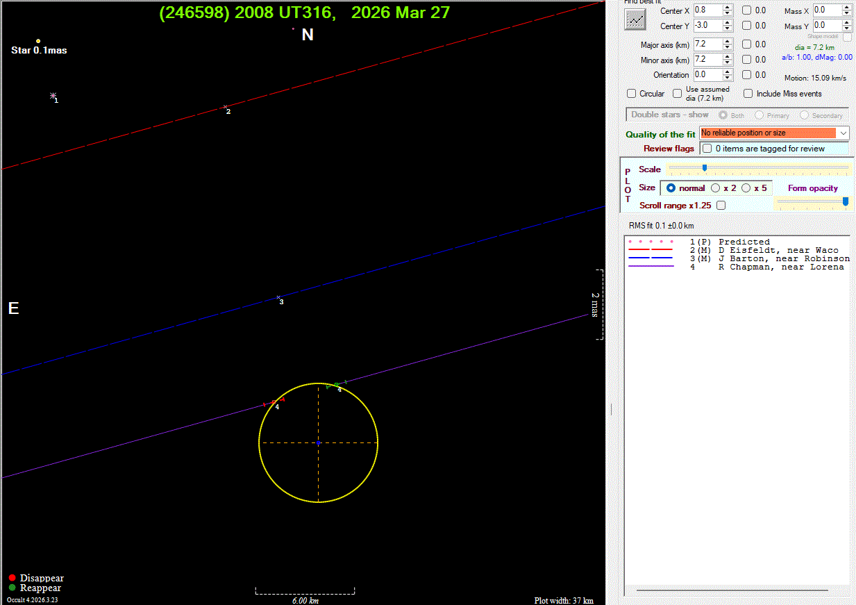 The true size/shape of an asteroid in 3-dimensions cannot be determined from a single occultation.