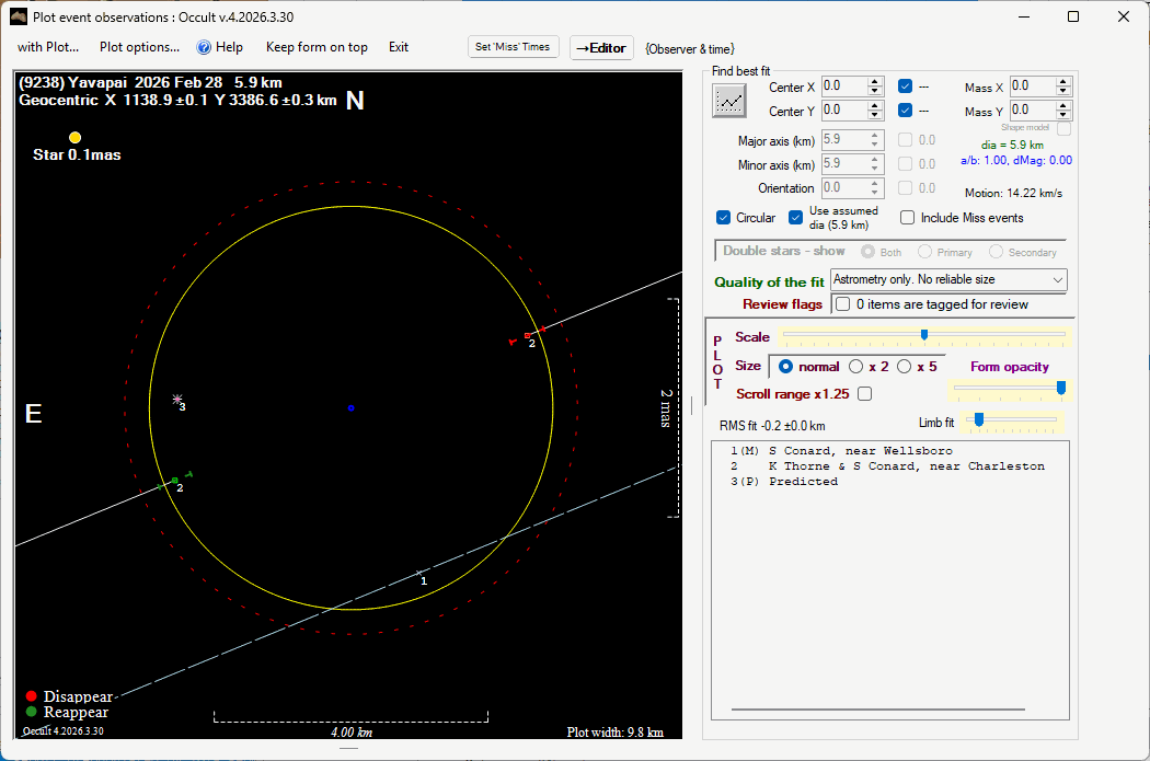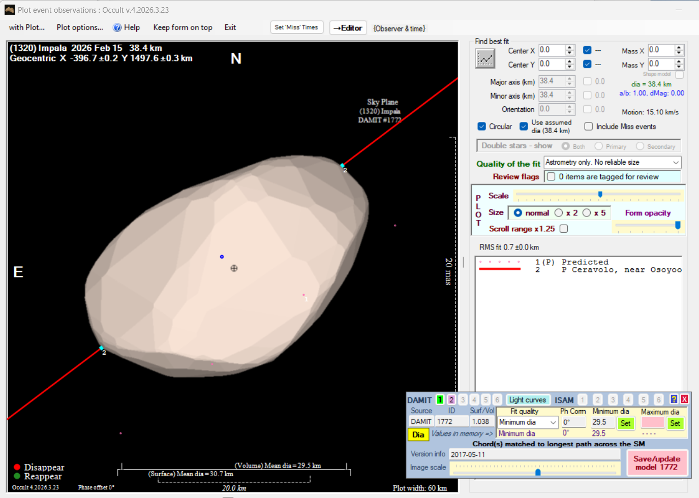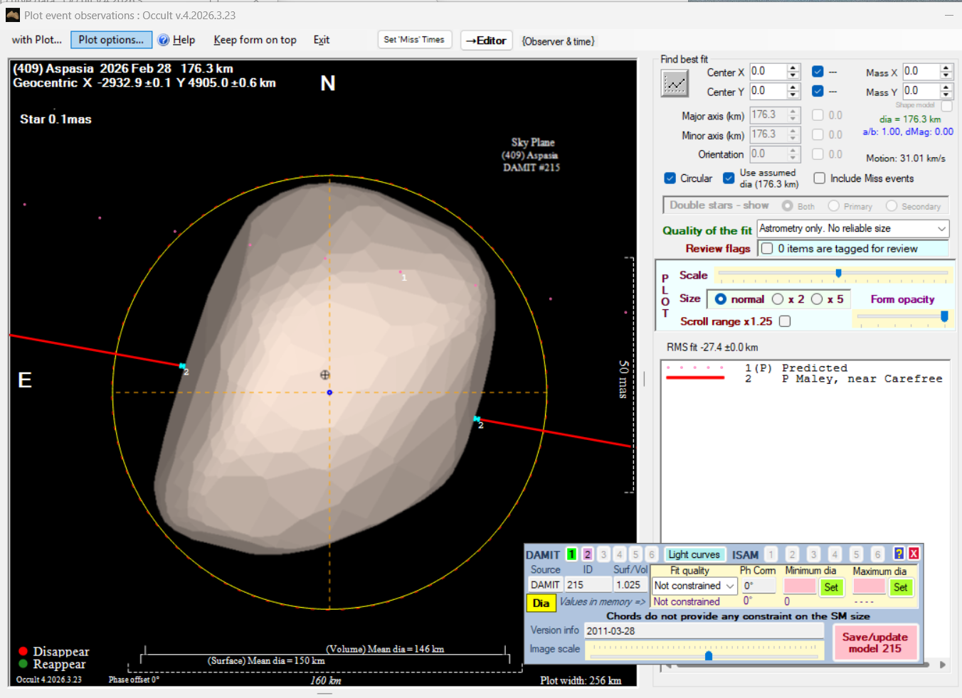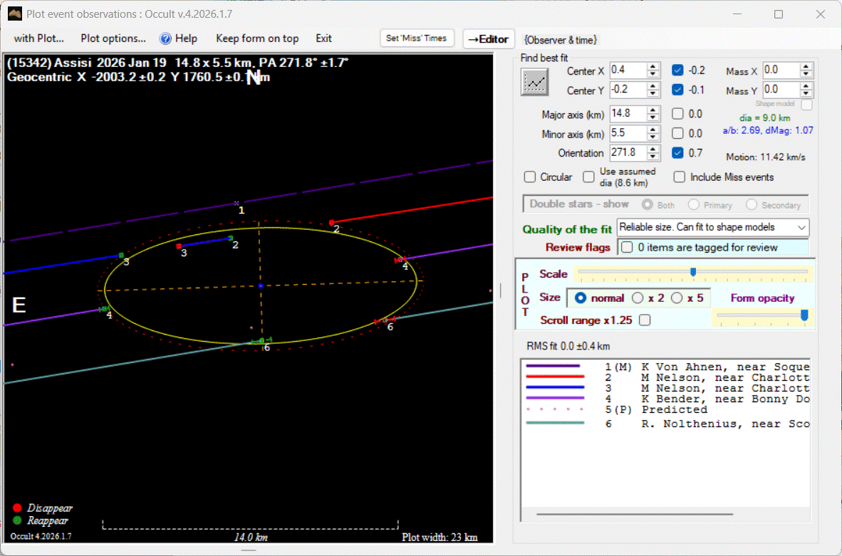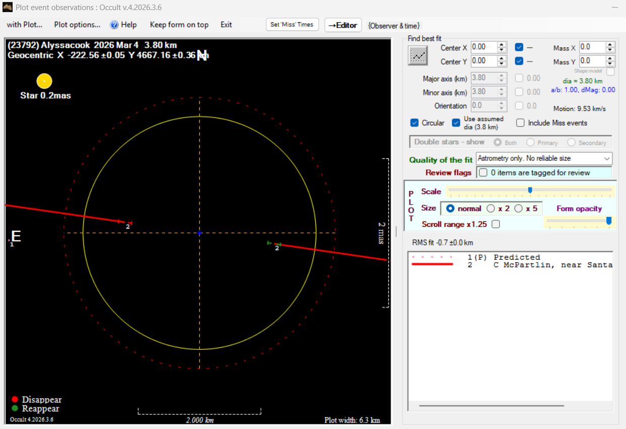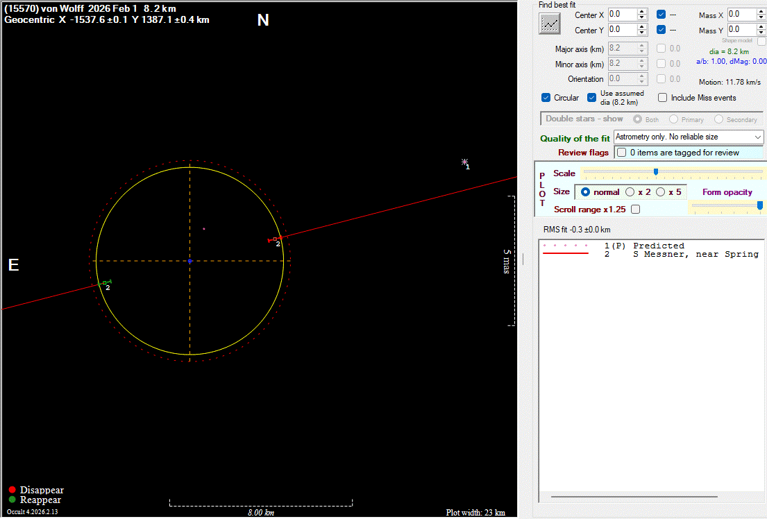 The true size/shape of an asteroid in 3-dimensions cannot be determined from a single occultation.