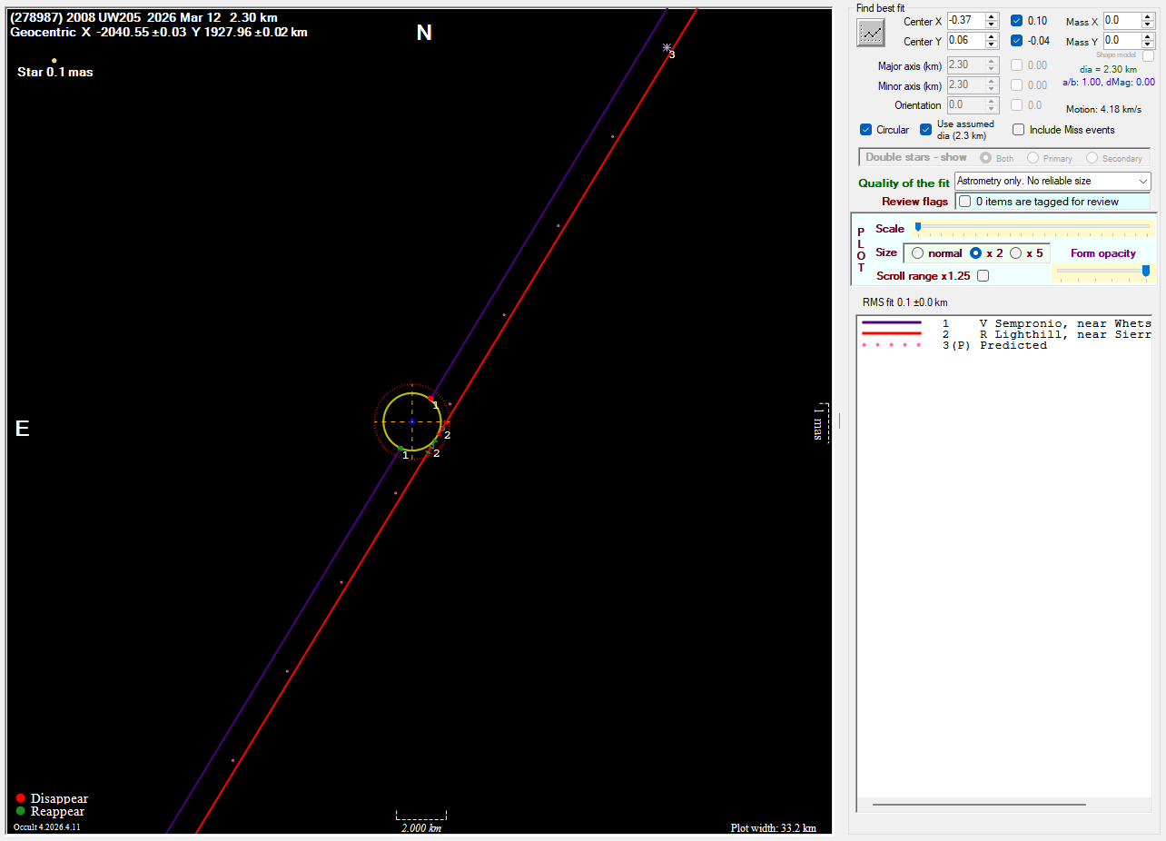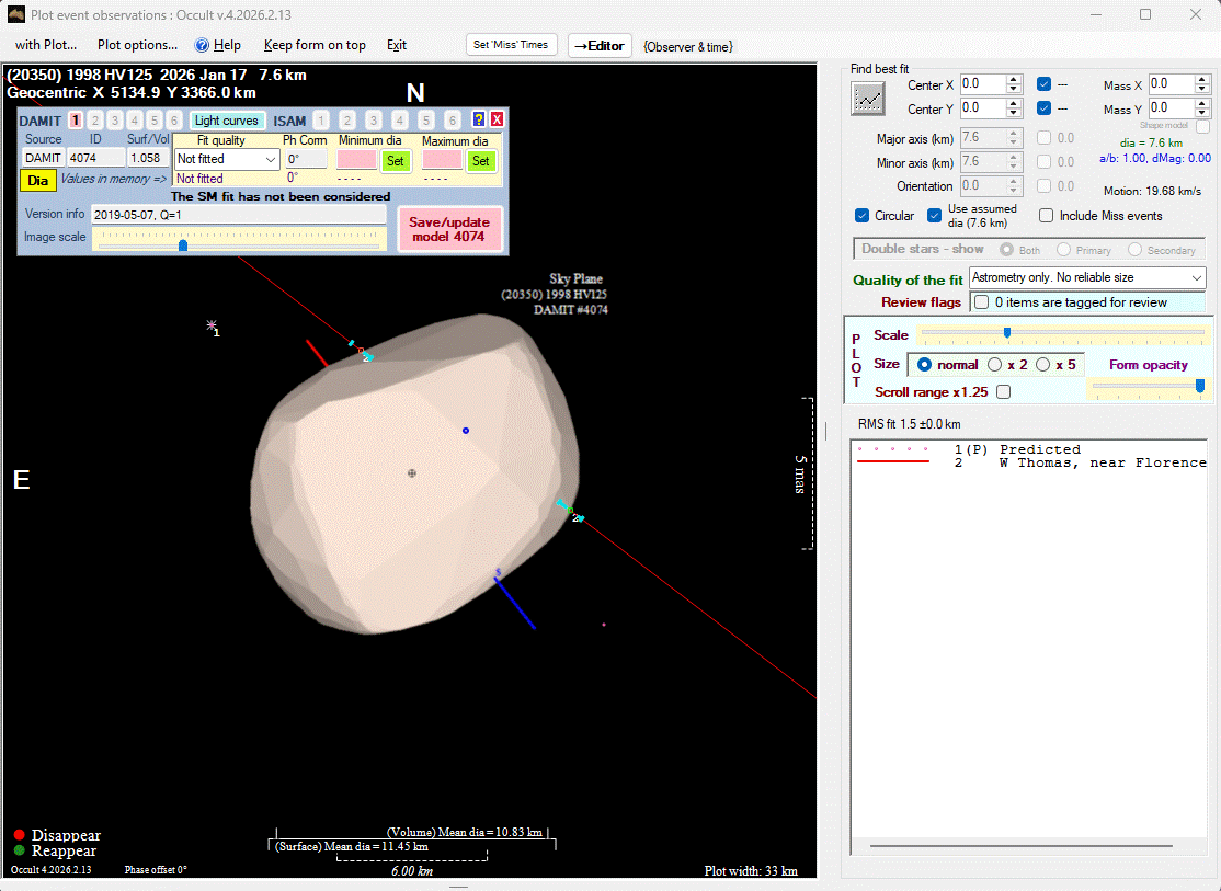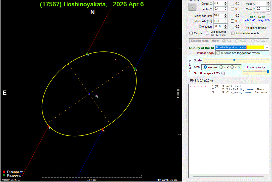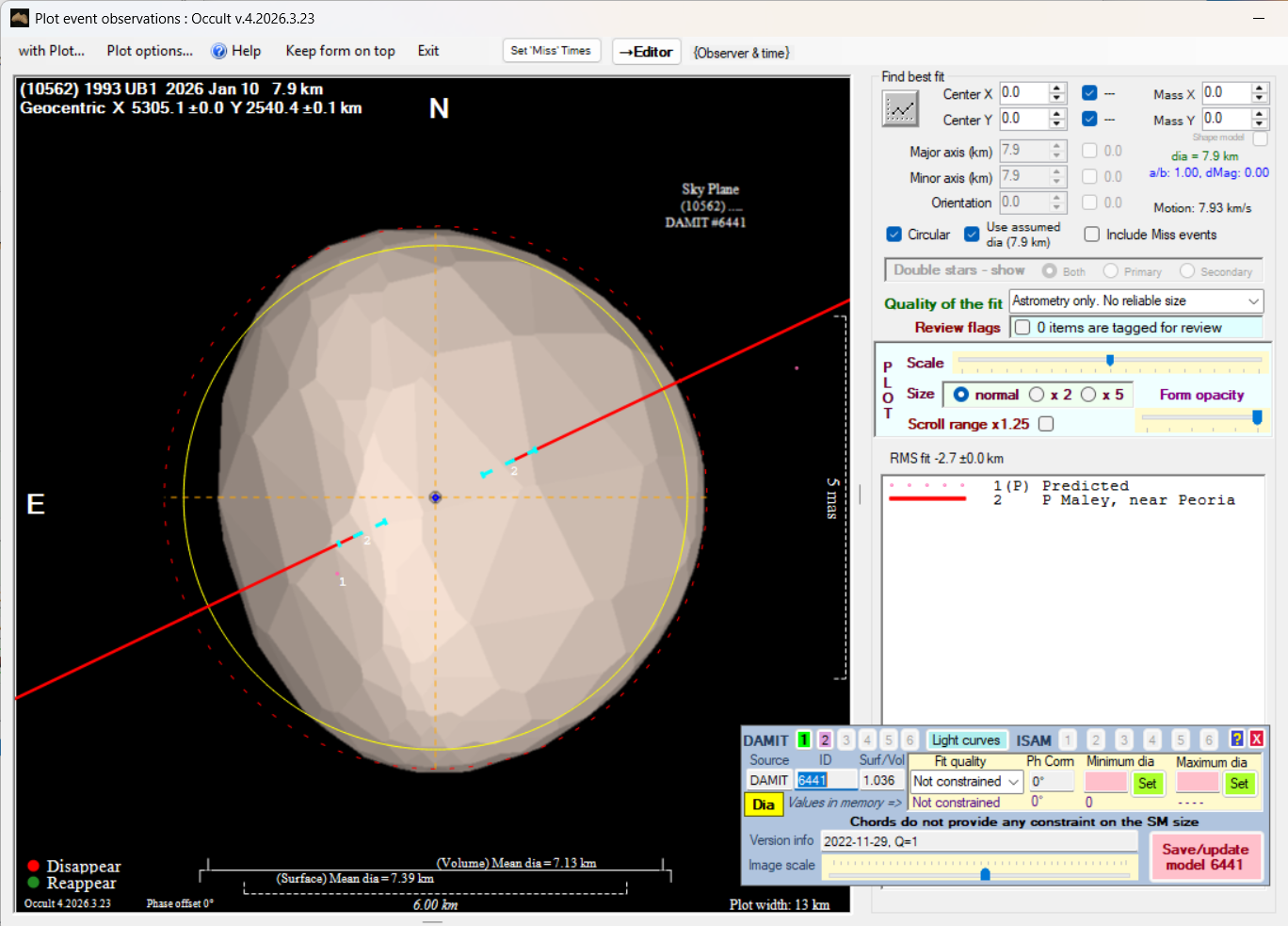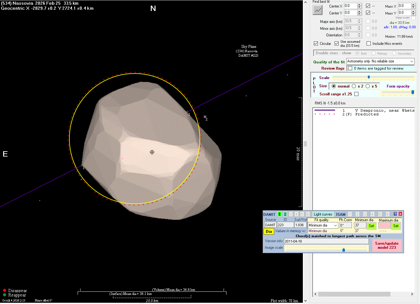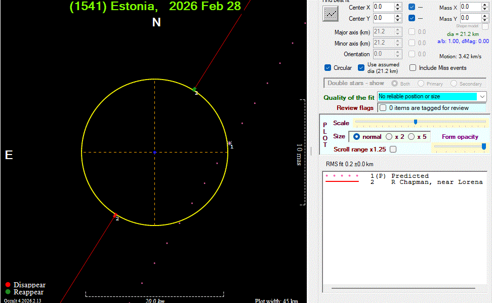 The true size/shape of an asteroid in 3-dimensions cannot be determined from a single occultation.