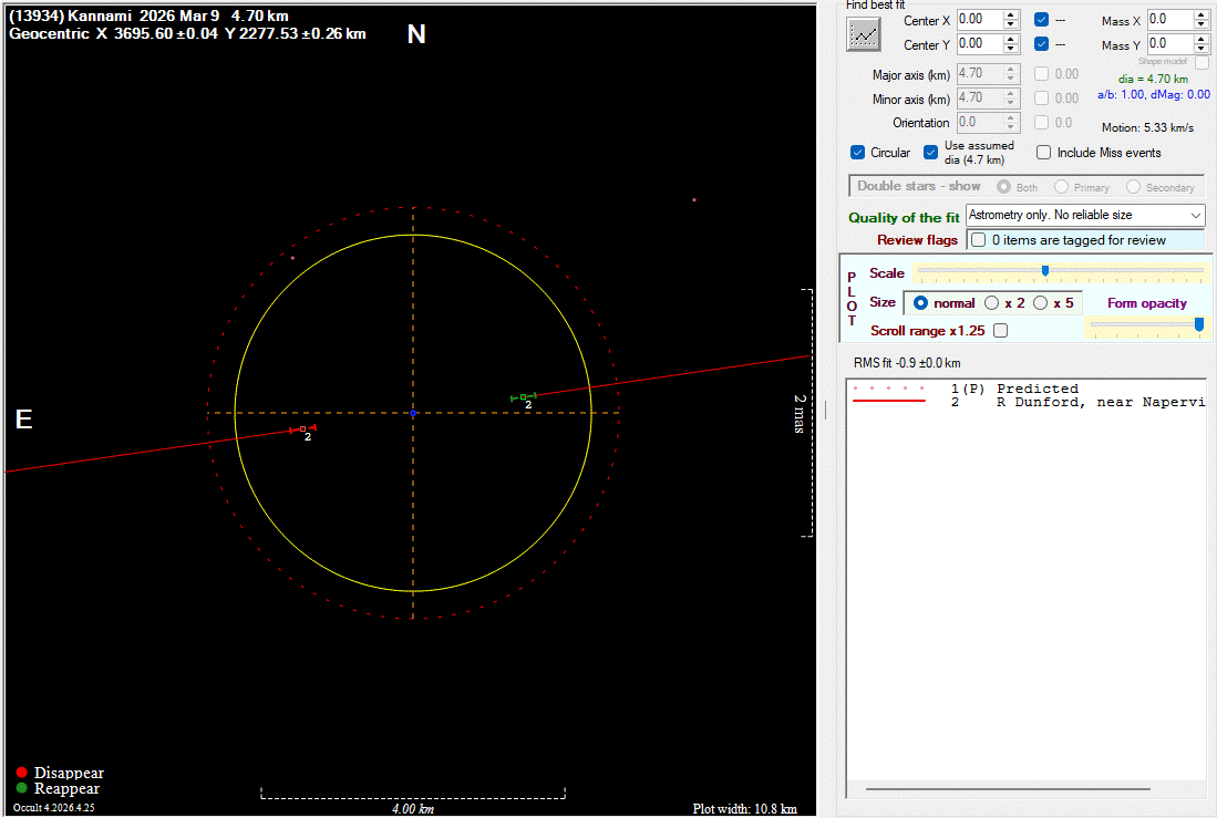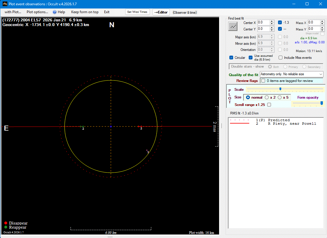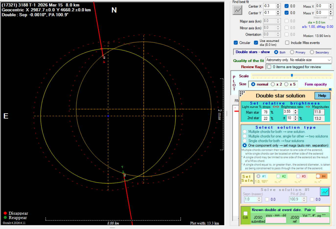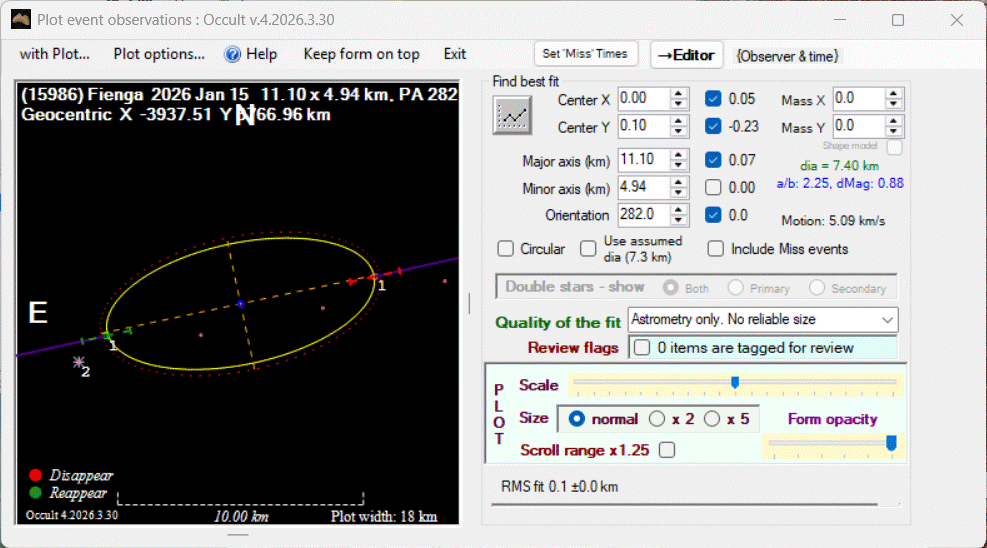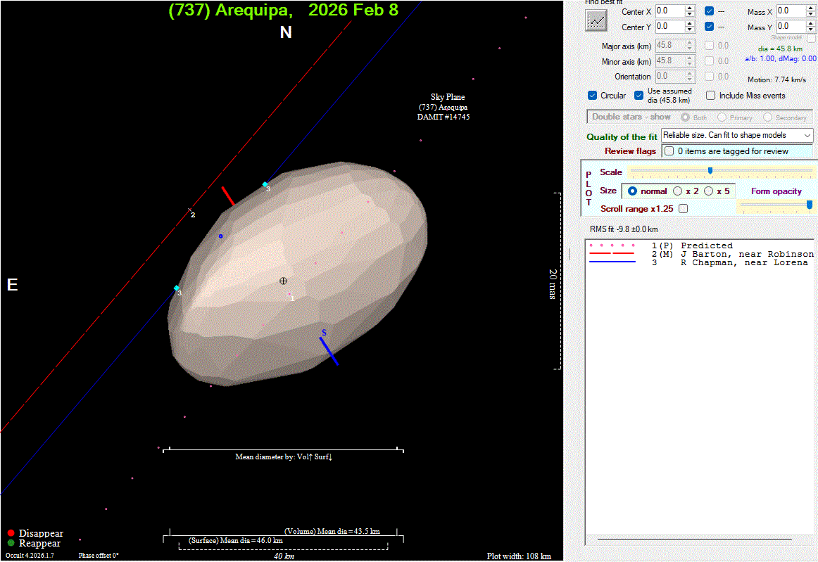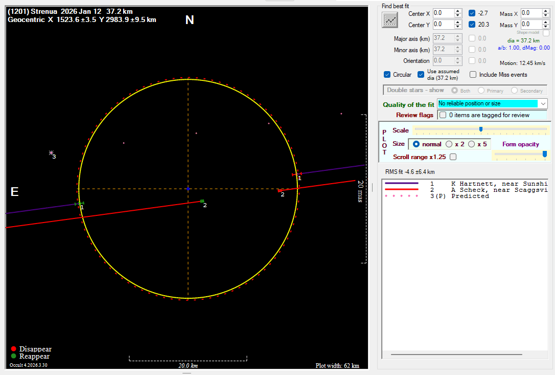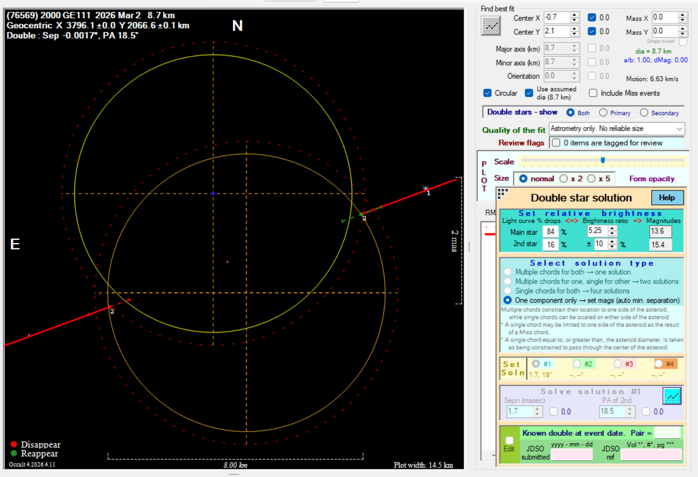 The true size/shape of an asteroid in 3-dimensions cannot be determined from a single occultation.
