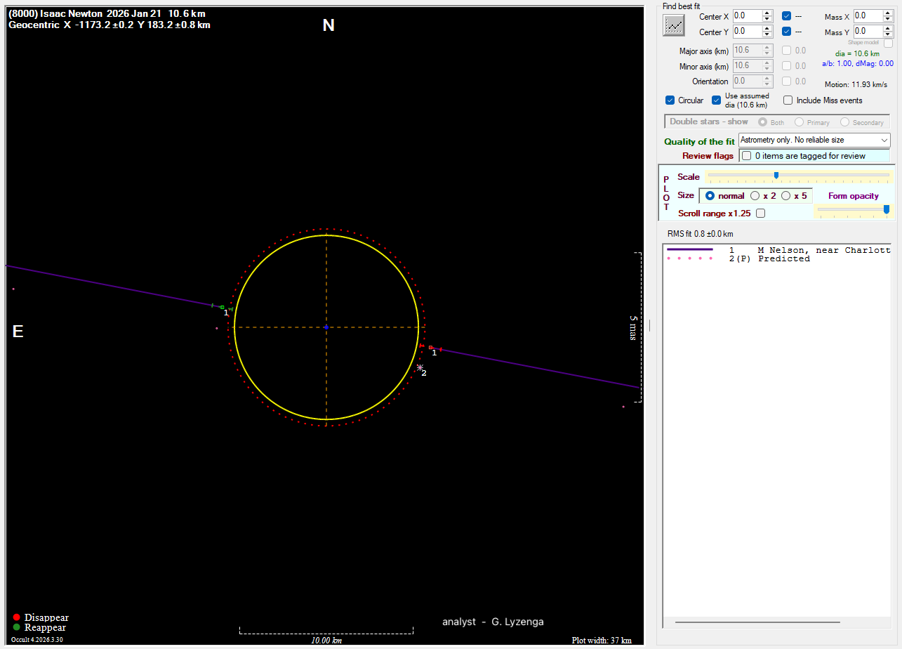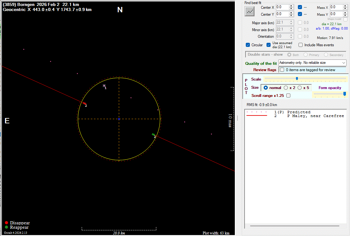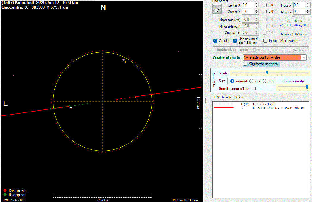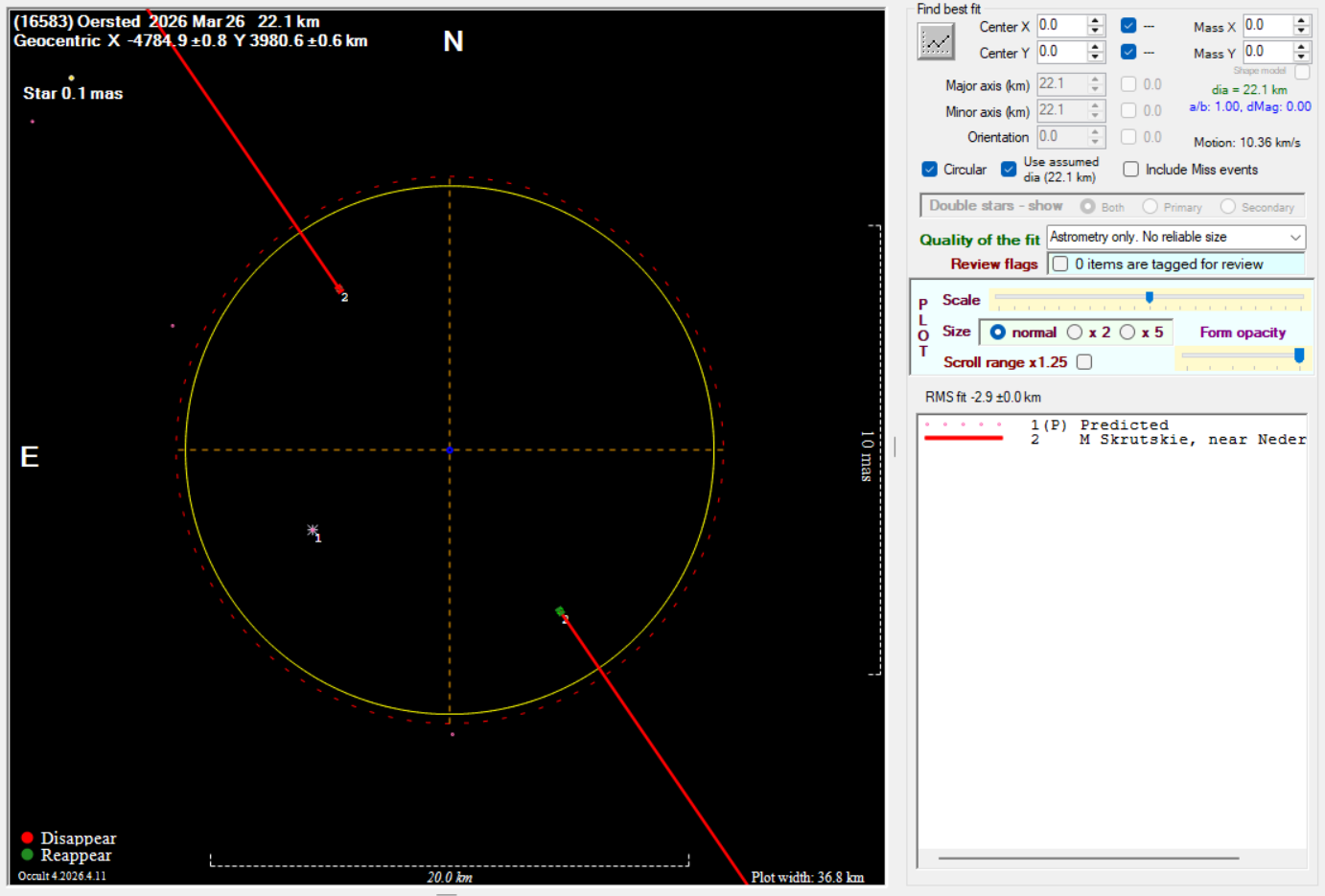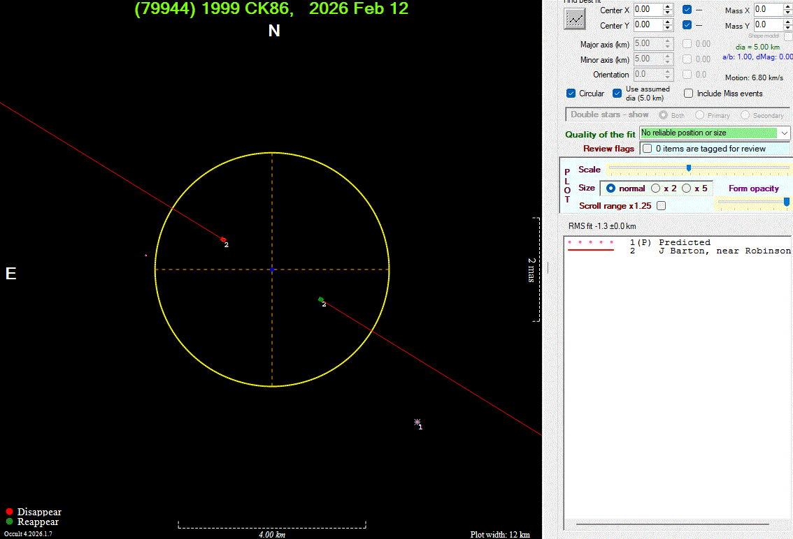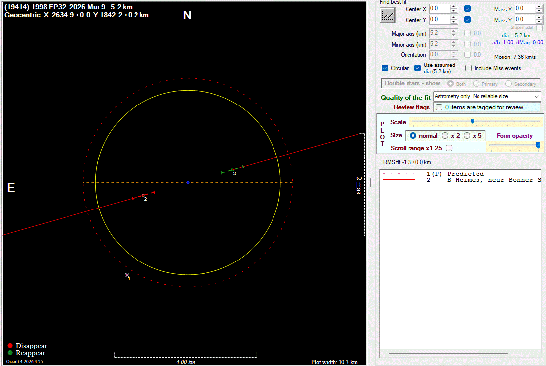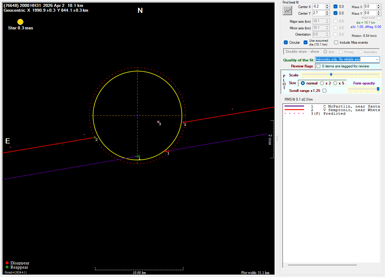 The true size/shape of an asteroid in 3-dimensions cannot be determined from a single occultation.