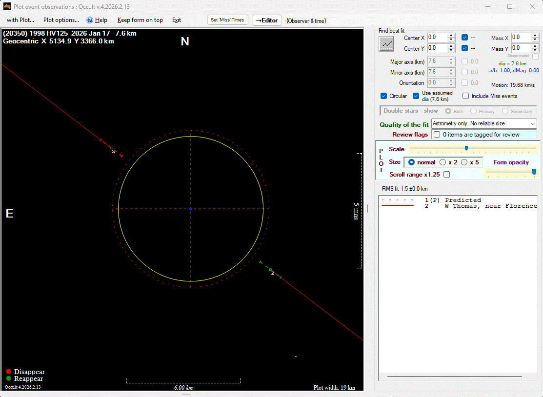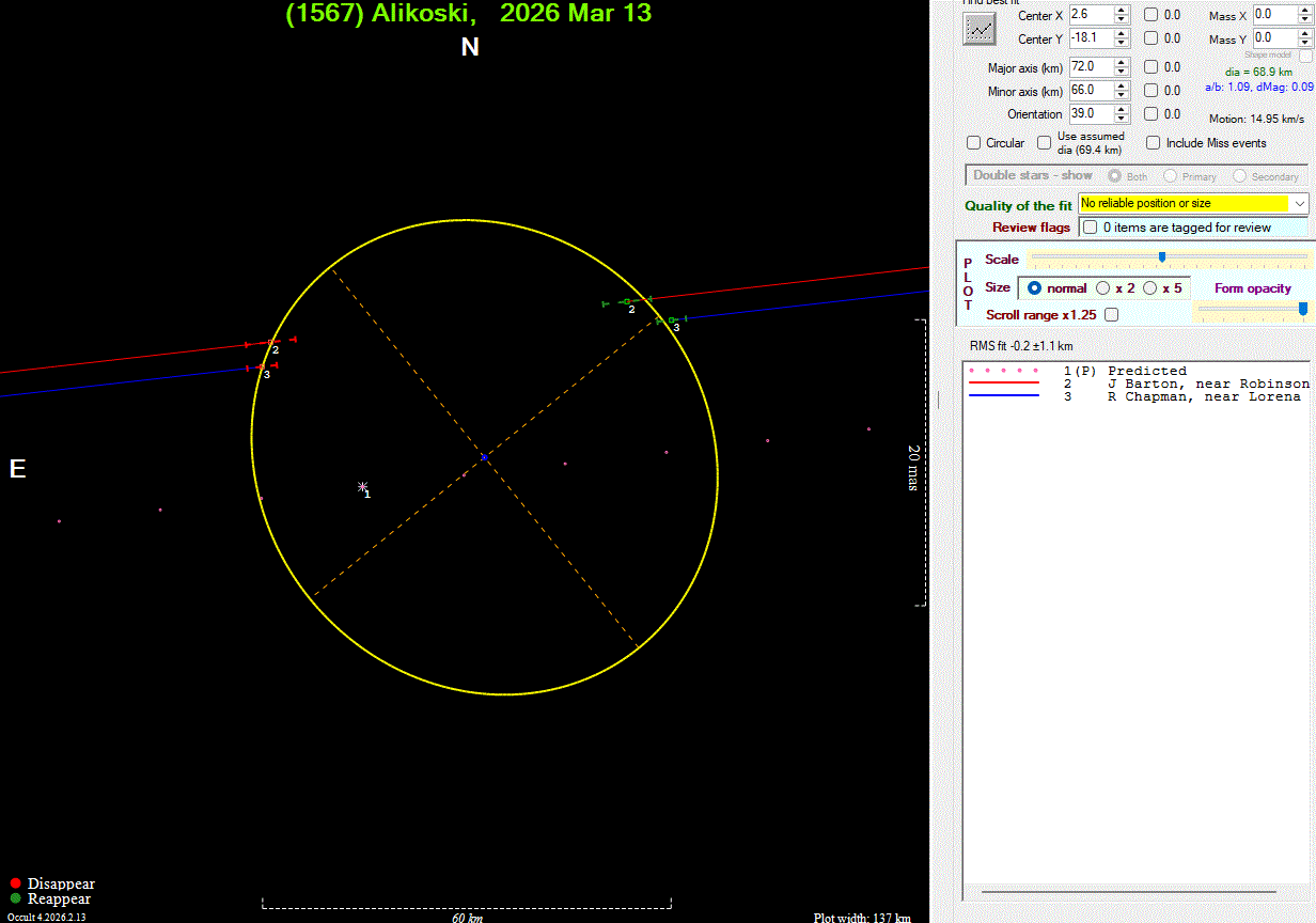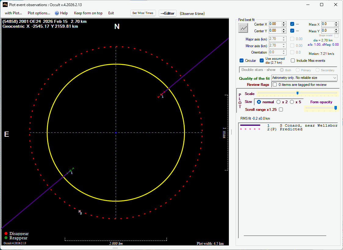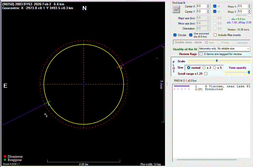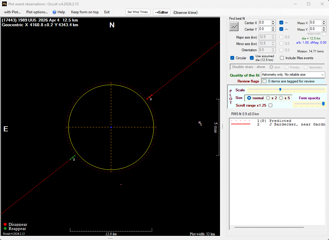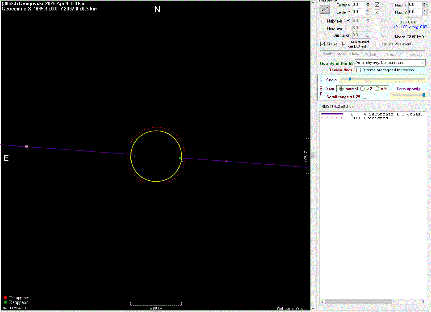 The true size/shape of an asteroid in 3-dimensions cannot be determined from a single occultation.