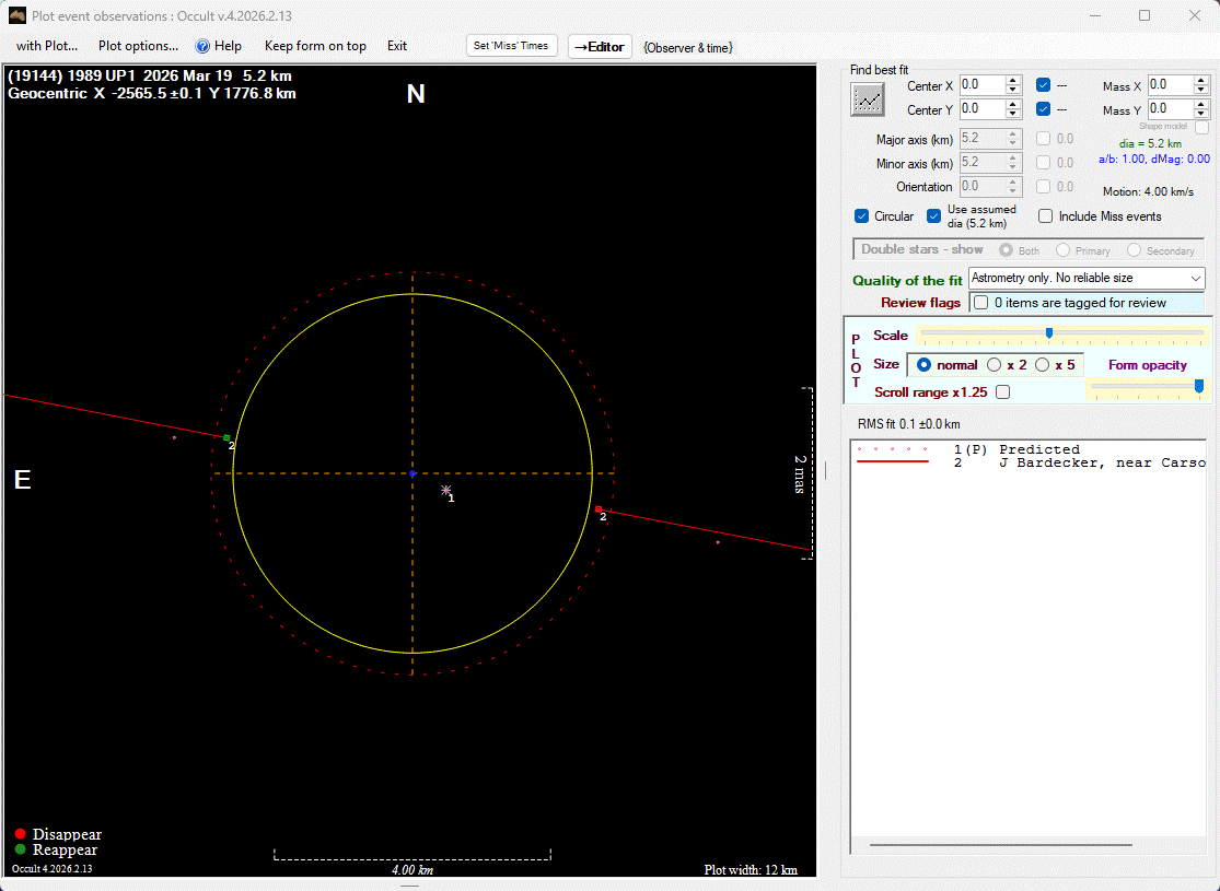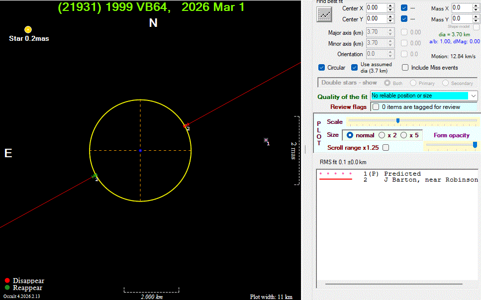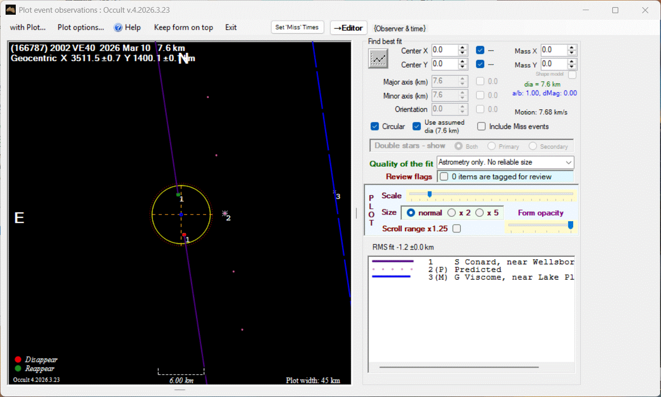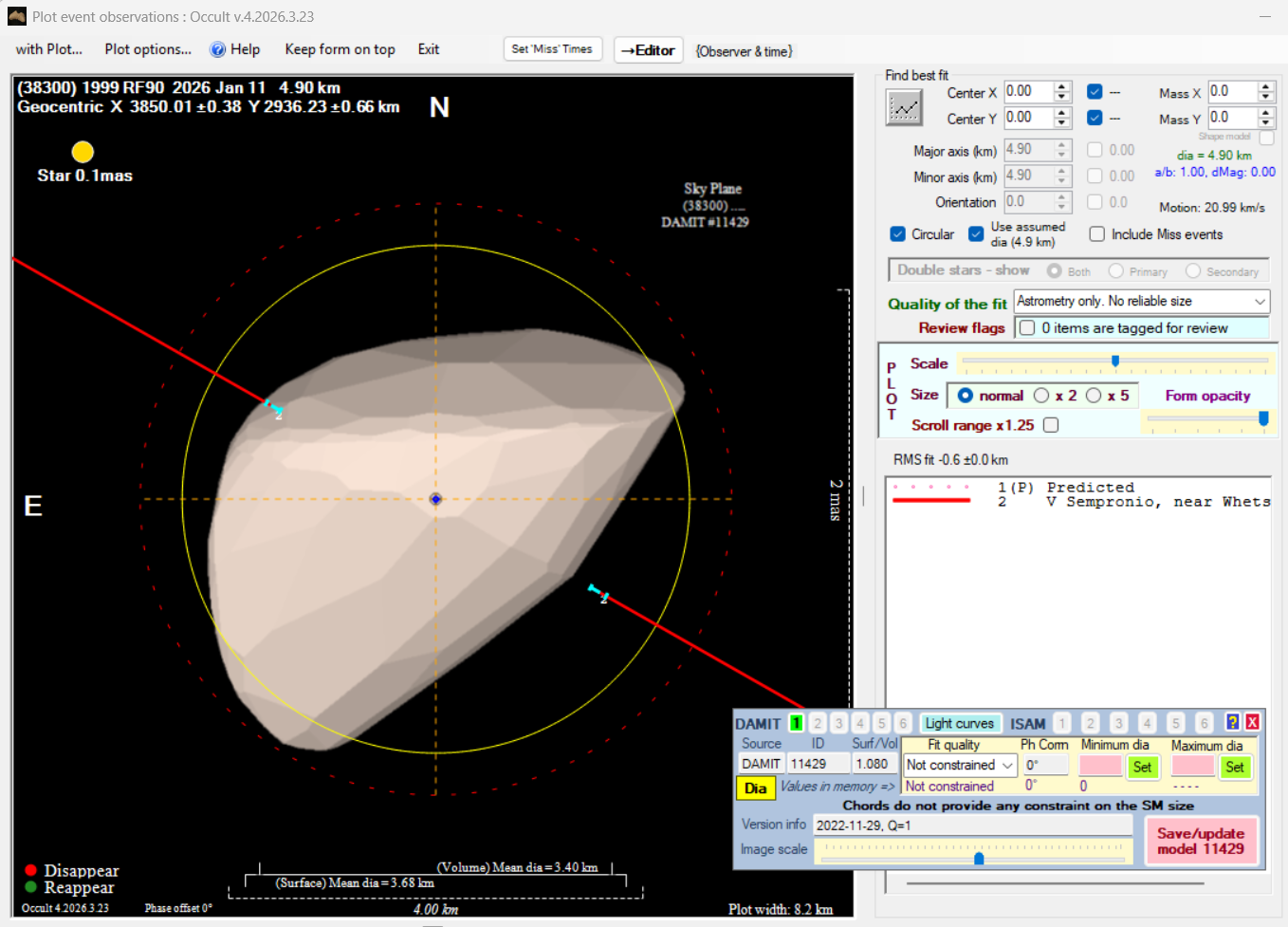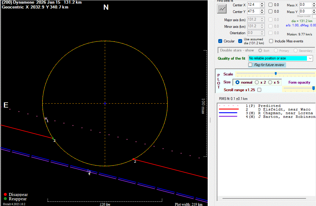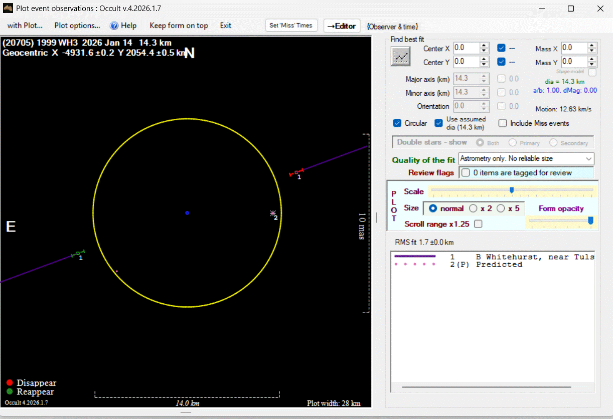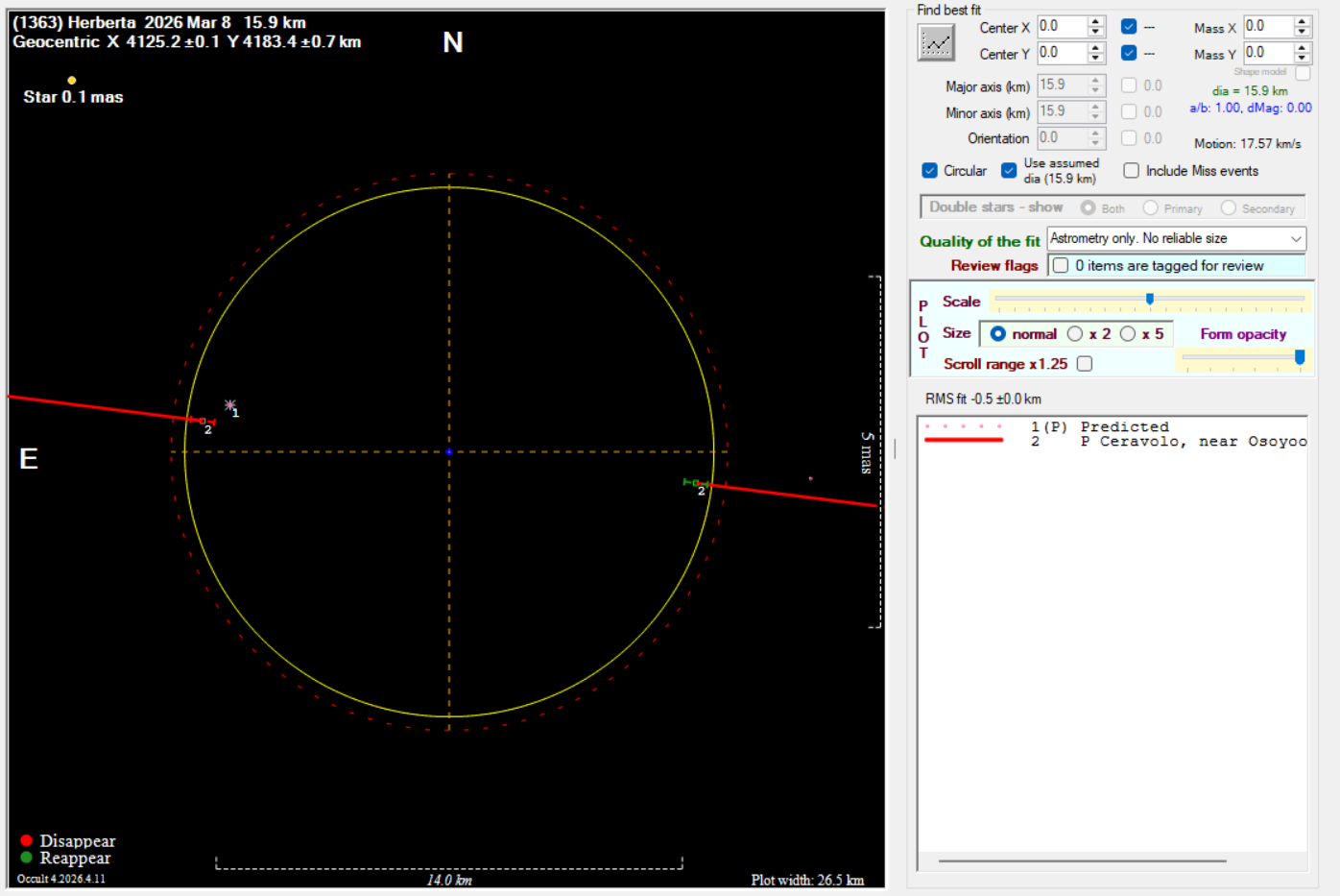 The true size/shape of an asteroid in 3-dimensions cannot be determined from a single occultation.