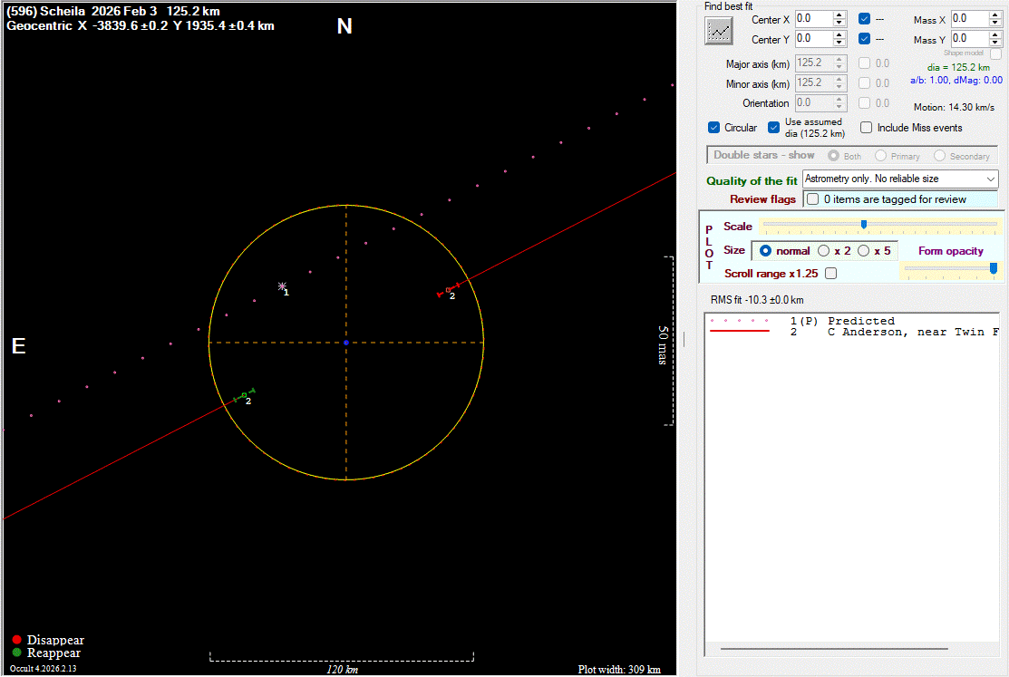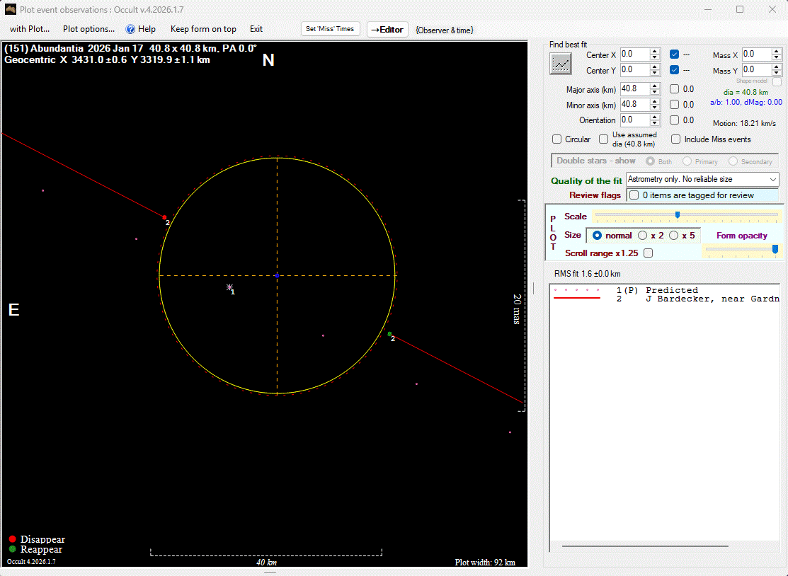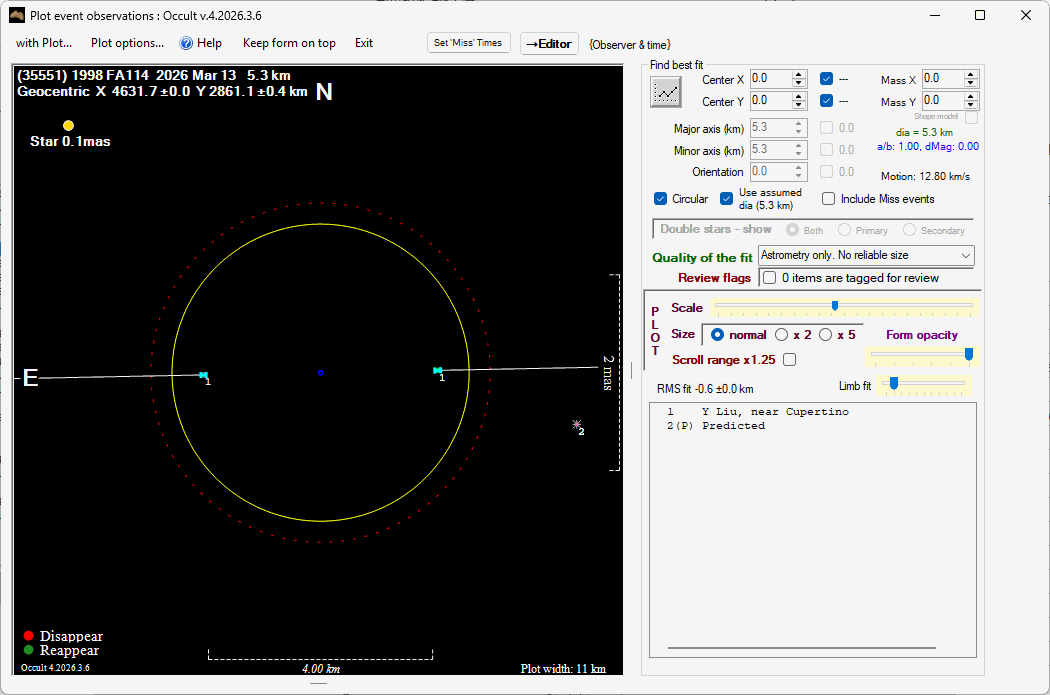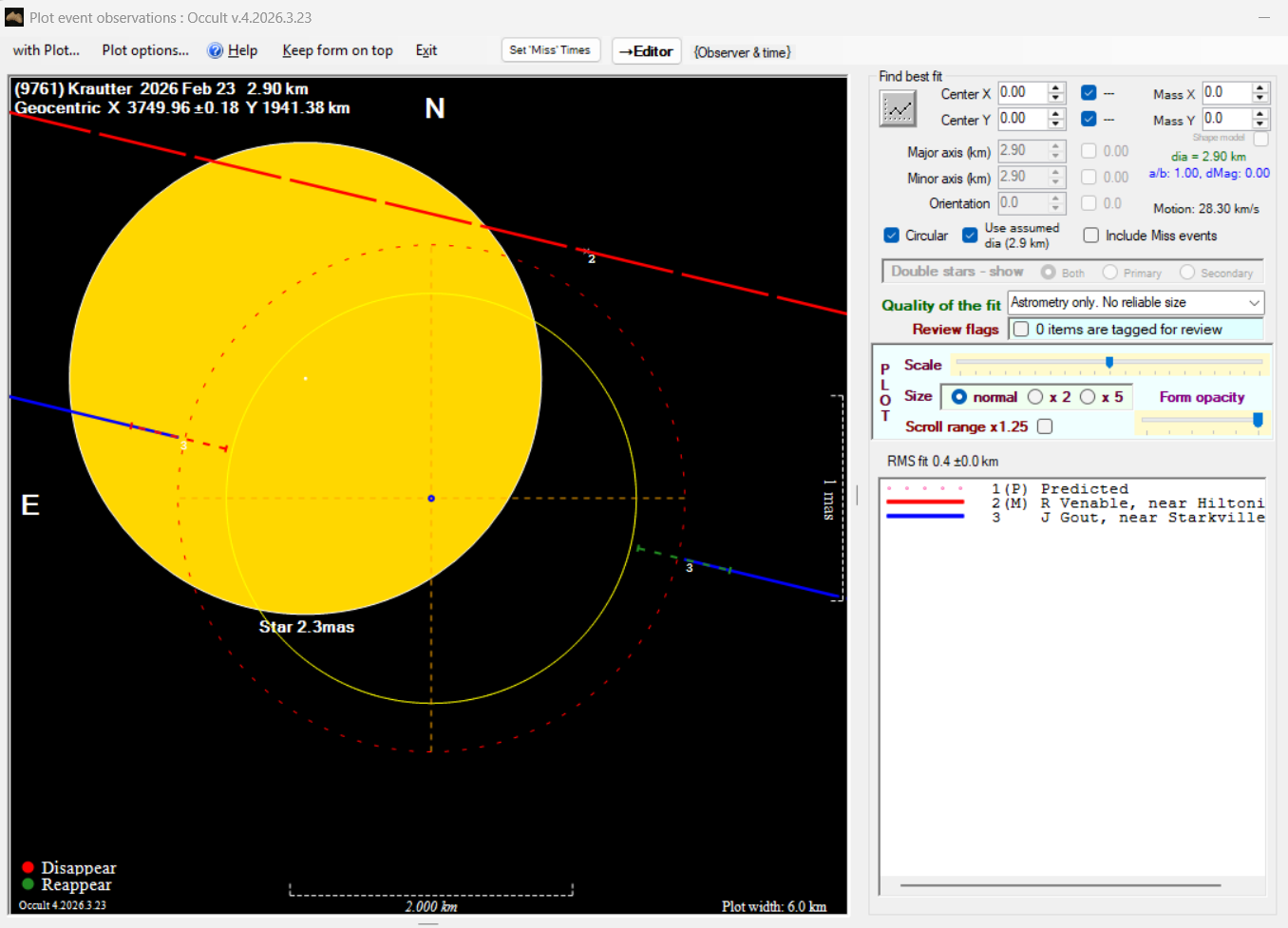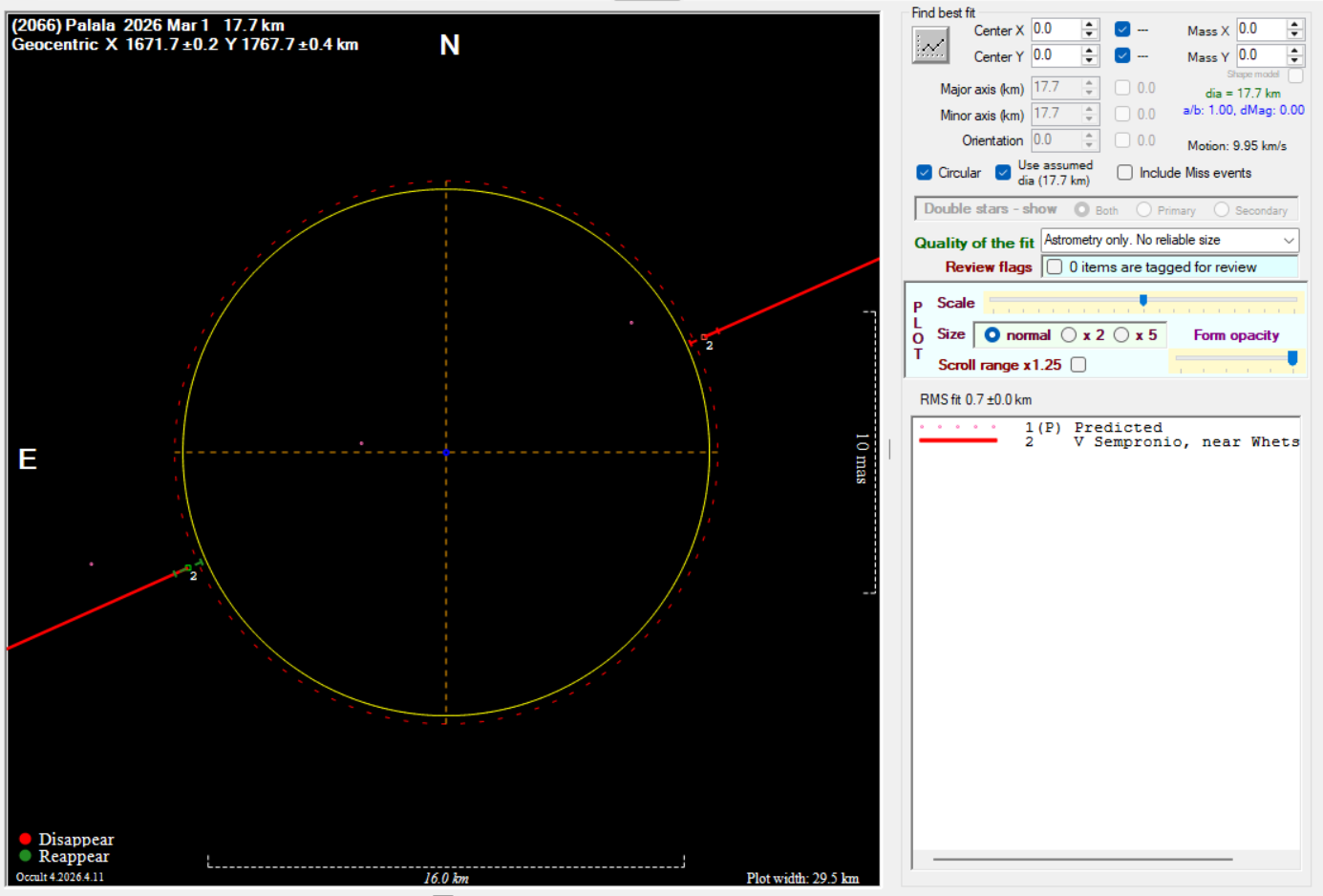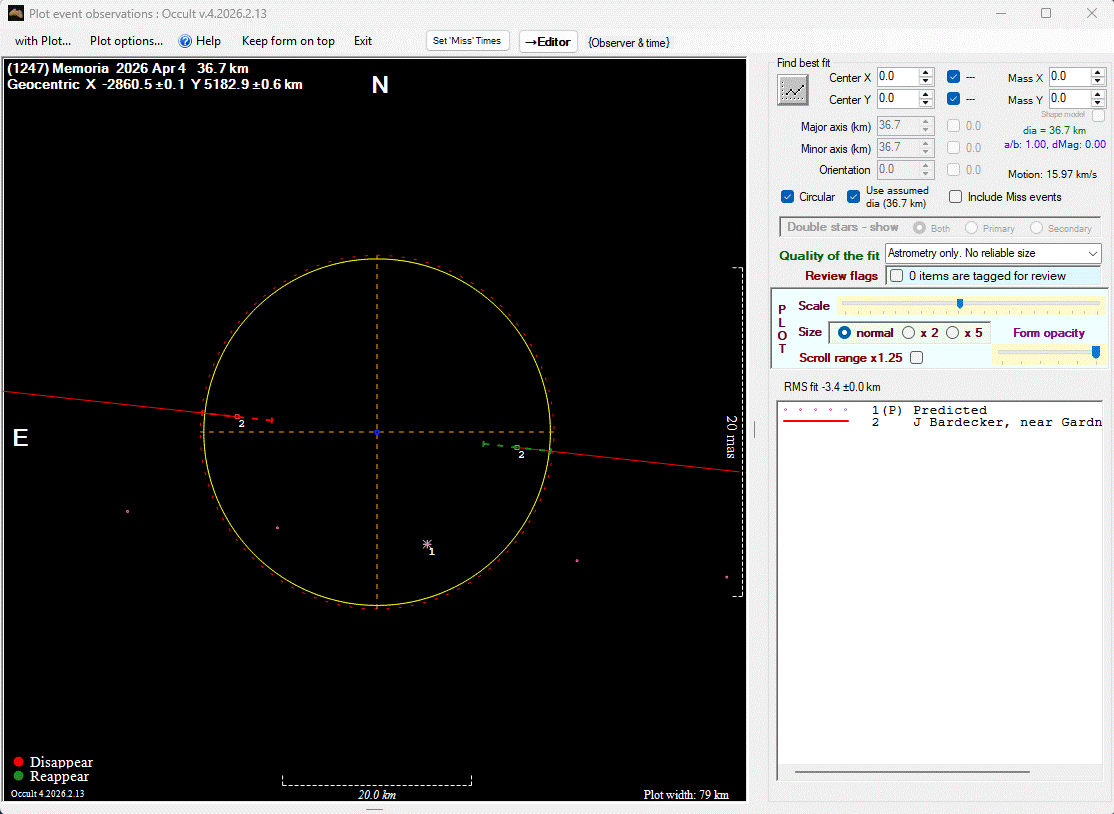 The true size/shape of an asteroid in 3-dimensions cannot be determined from a single occultation.