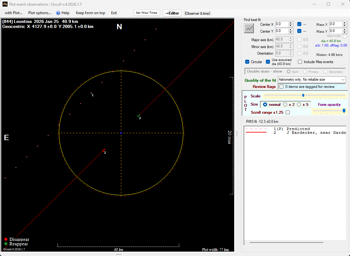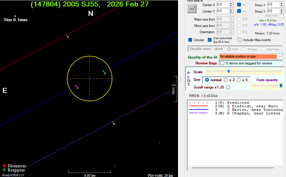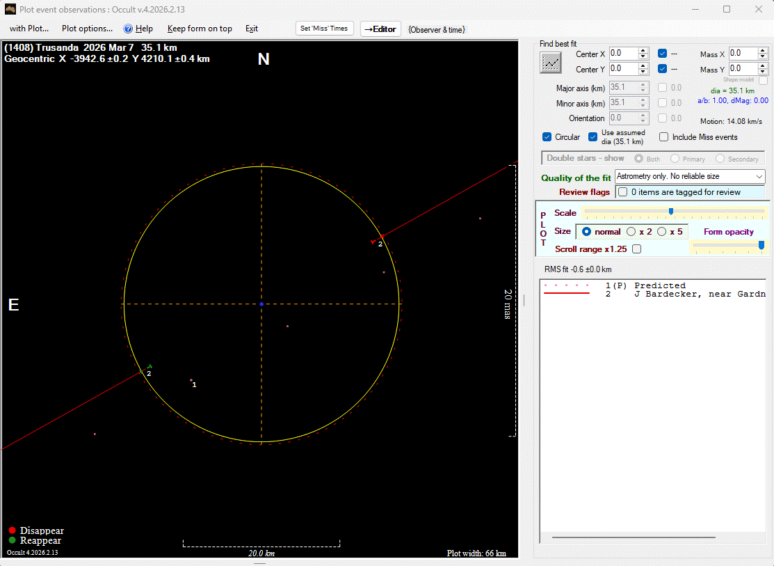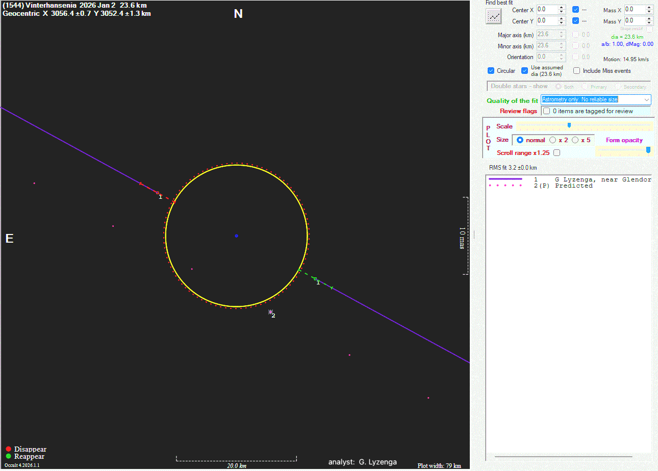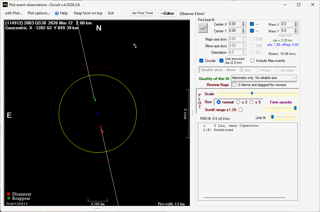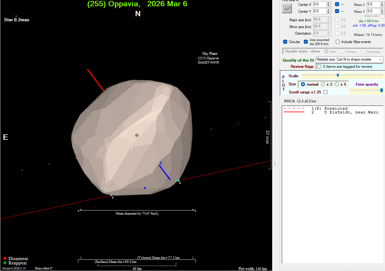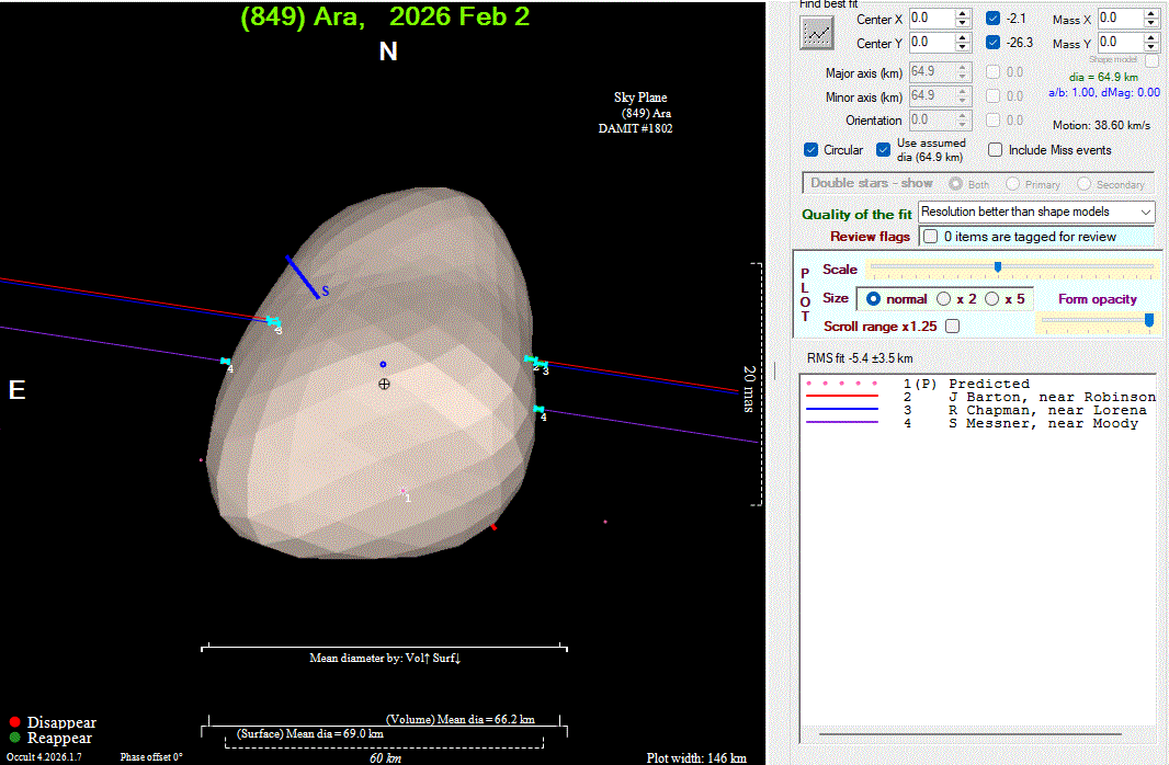 The true size/shape of an asteroid in 3-dimensions cannot be determined from a single occultation.