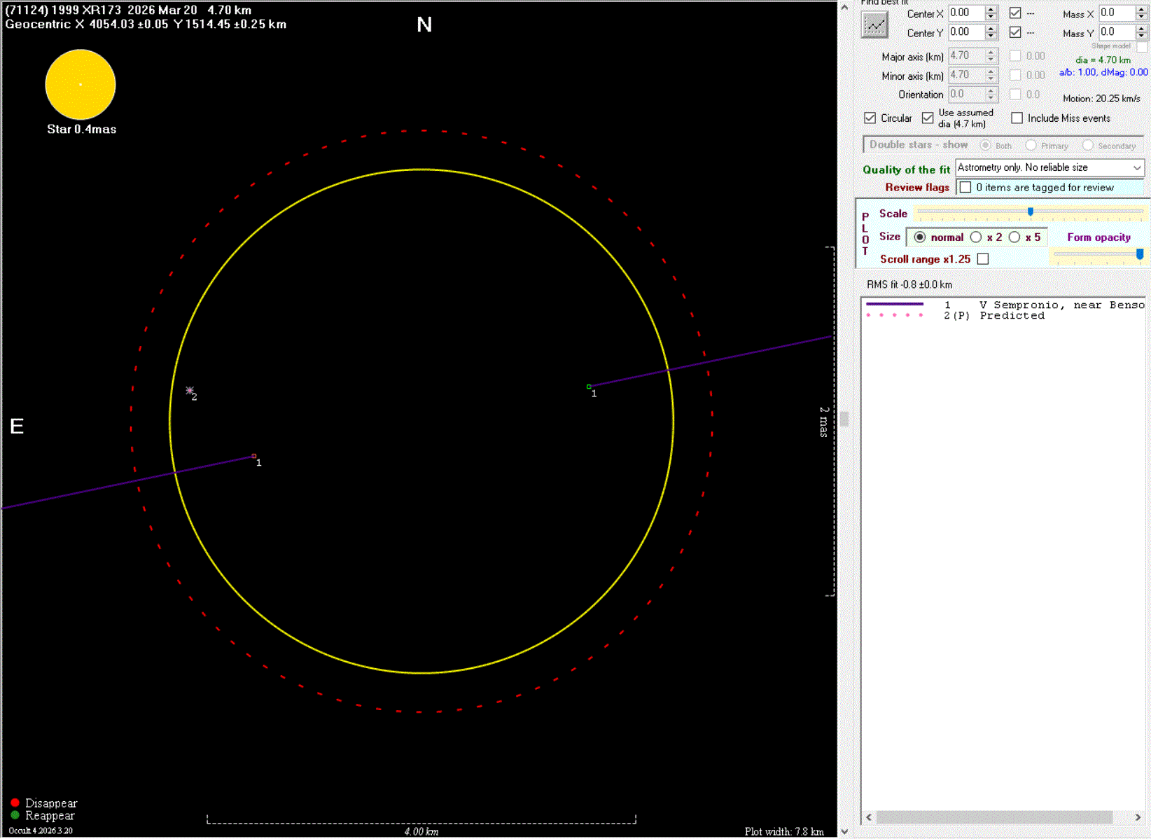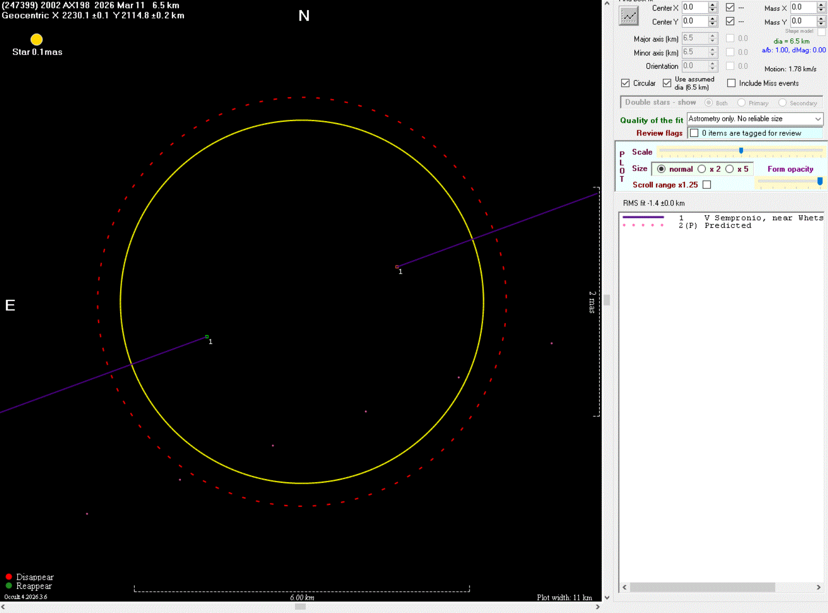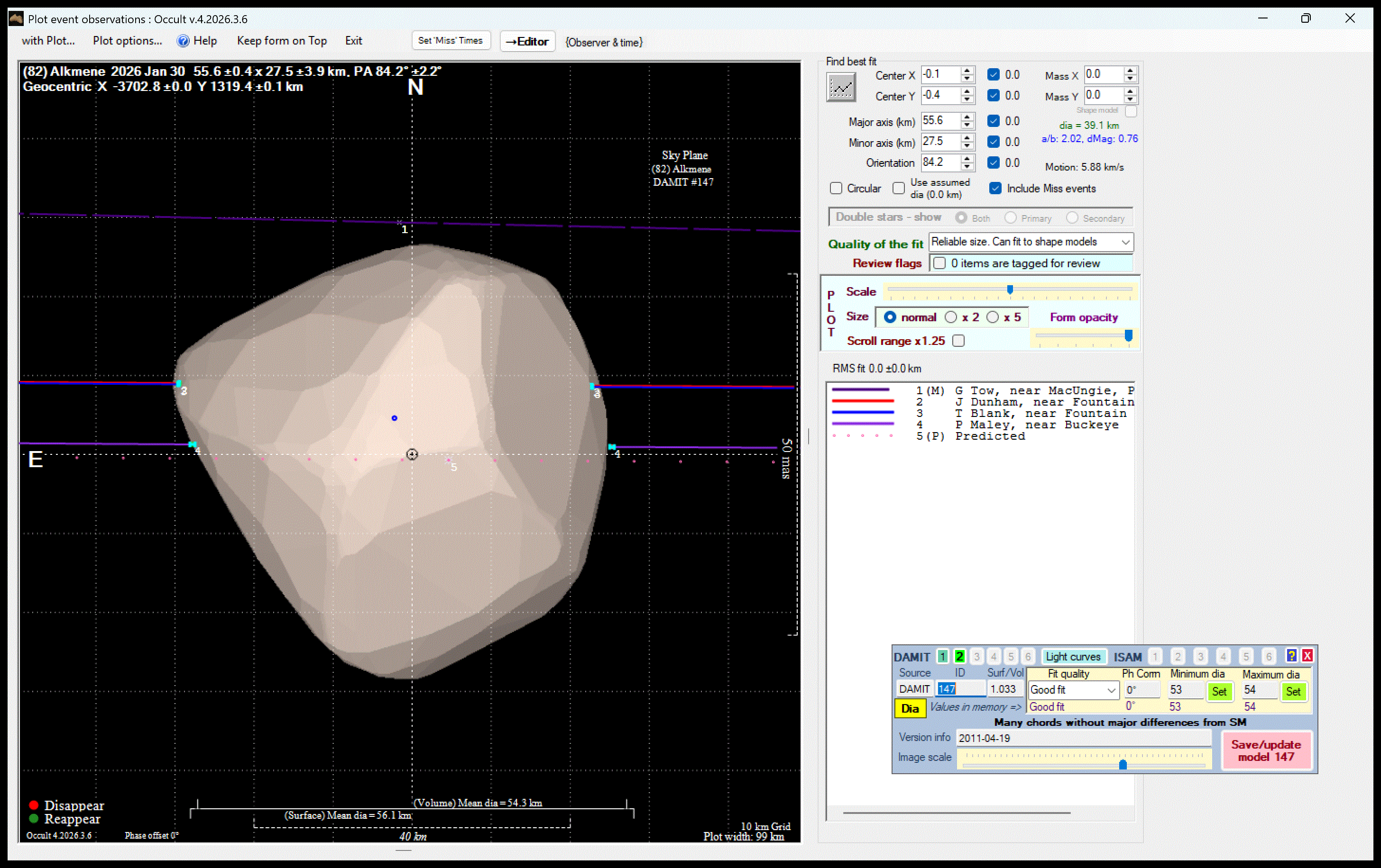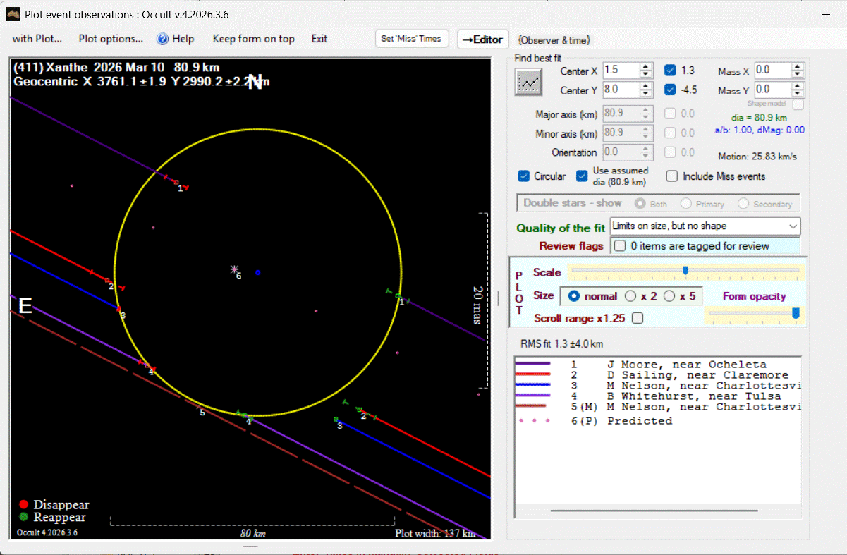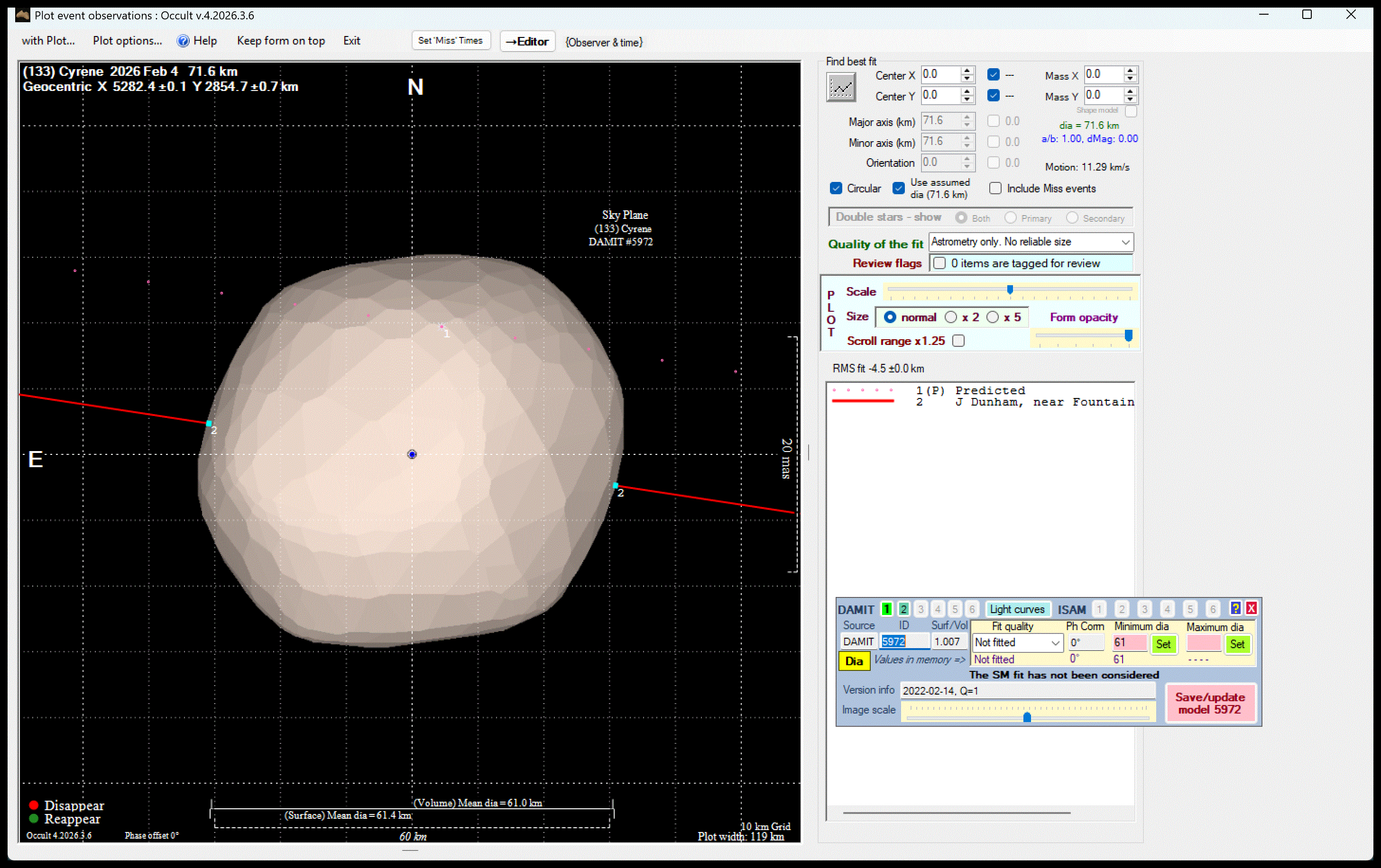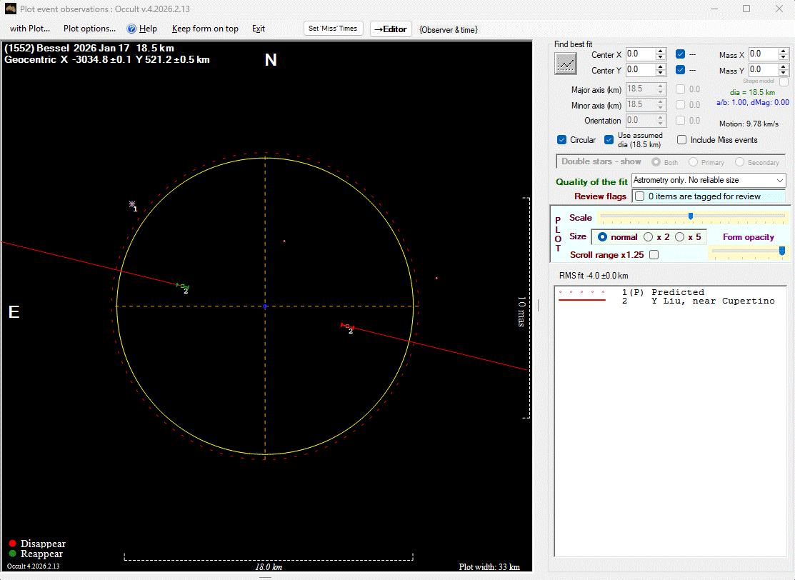 The true size/shape of an asteroid in 3-dimensions cannot be determined from a single occultation.