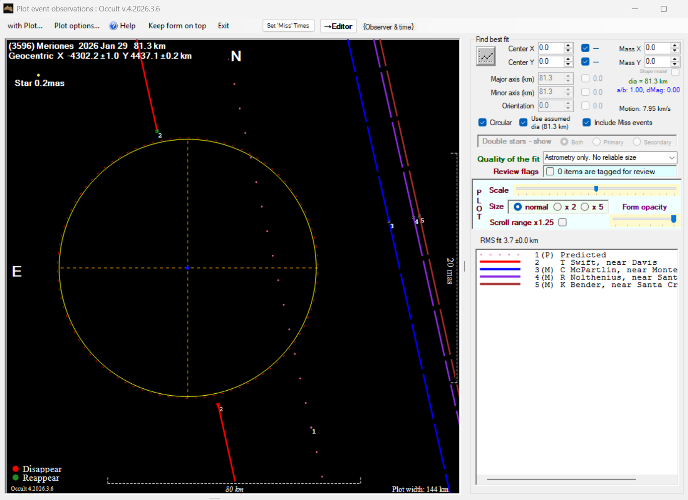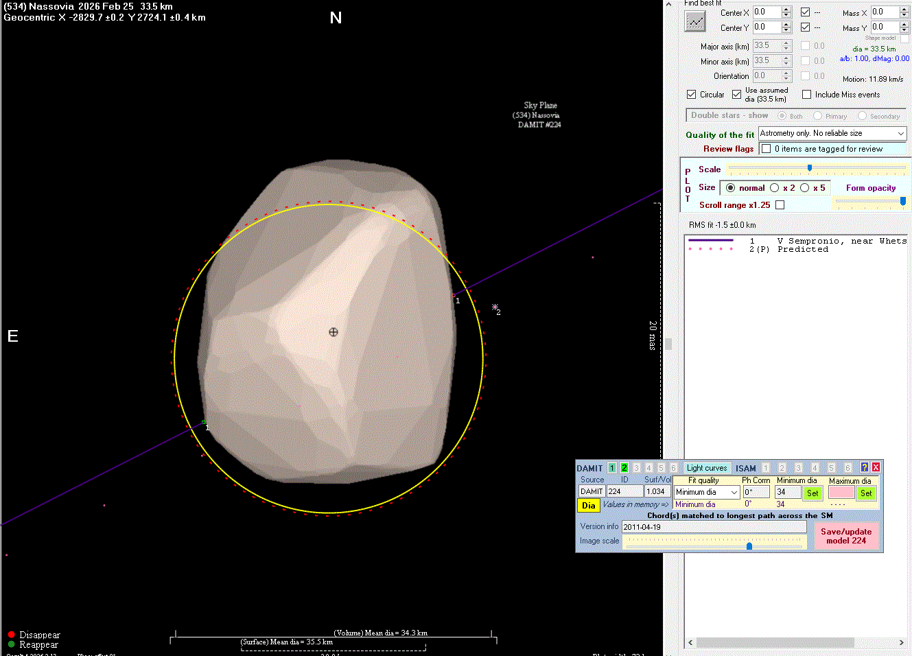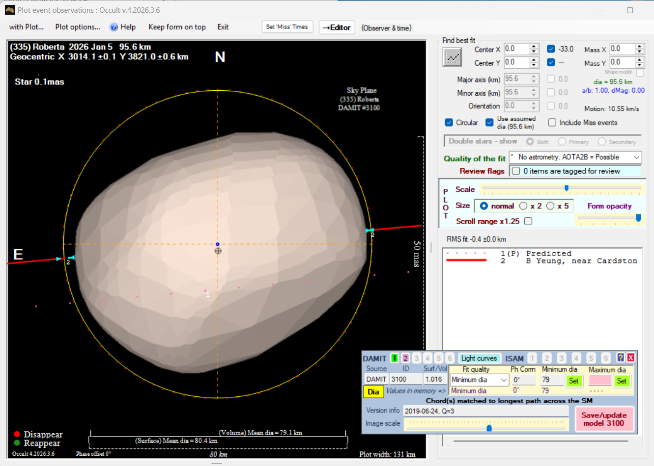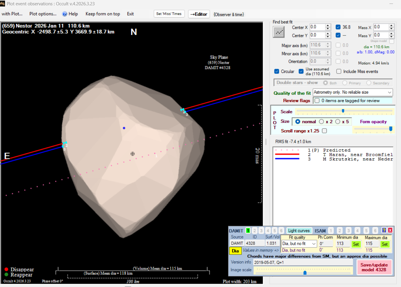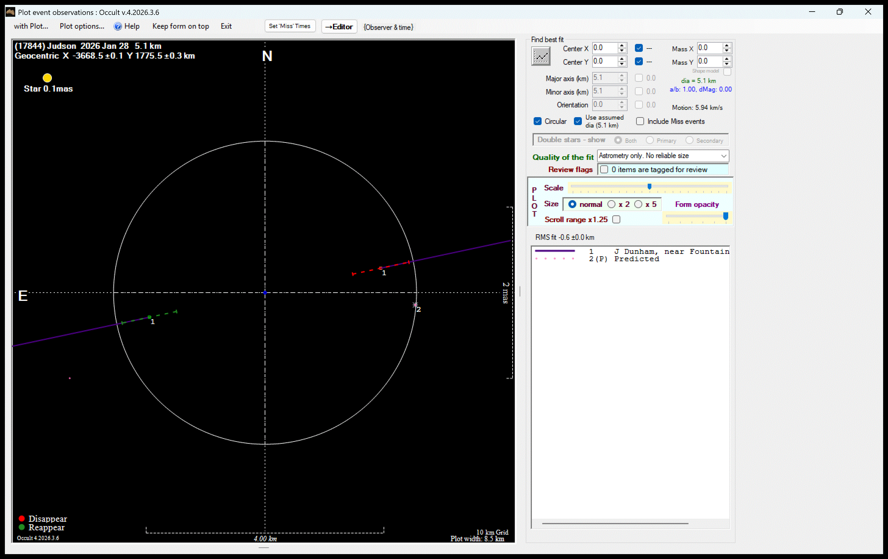 The true size/shape of an asteroid in 3-dimensions cannot be determined from a single occultation.