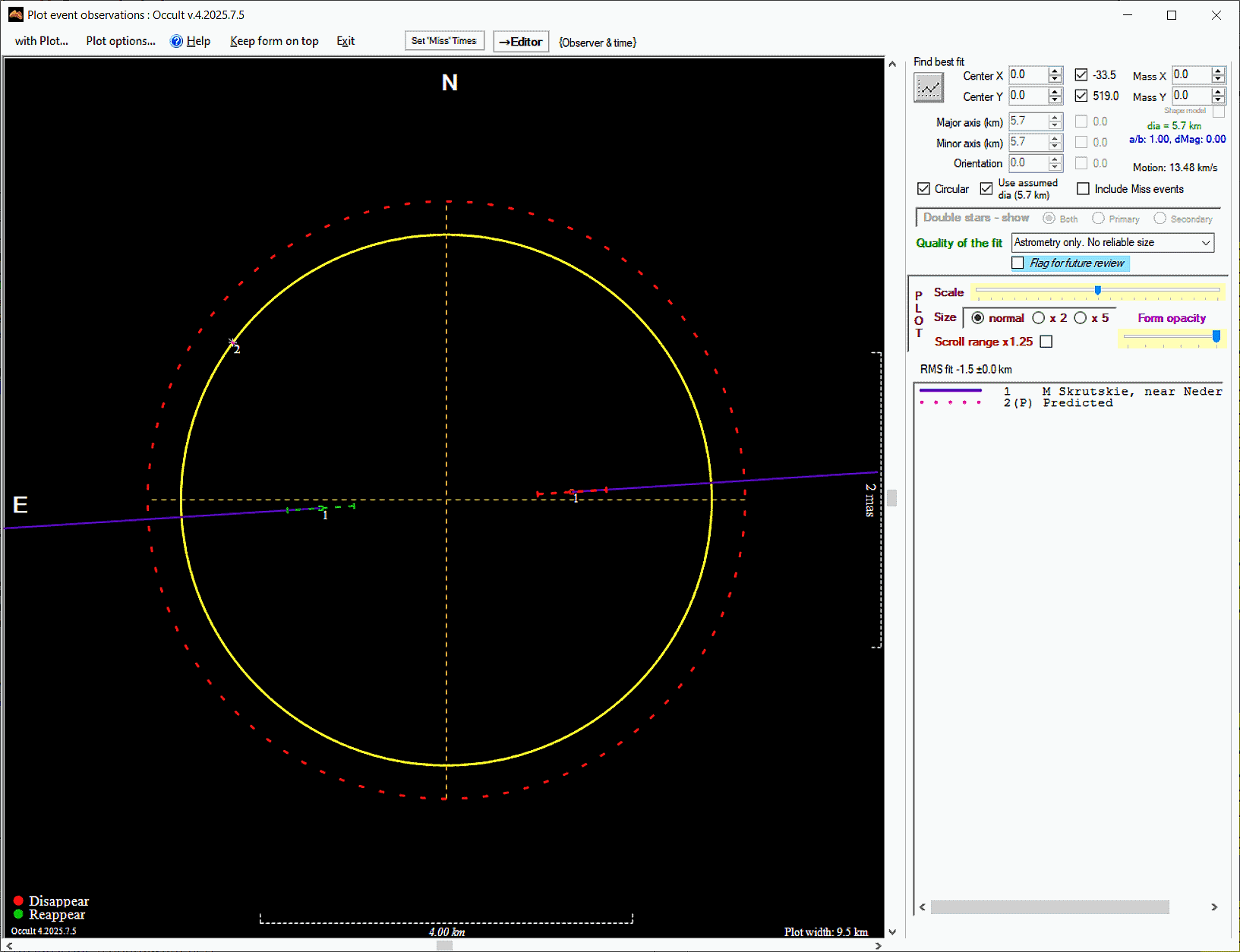 The true size/shape of an asteroid in 3-dimensions cannot be determined from a single occultation.