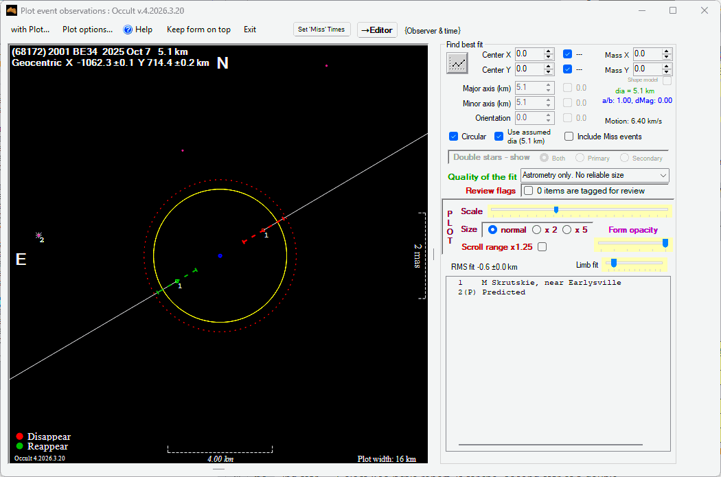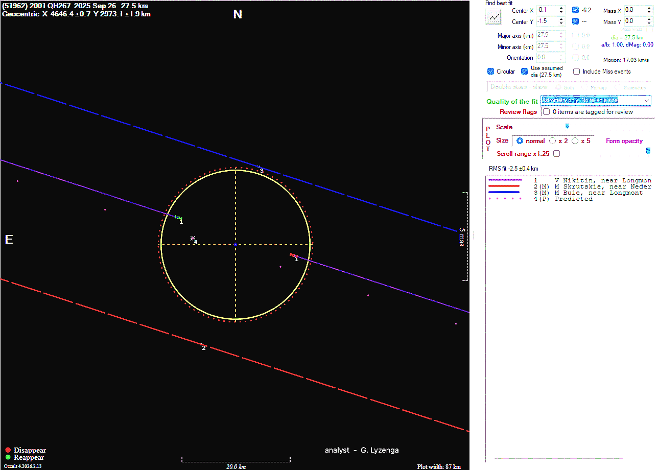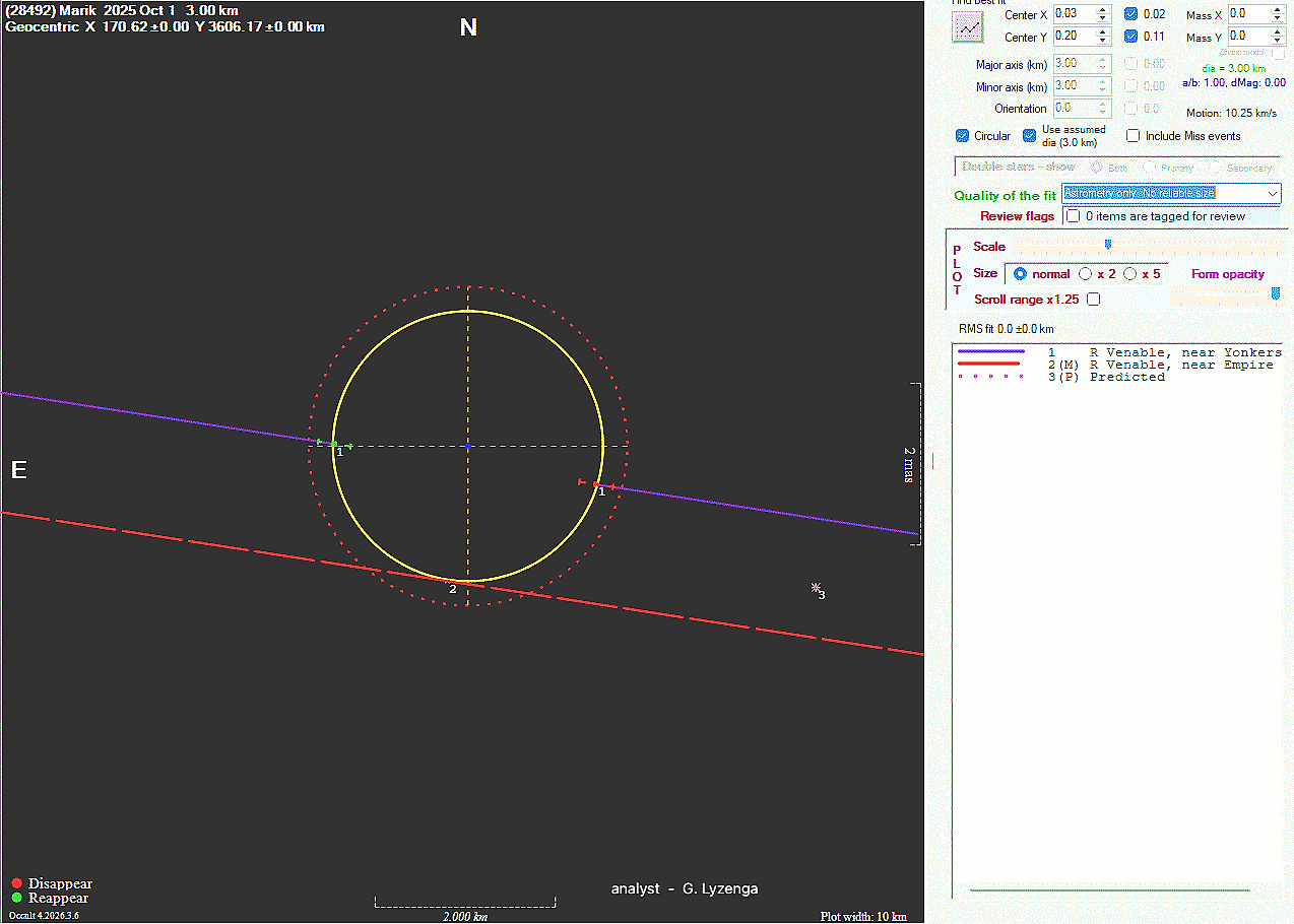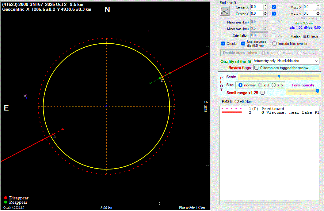 The true size/shape of an asteroid in 3-dimensions cannot be determined from a single occultation.