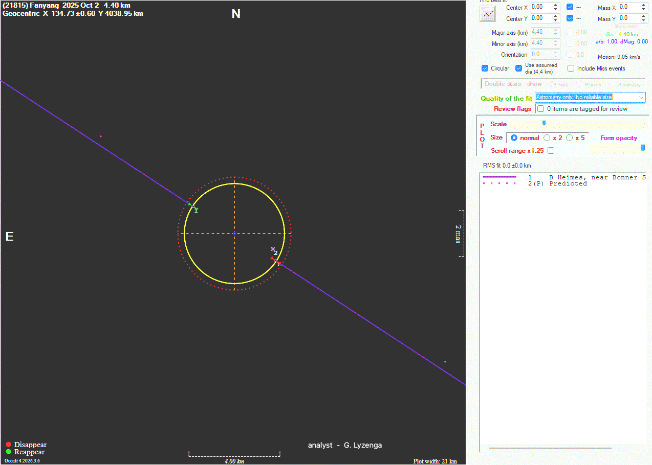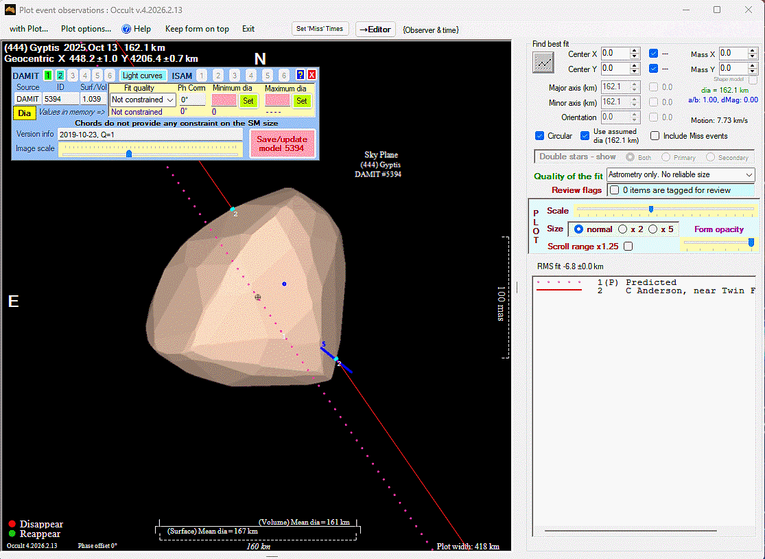 Asteroid profiles only show the line of sight view at the time of the occultation.